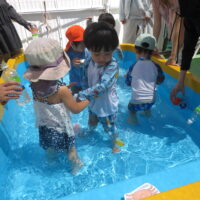 7月30日(水)、第4回ひまわりクラブが開かれました。今回は水遊びの活動です。保護者や先生、お友達と一緒に水遊びを楽しみました。今日は17組のお友達が参加され、プールの中は、にぎやかな水遊びになりました。また、皆さんが育 …