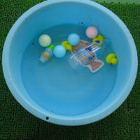 8月6日(水)、第5回ひまわりクラブが開かれました。今回も水遊びの活動です。夏空のもと、保護者や先生、お友達と一緒に水遊びを楽しみました。小さなたらいには、おもちゃがいっぱい。プールの中には、シャワーやバケツなどの道具も …