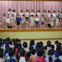 「楽しく歌おう」集会が開かれました。昨年度より一ヶ月早い開催になりましたが、子どもたちは合奏や合唱曲を楽しく発表できました。年長さんは、タンバリン、ウッドブロック、鈴、カスタネット、トライアングルなど5つの楽器を使って「 …