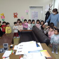 4月15日(火)、今年度初めての合同リズム運動がありました。「お花が笑った」や「園歌」を歌った後、「おもちゃのチャチャチャ」を楽しく踊りました。ちゅうりっぷ組さんは、お部屋の外で、合同リズ運動を見学していました。年長さん …
