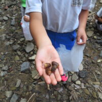 10月17日(金)、年長さんの園外保育「秋の自然を探しに行こう」がありました。慈眼寺公園の木々や草花に触れ、木の実や葉を集めたり、コスモス畑を散策したりして秋の自然に親しみました。