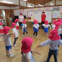 10月23日(木)の合同リズム運動は、小雨のため室内での運動になりました。子どもたちは教室の中で元気よく「もぐらっちょ」のユニークな踊りを楽しんでいました。