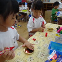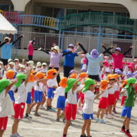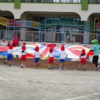年長さんのバルーンの練習が始まりました。みんなの気持ちを一つにして、バルーンを操ります。熱中症対策として、クラスごとに練習し、お互いの演技を見合う時間として設定してありました。いろいろな指導の工夫をしながら練習していきま …