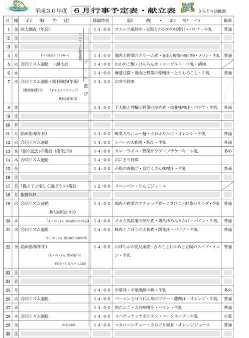 6月の行事予定表・献立表