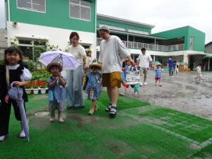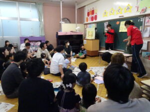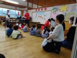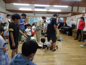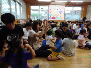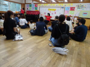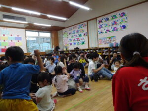 6月15日(日)親と子と楽しく遊ぼう集会が開かれました。年長さんでは親子でお互いの似顔絵を描いたりゲームをしたりして遊びました。年中さんでは魚釣りゲーム、年少さんでは「UFOキャッチャー」を作り、年少々のちゅうりっぷ組さんでは、親子での触れ合い遊びなどをして楽しみました。その後、教育講演会や避難時の子ども引き渡し訓練も行われました。