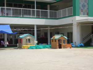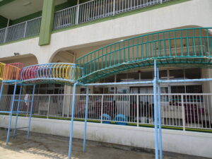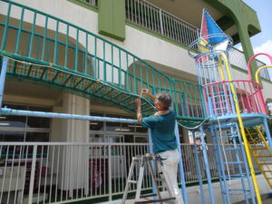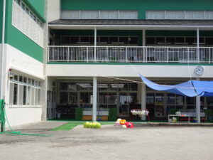 梅雨が明け本格的な夏が到来しました。今年の夏、子どもたちが、熱中症にならないように十分気をつけて対応していきます。その対策の一つとして、ミストシャワーの配置が完了しました。1号園舎の前に2カ所、プールの横に1カ所、2号園舎の前に1カ所、アスレチック遊具の前に1カ所の合計5カ所配置しました。ミストシャワーは、活動Ⅰの時間や活動Ⅲの時間帯に活用していきます。