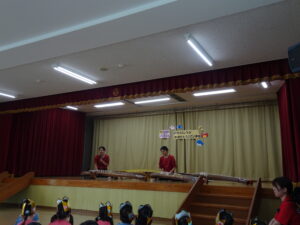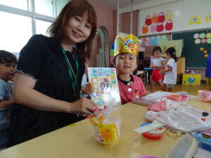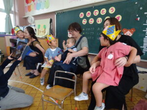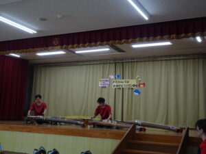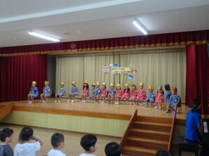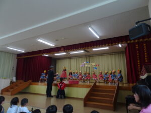 18名の7月の誕生会が開かれました。誕生日のみなさんは、舞台の上に立ち、自分名前、クラス、年齢、将来の仕事、今頑張っていること、1学期の思い出など発表しました。最後はお琴の演奏のプレゼントもありました。その後、学級では保護者の方と一緒の給食もありました。