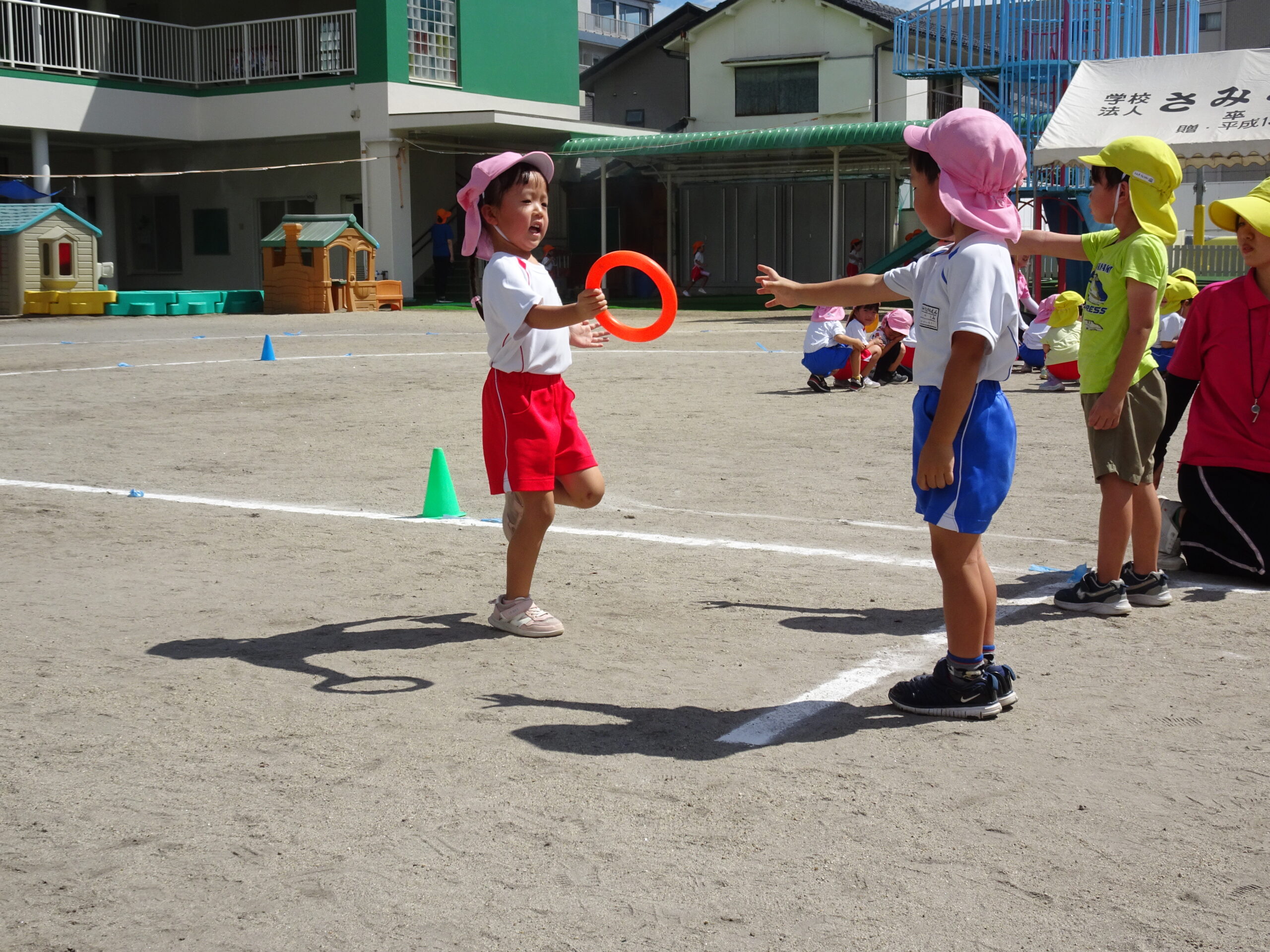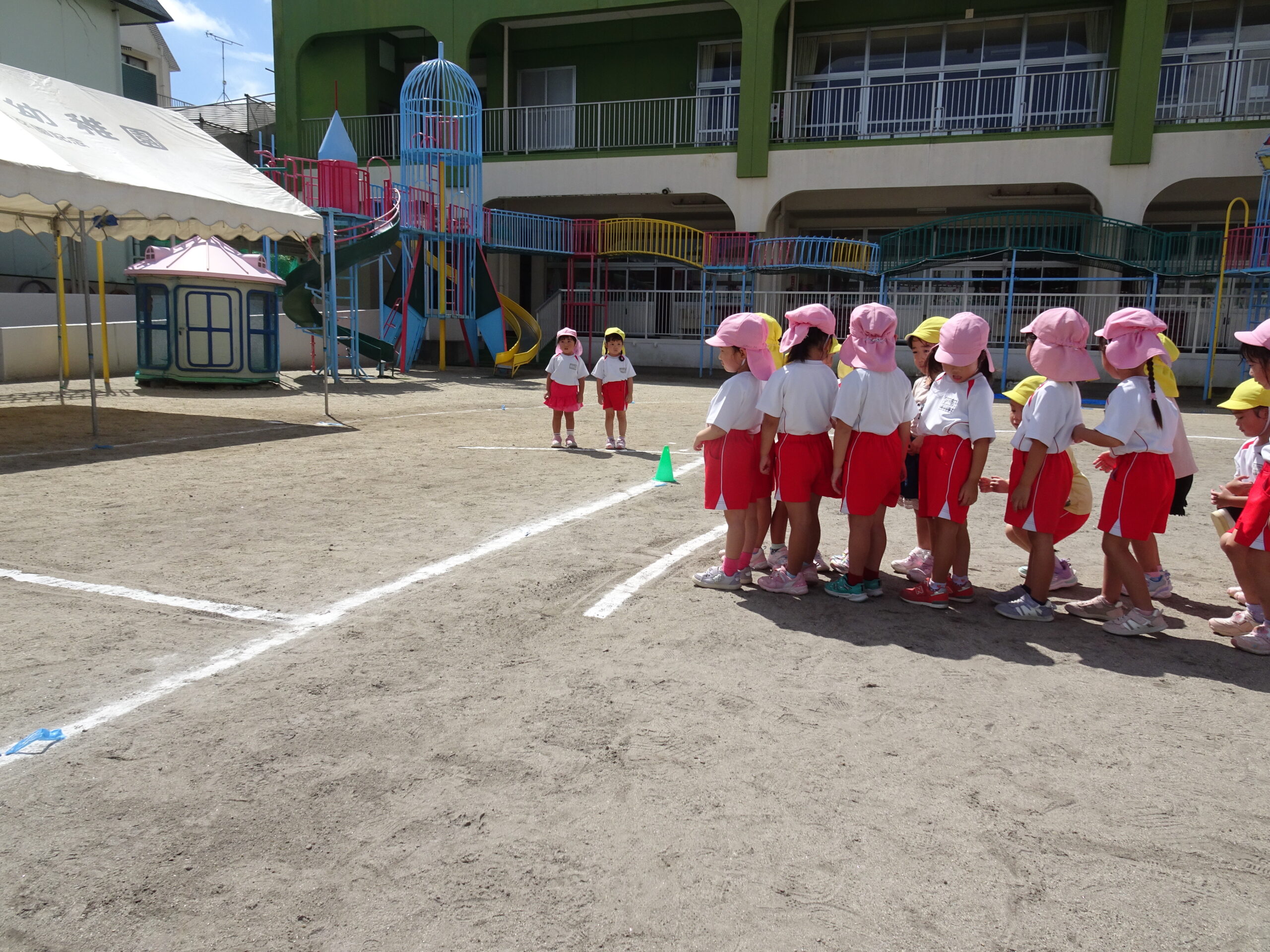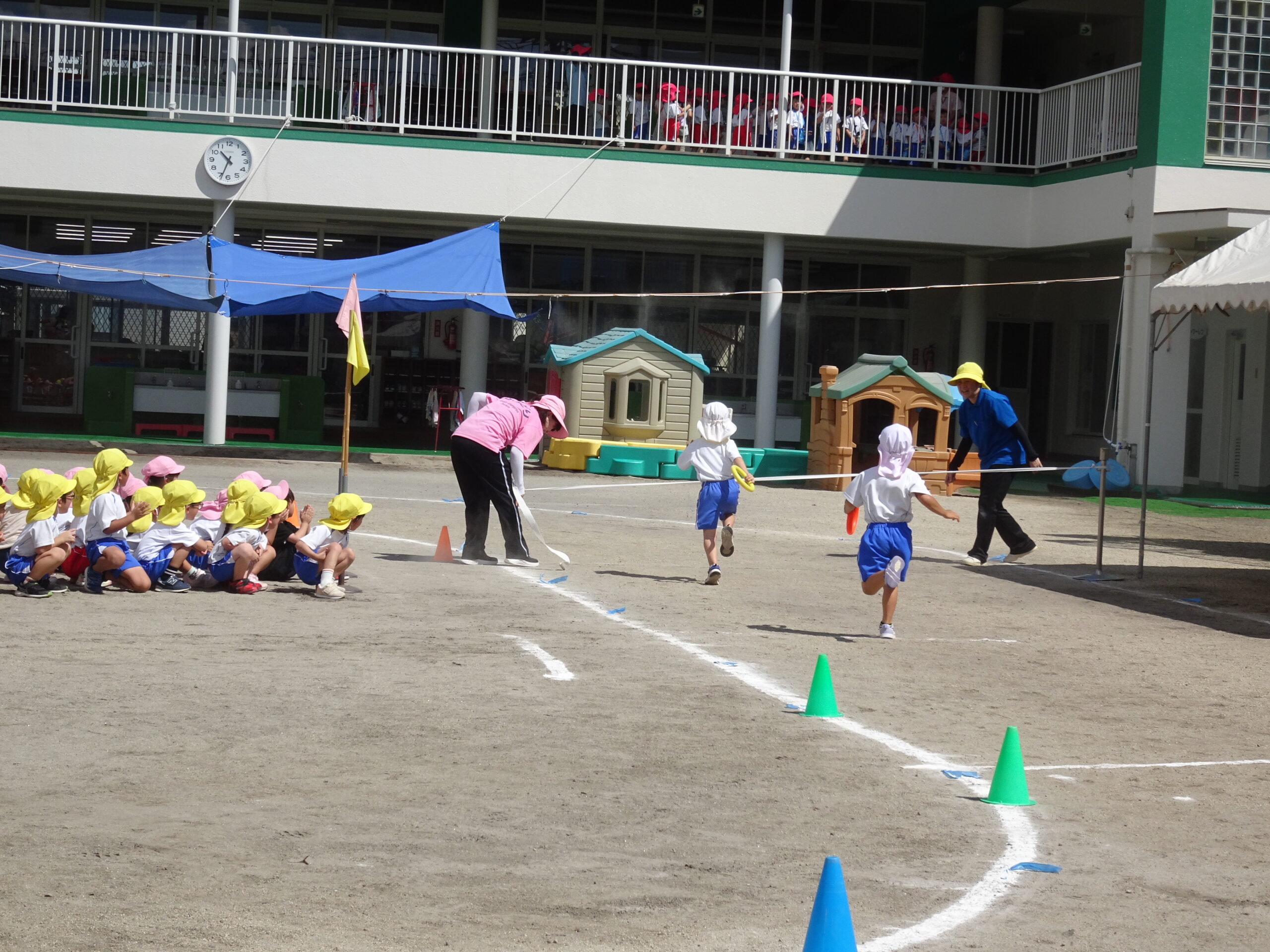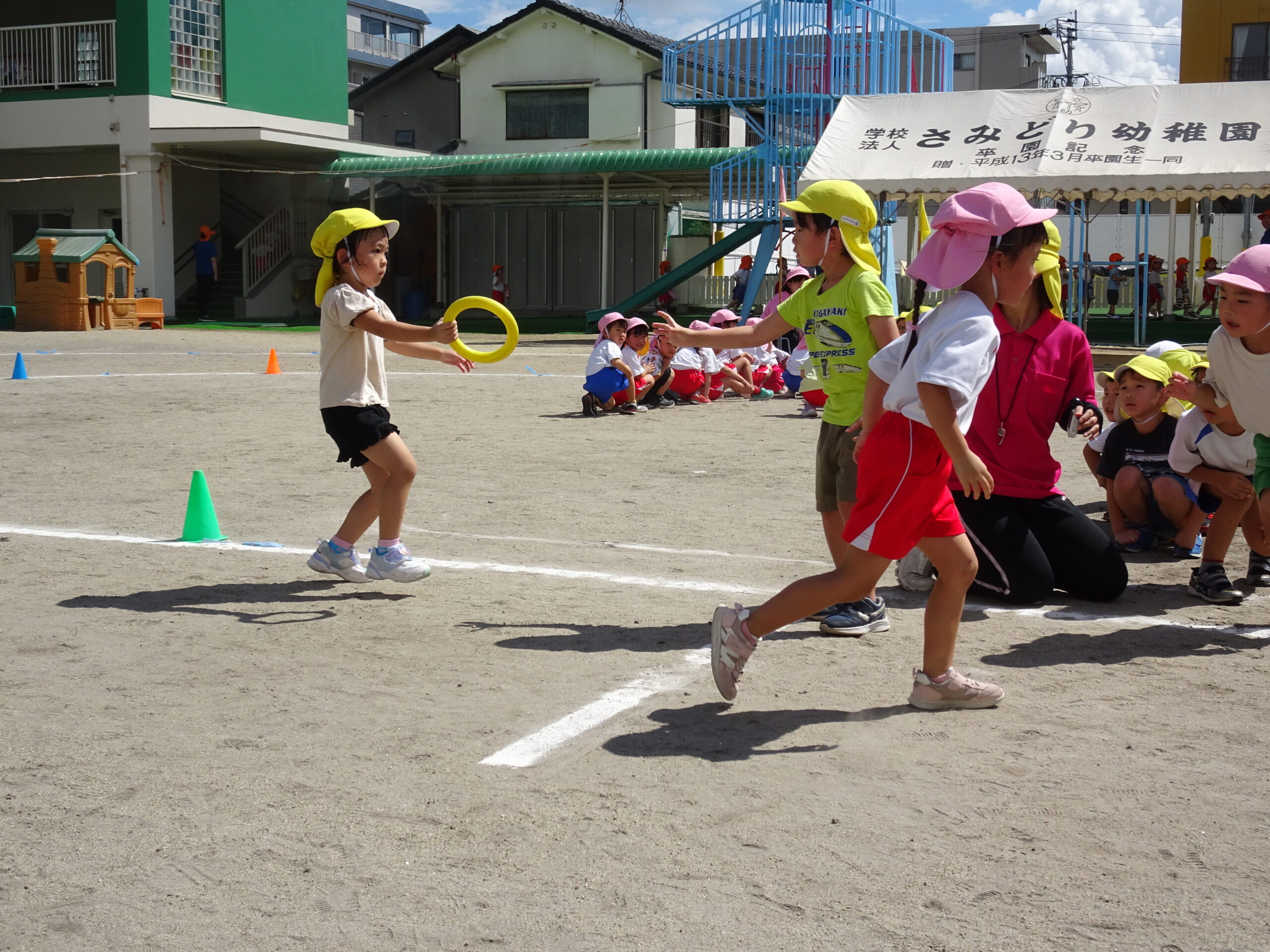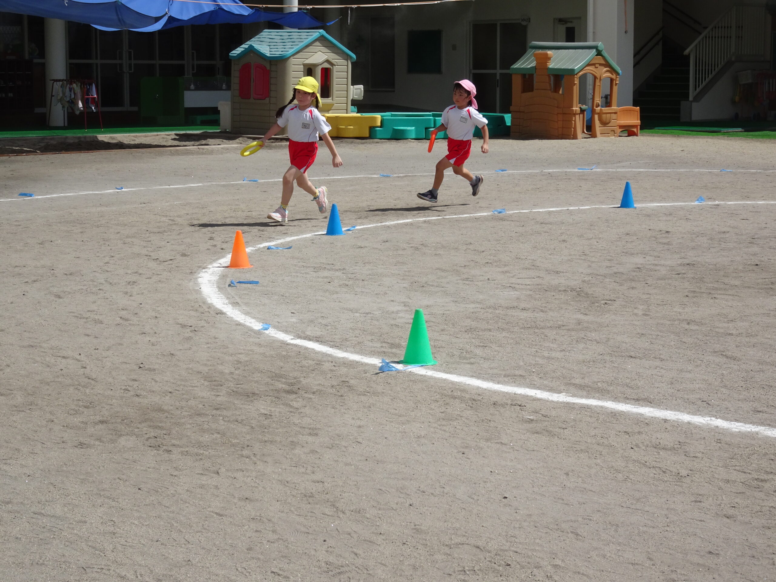 9月9日(火)、年中さんが初めてのリレーの練習をしました。バトンを渡すとき、ドキドキしながら受け渡ししている姿も見られました。