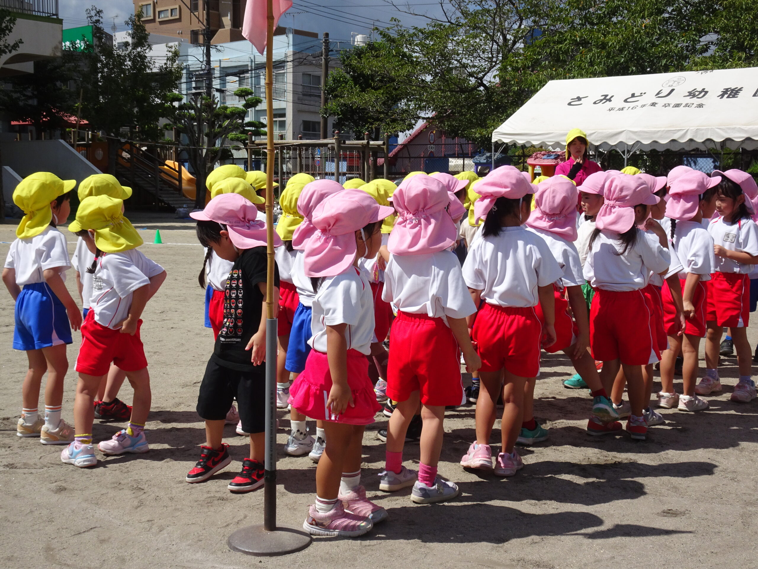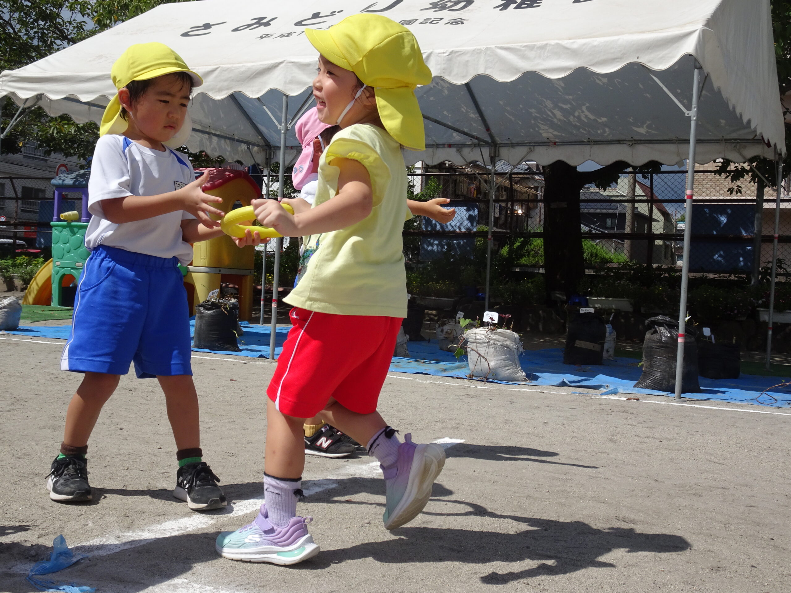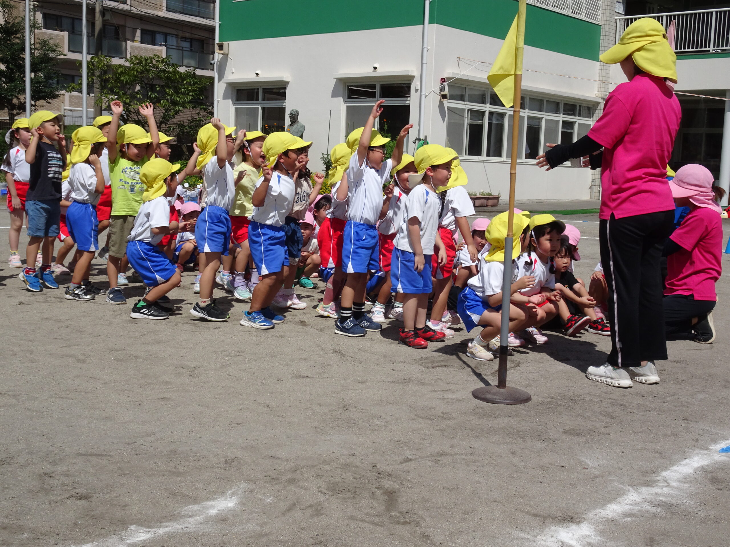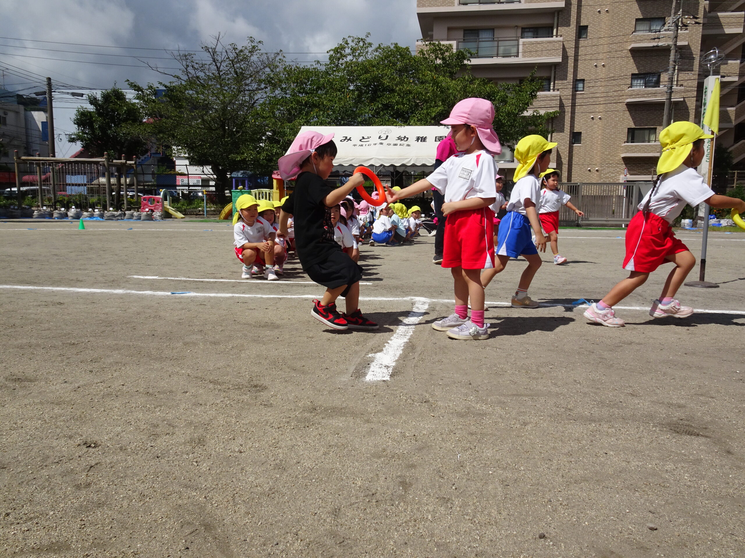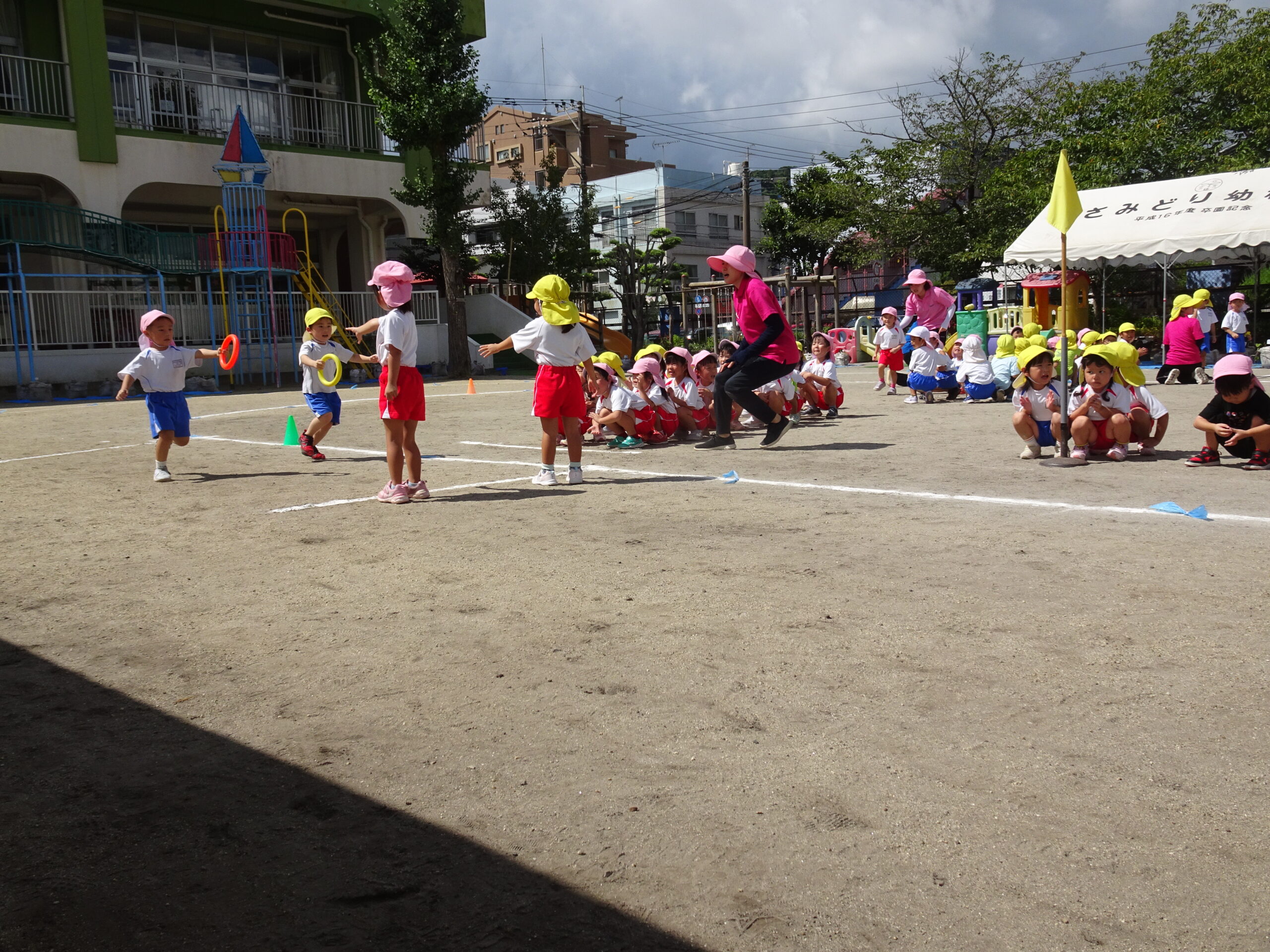 9月9日(火)、年中さんが初めてのリレーの練習をしました。バトンを渡すとき、ドキドキしながら受け渡ししている姿も見られました。