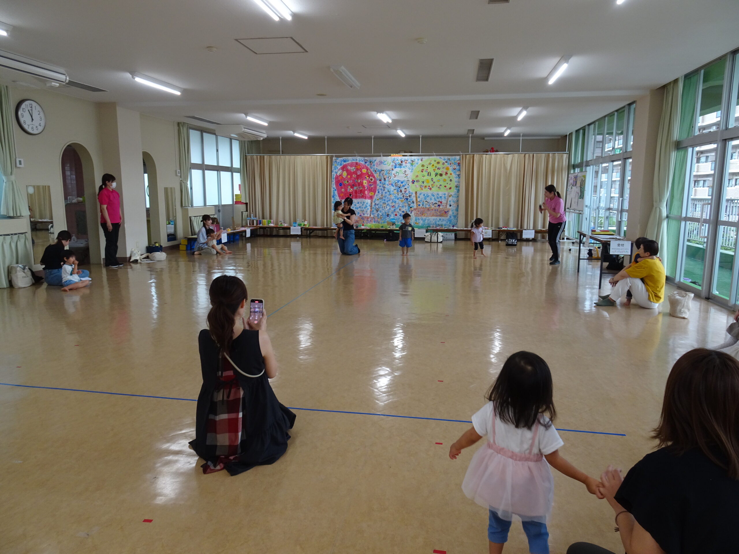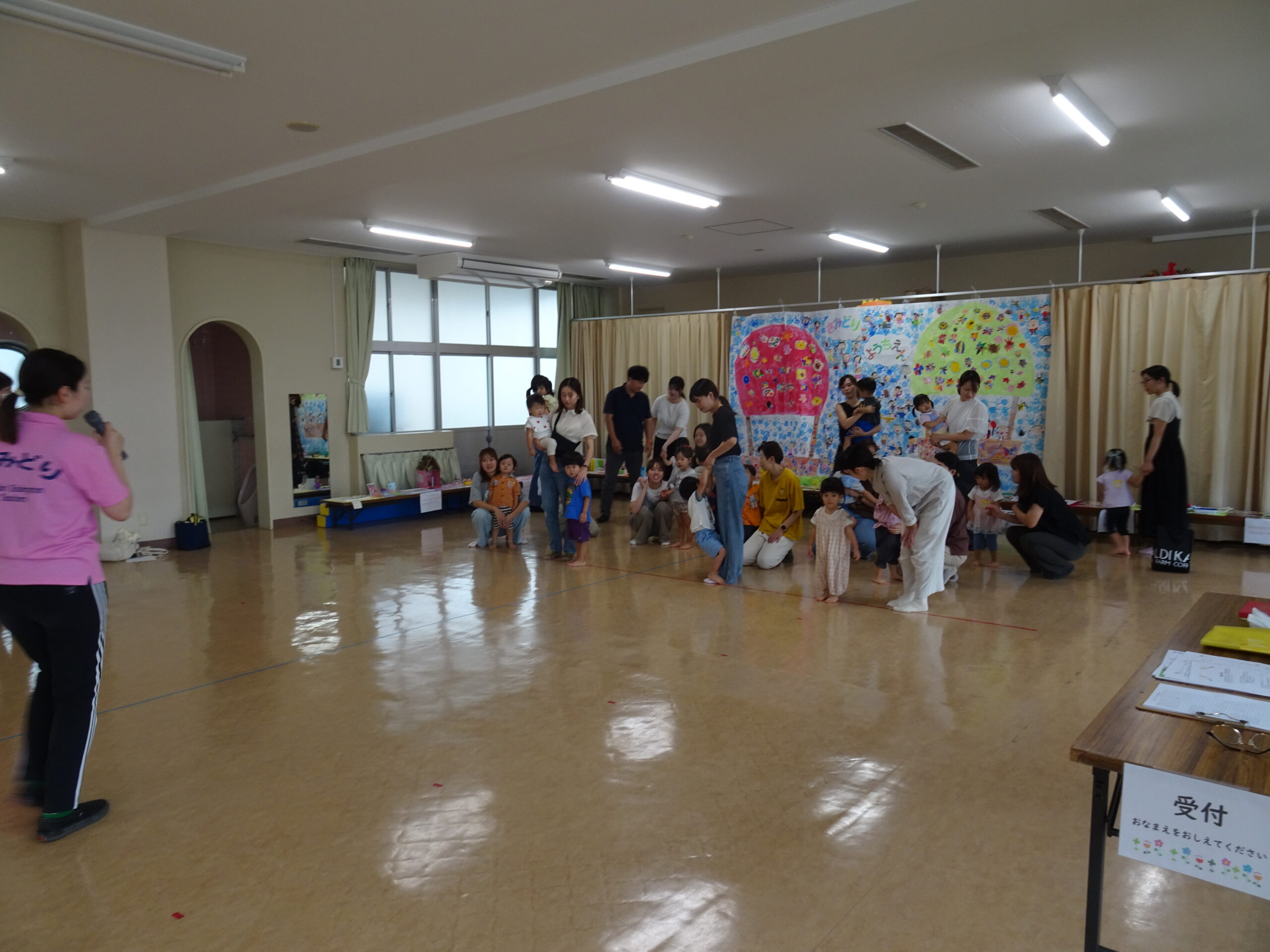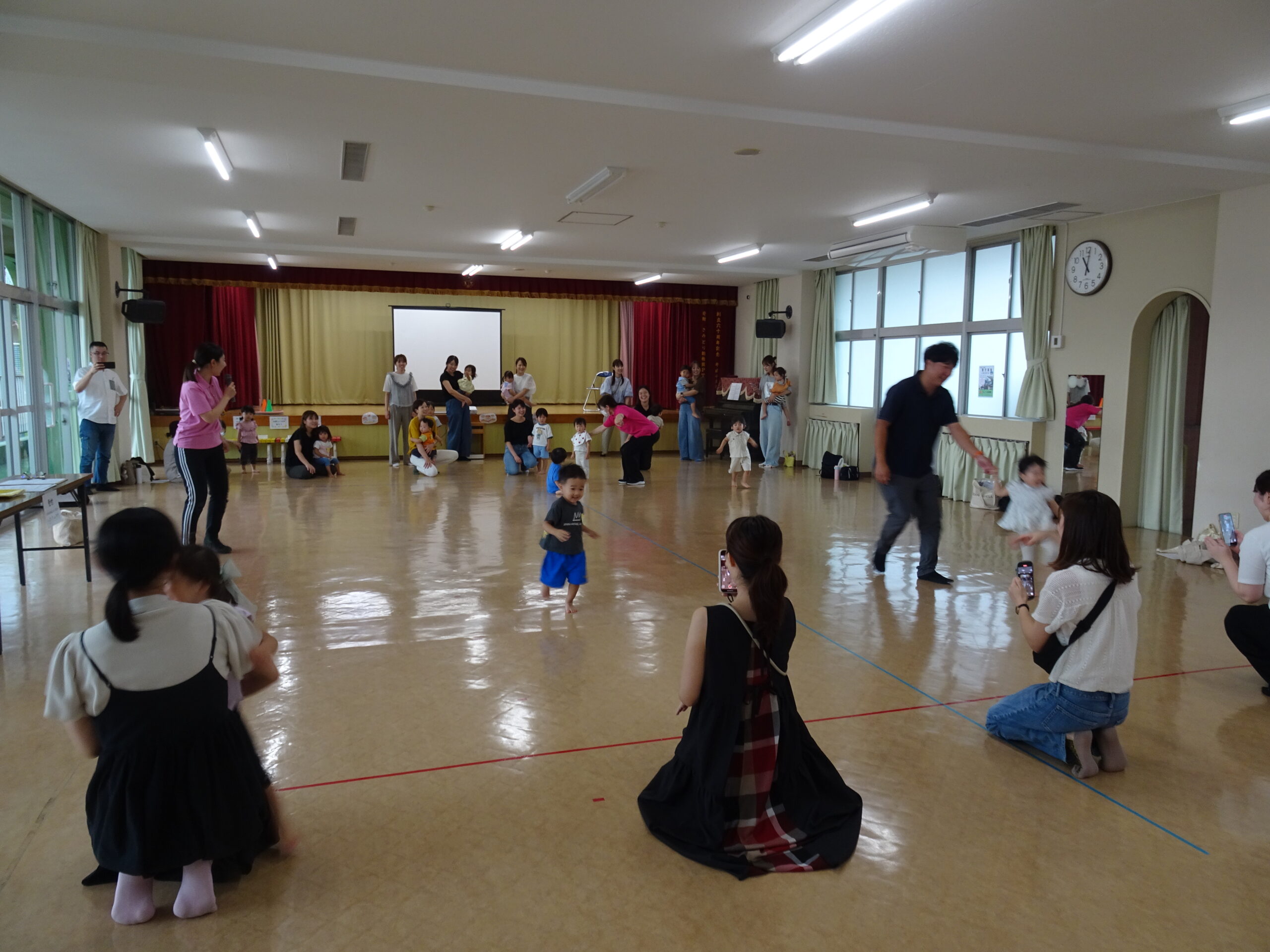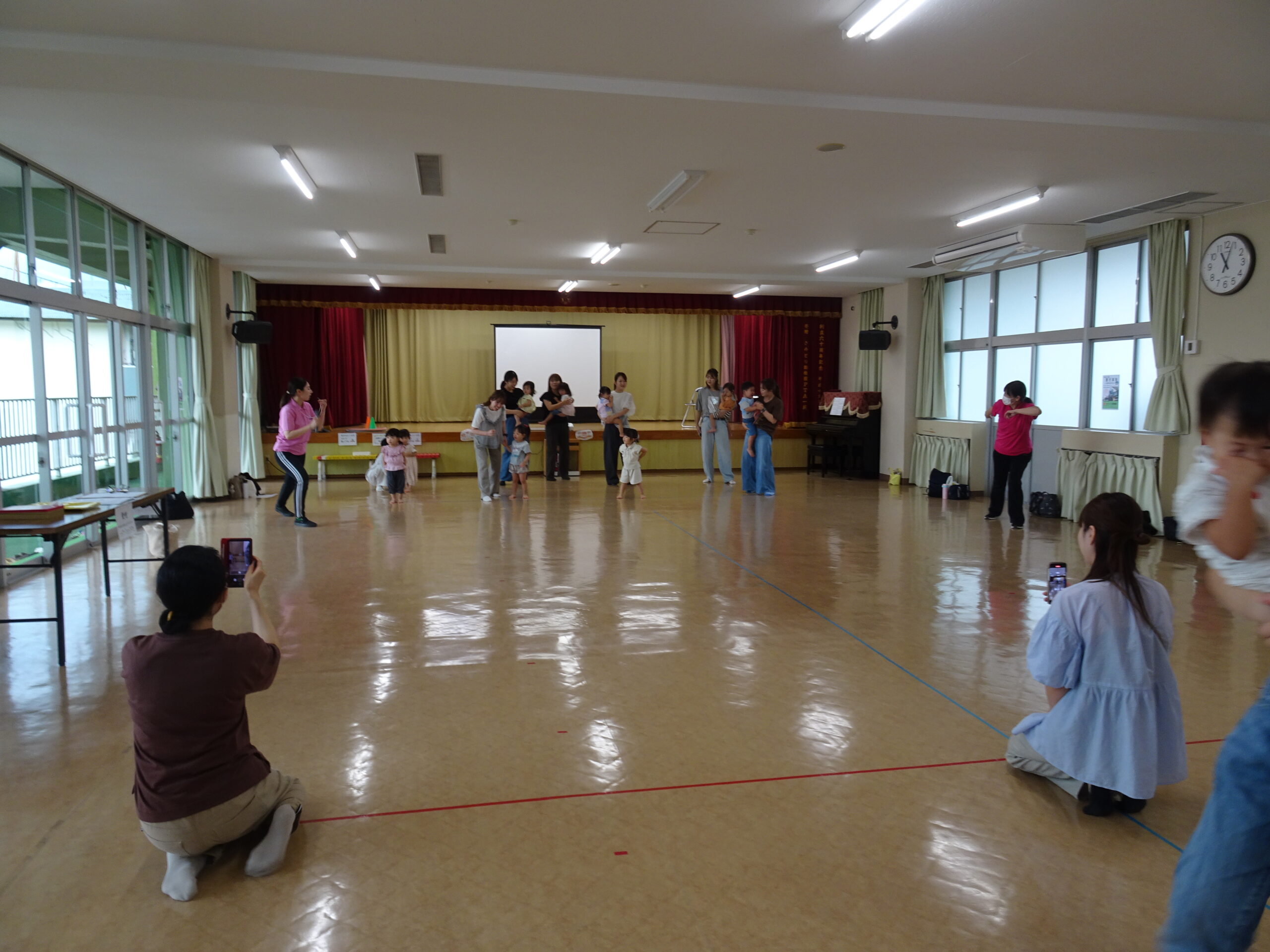 9月10日(水)第6回ひまわりクブが開催されました。「体を動かして遊ぼ う」の活動で、運動会ごっこの遊びを楽しみました。また、「あつかったらぬげばいい」の絵本の読みきかせもありました。最後は、4月24日に植えたいも掘りもありました。開始前は、強い雨が降りましたが、いも掘りの時は雨も上がり、自分の植えたいもを袋に入れて持ち帰りました。