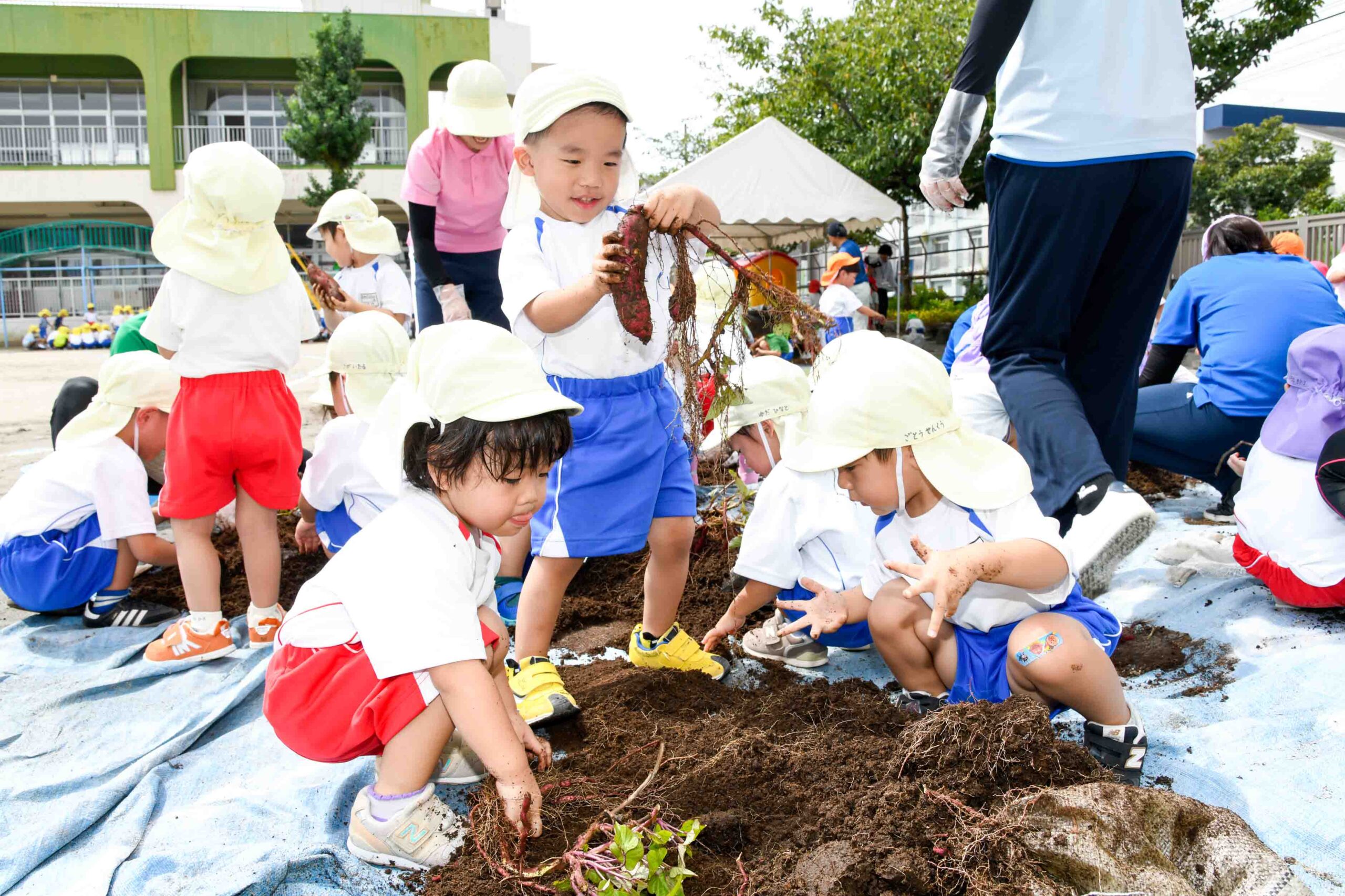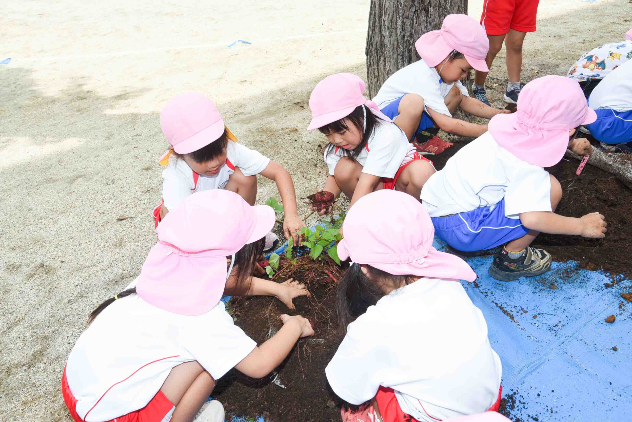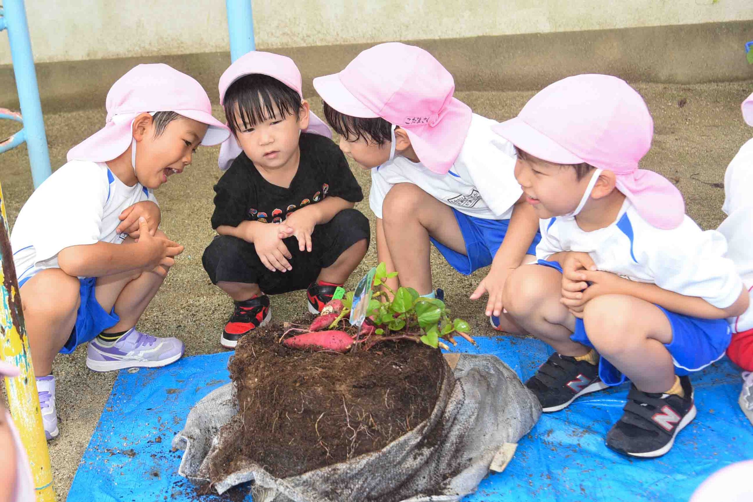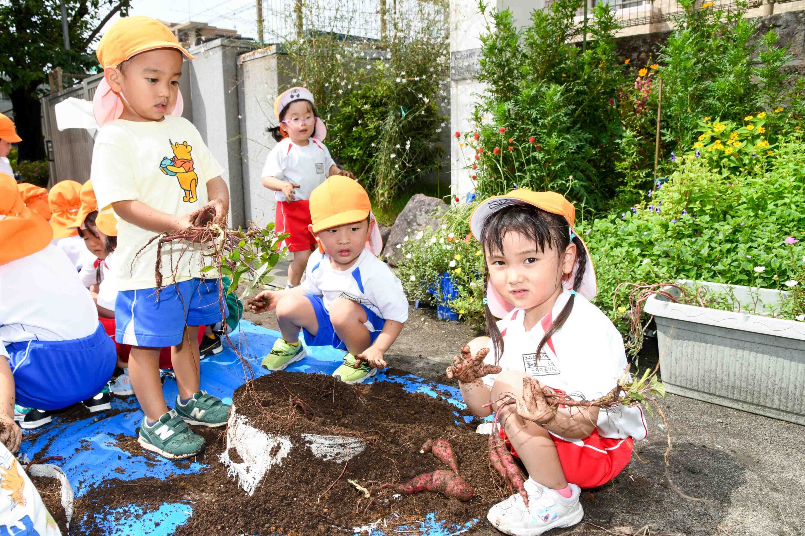 9月11日(木)、雨のため1日遅れで、園内でいもほりがありました。4月22日にいも植え付けしてから、4ヶ月半経ちますが、どんないもができているか楽しみに、いもほりしました。収穫したいもは、後日、家に持ち帰ります。楽しみにしていてください。