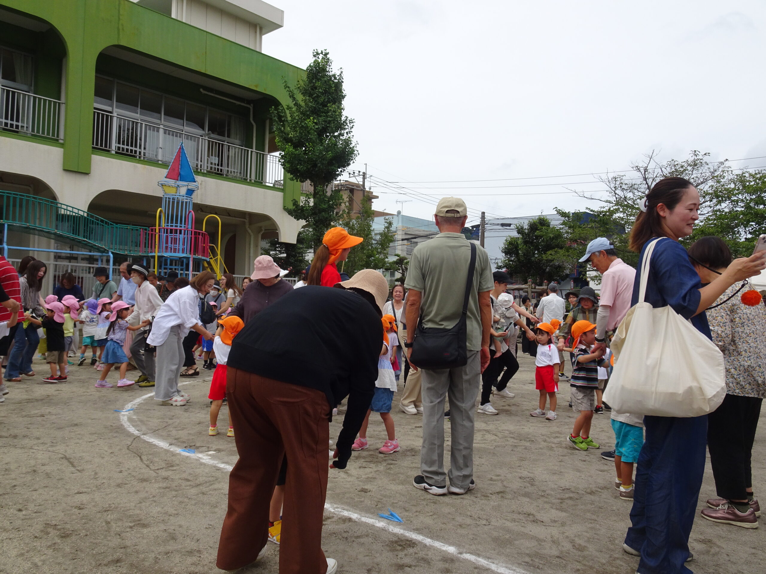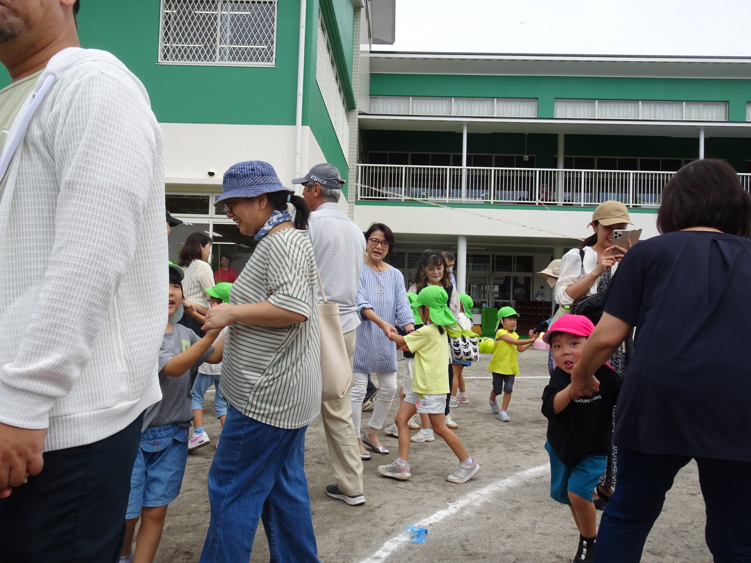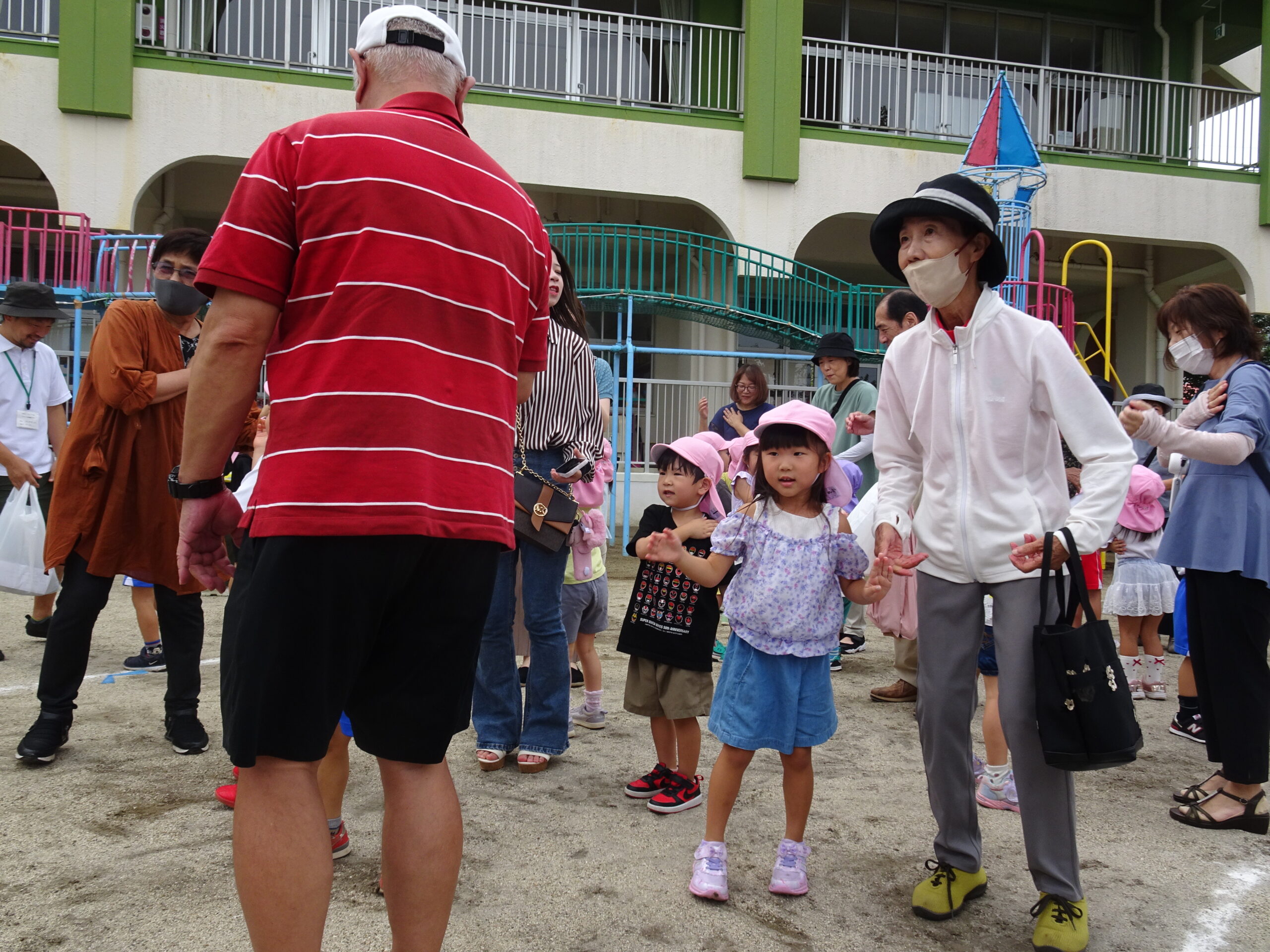 敬老の日にちなみ、祖父母との触れ合い会が開かれました。たくさんの祖父母の方々や保護者の方々においでくださり、子どもとの触れ合い遊びを楽しんでいただきました。外での合同リズム運動、各教室での伝承ゲームやゲーム遊びなど楽しく活動していただきました。最後は、子どもたちからおじい様、おばあ様方等にプレゼントもありました。