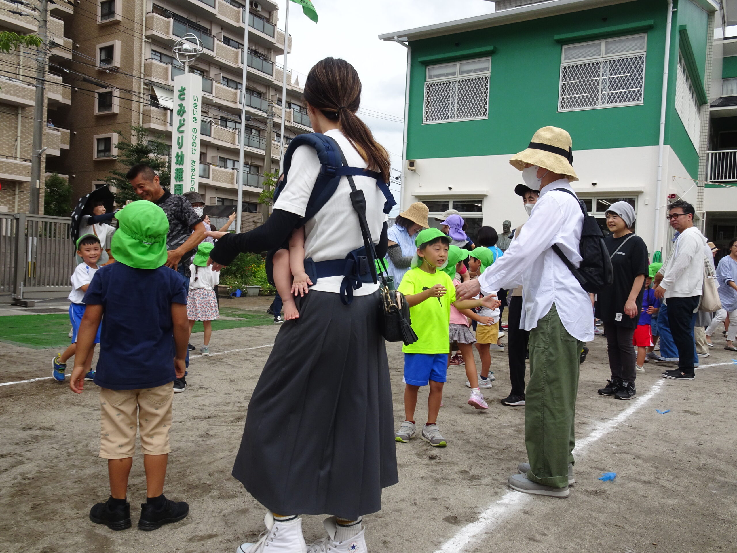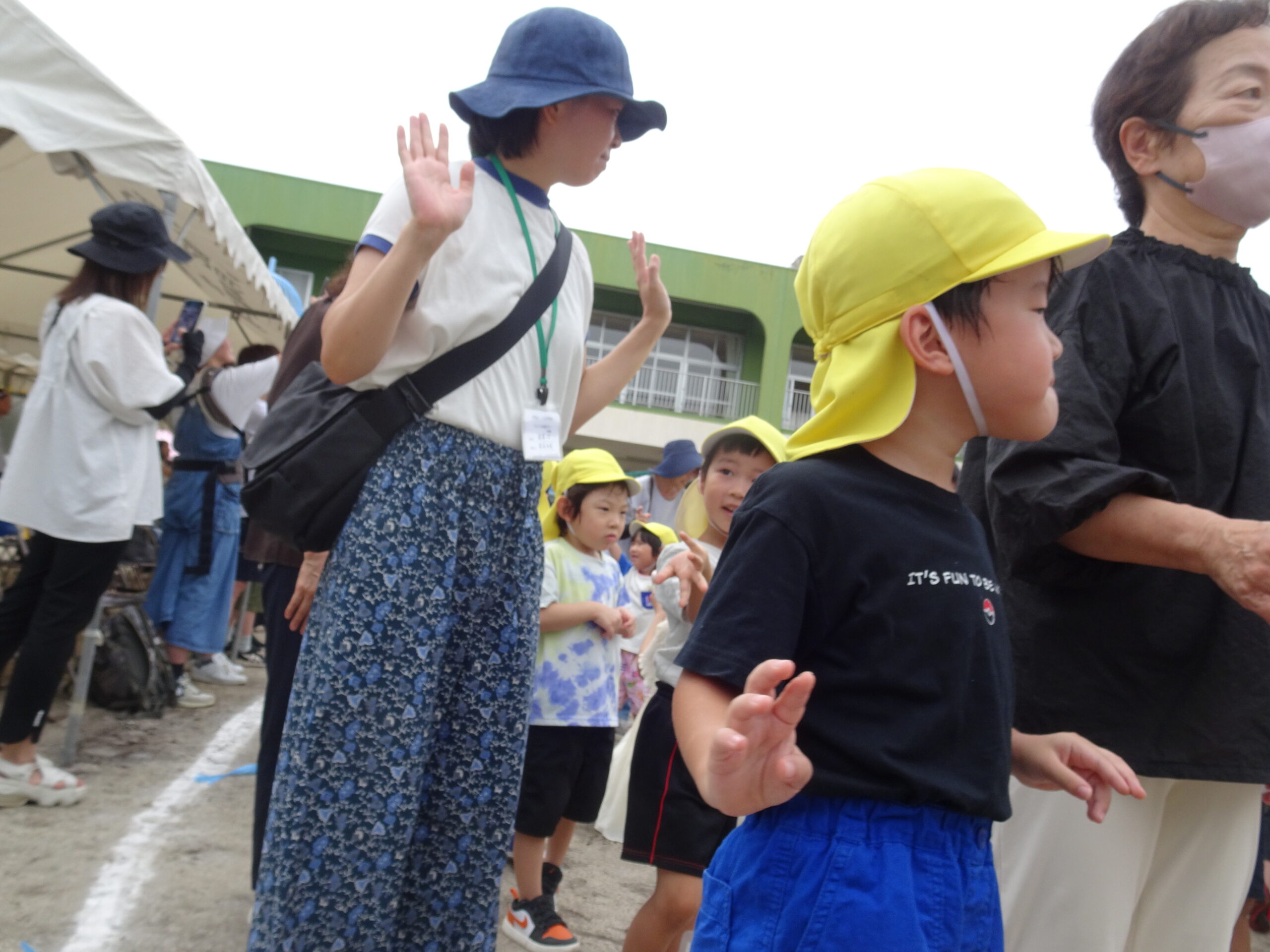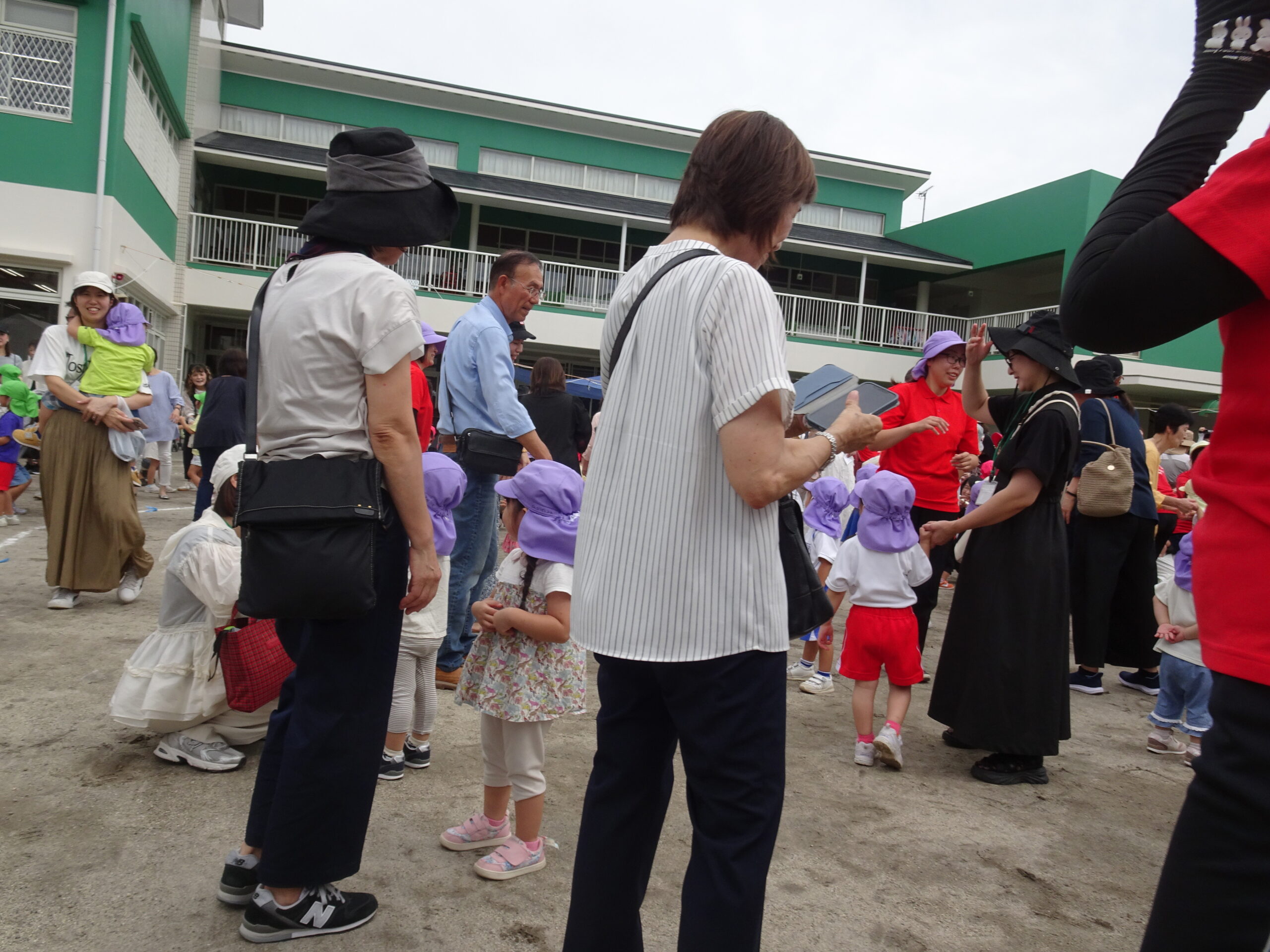 敬老の日にちなみ、祖父母との触れ合い会が開かれました。たくさんの祖父母の方々や保護者の方々においでくださり、子どもとの触れ合い遊びを楽しんでいただきました。外での合同リズム運動、各教室での伝承ゲームやゲーム遊びなど楽しく活動していただきました。最後は、子どもたちからおじい様、おばあ様方等にプレゼントもありました。