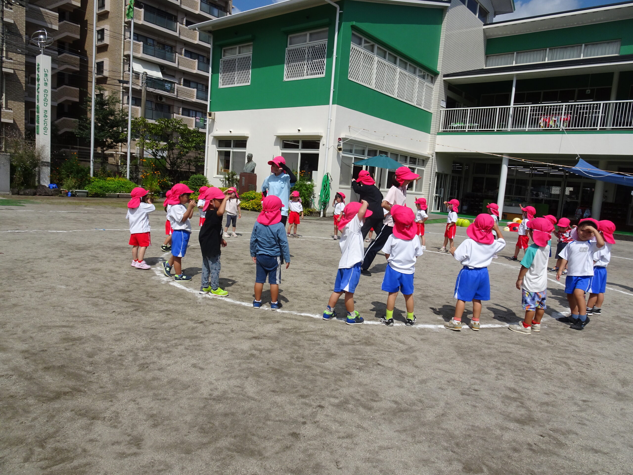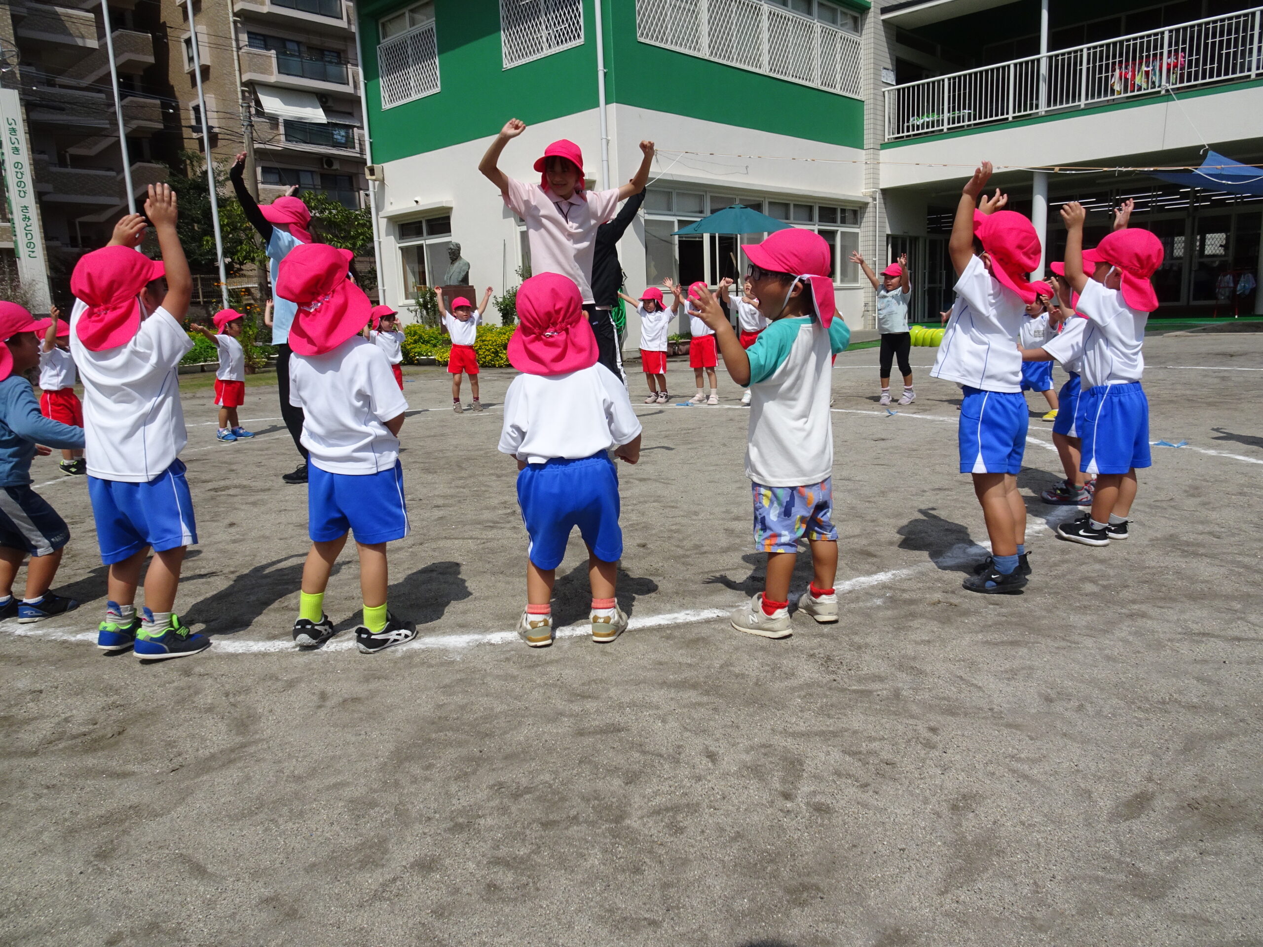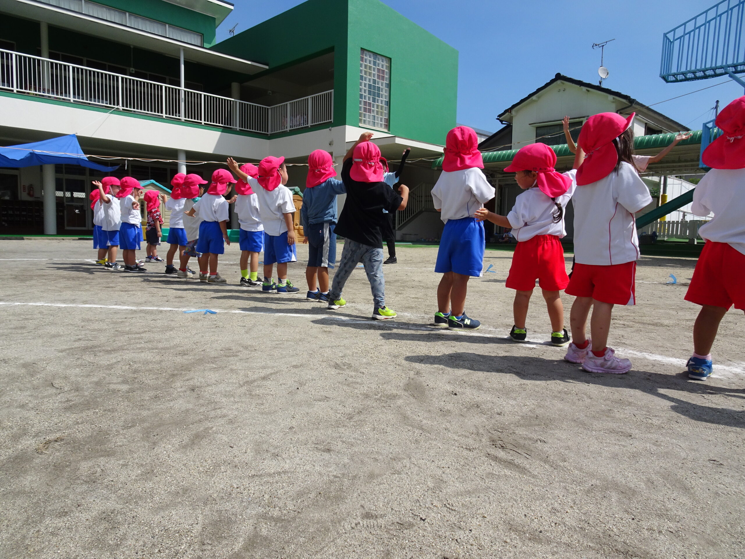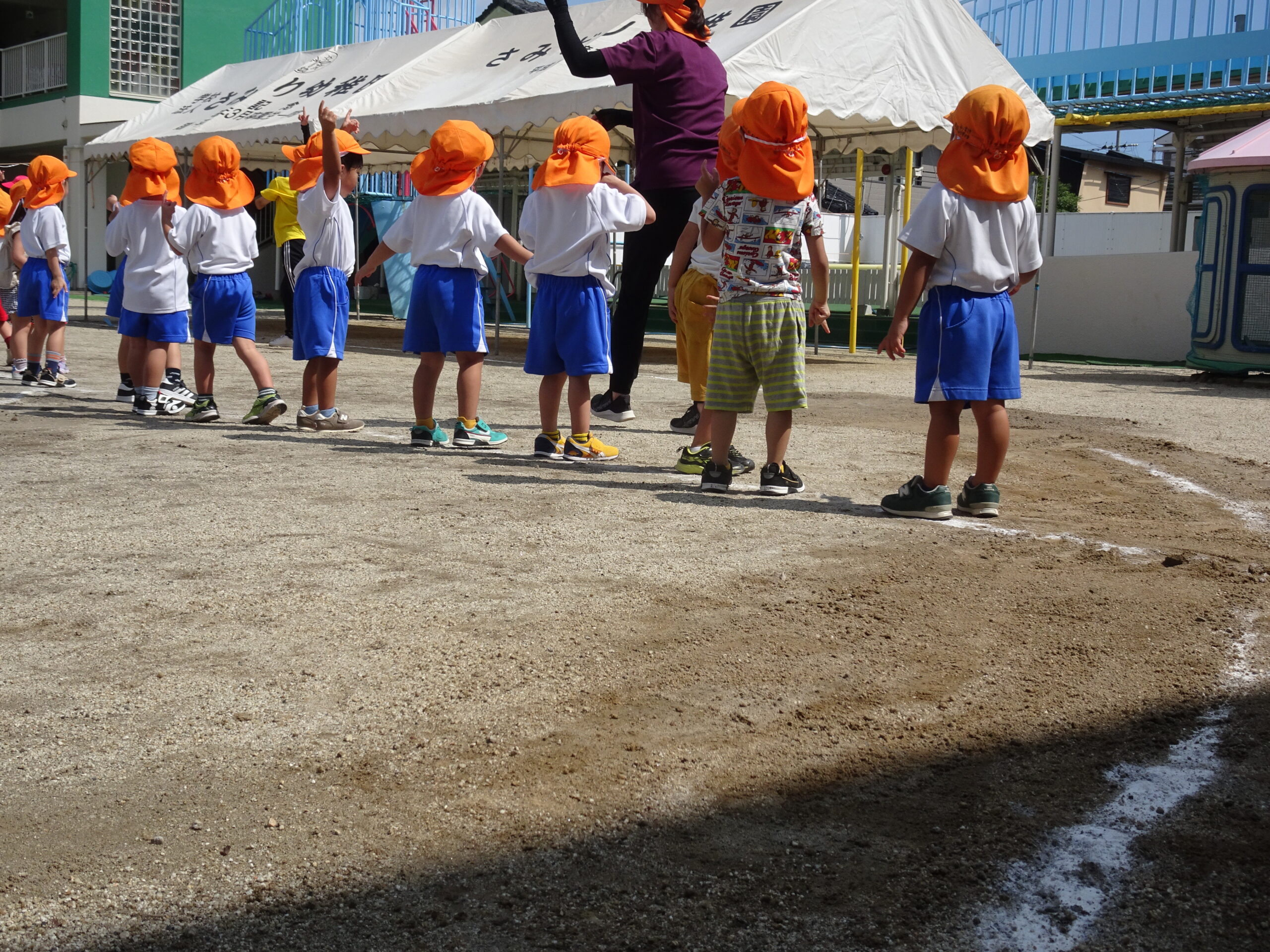 年少さんの遊戯の練習の様子です。暑い中、よく動いています。