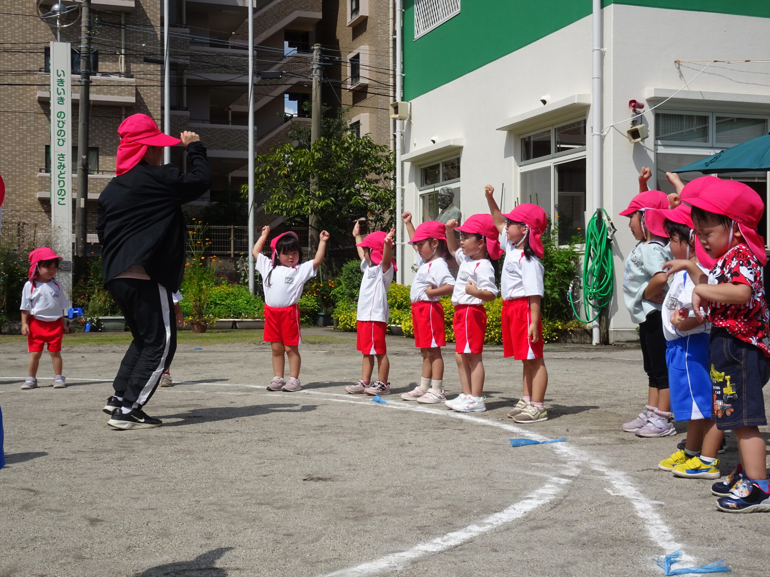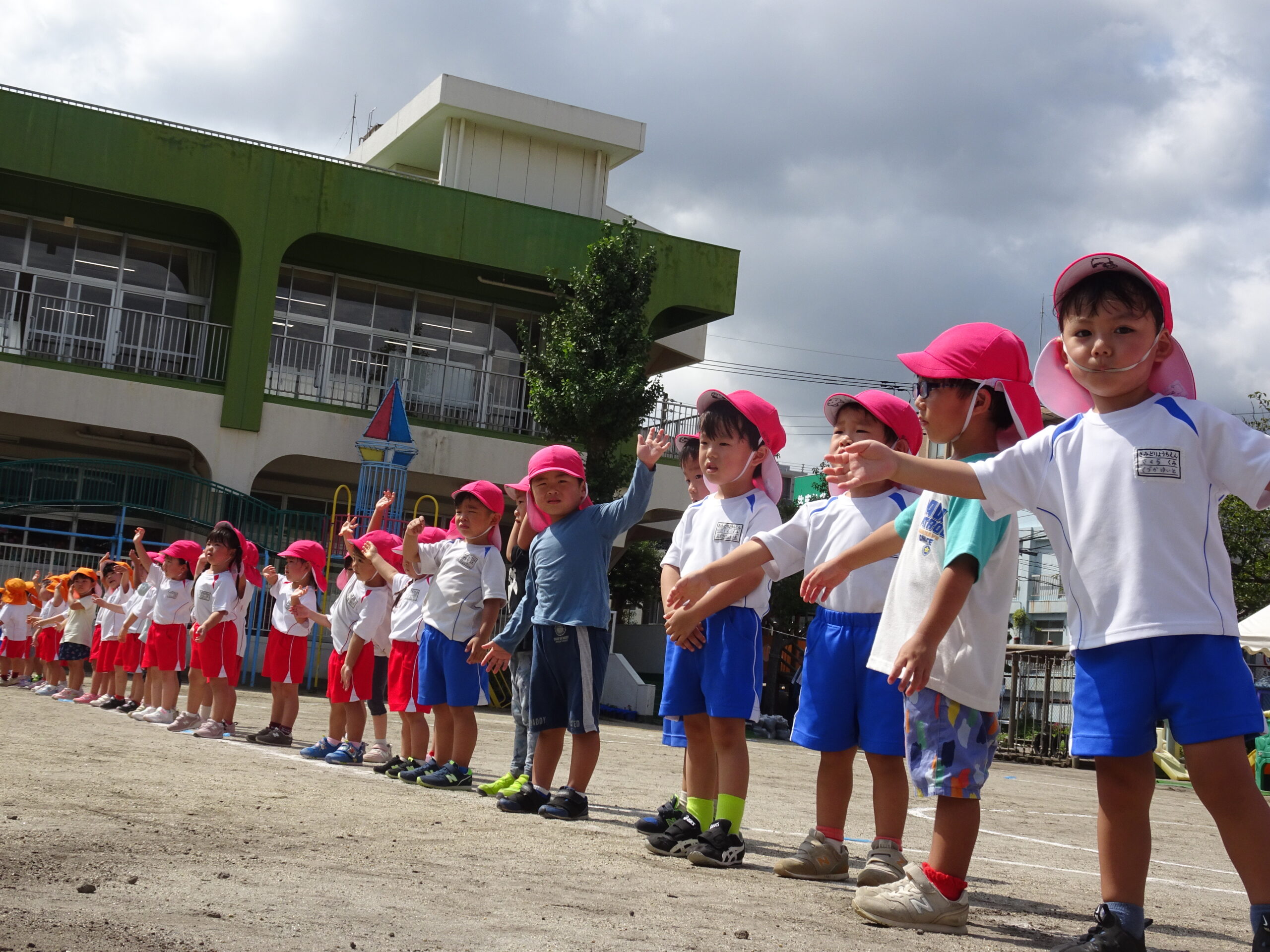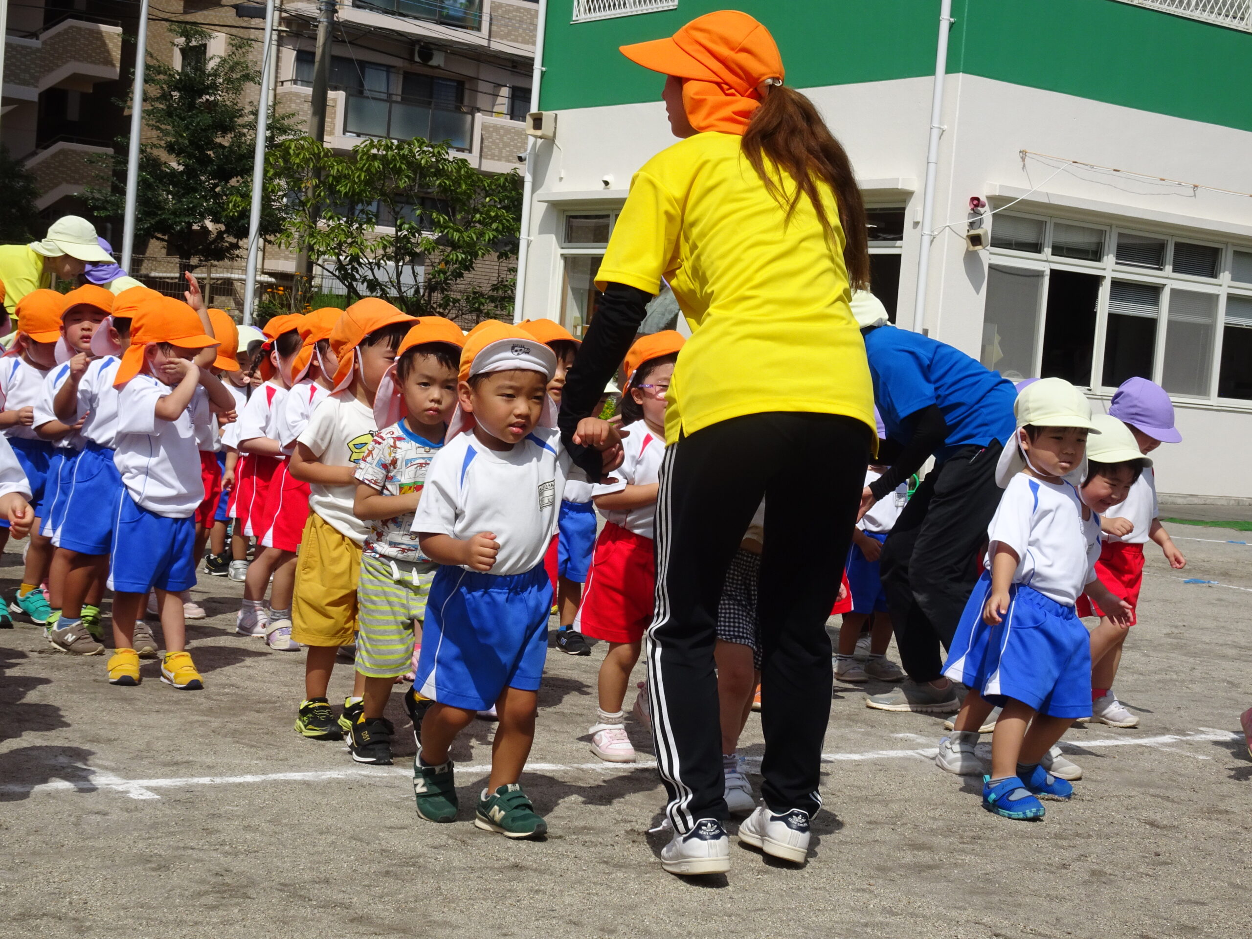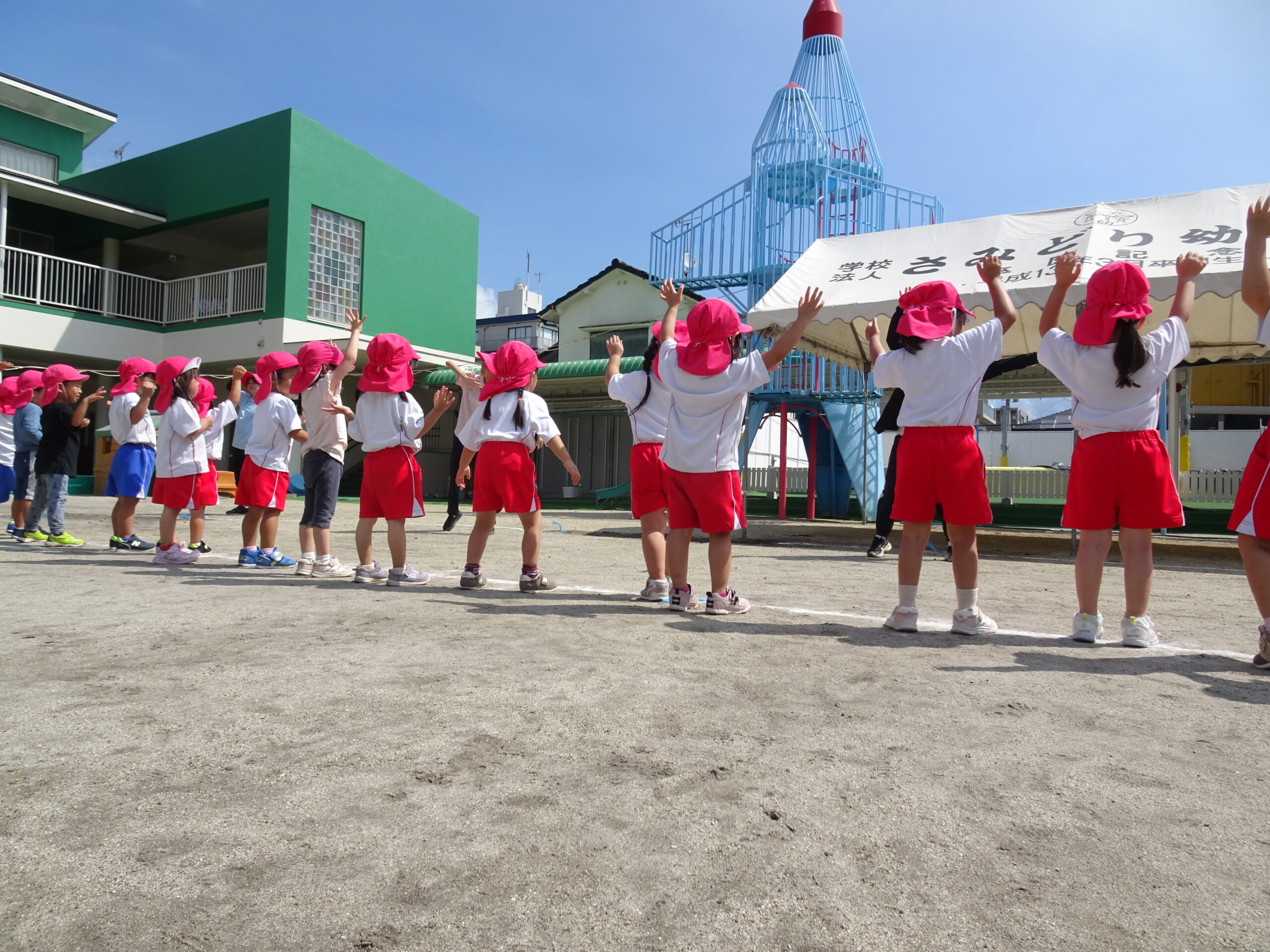 年少さんの遊戯の練習の様子です。暑い中、よく動いています。