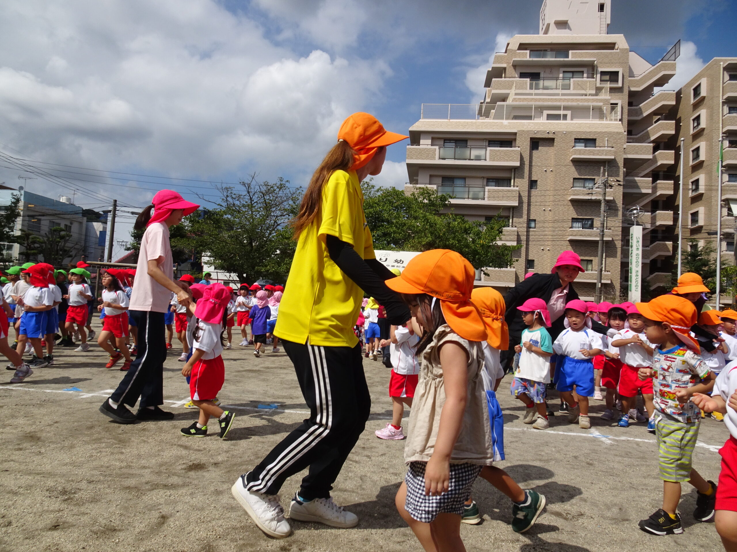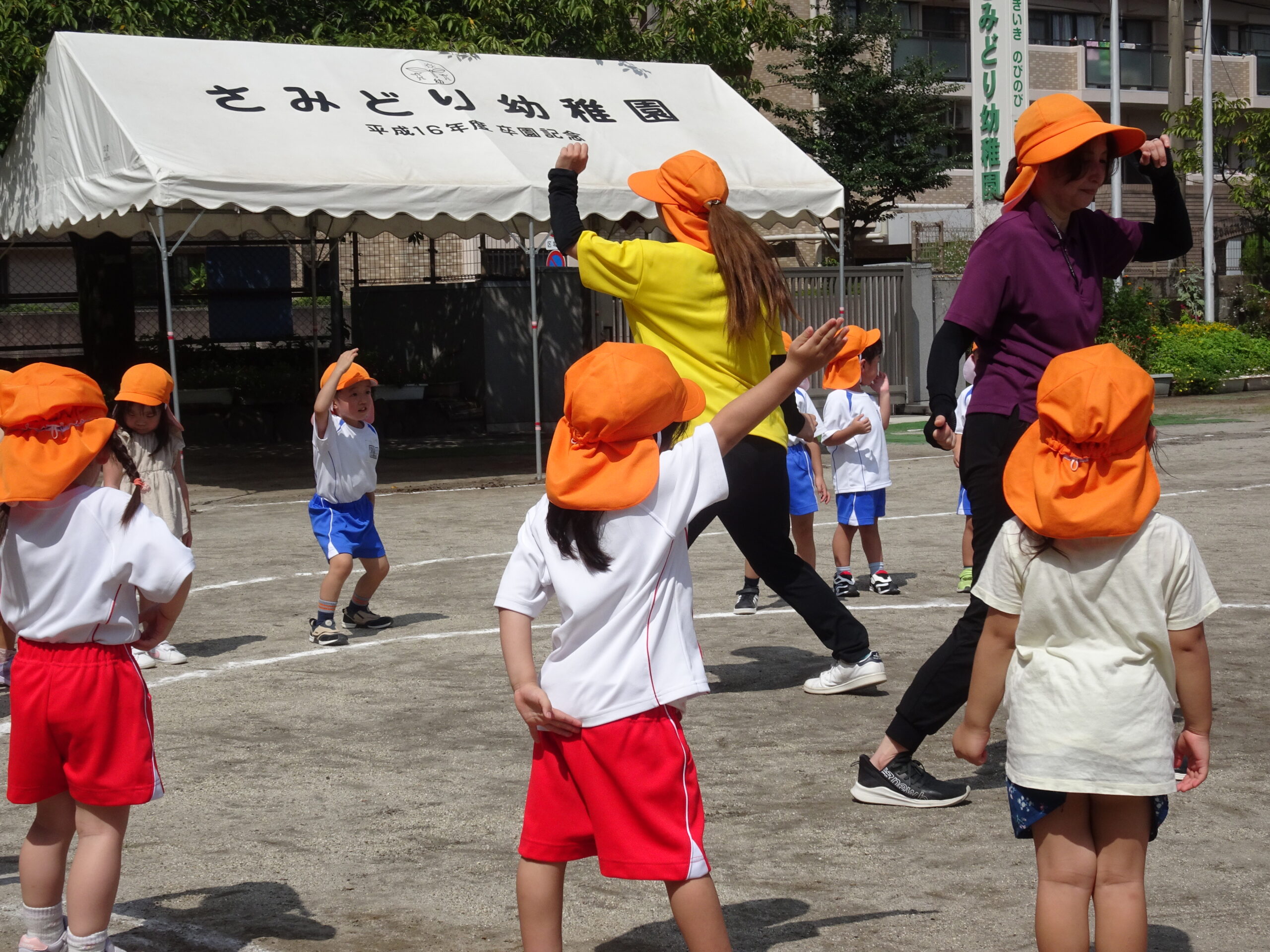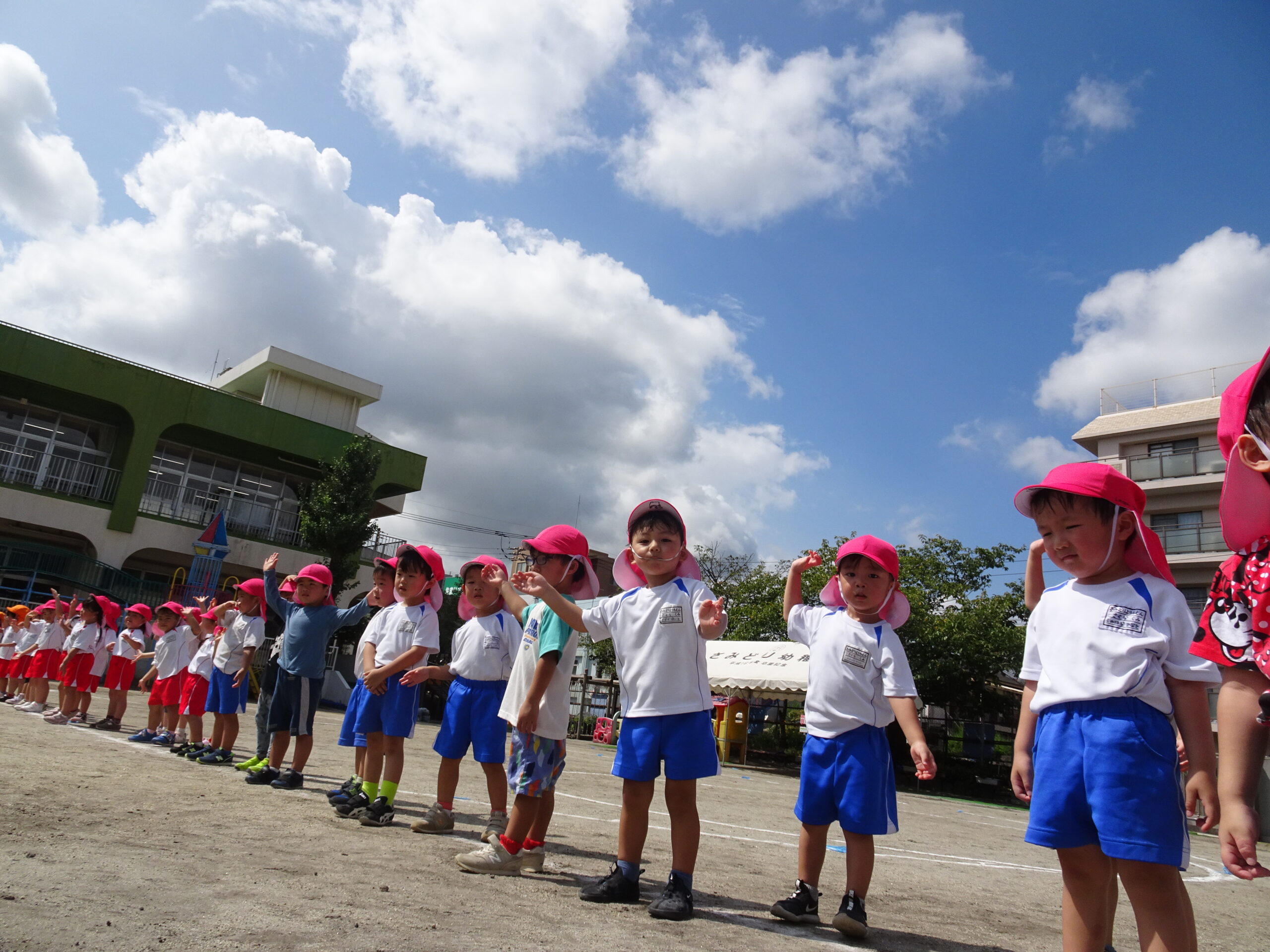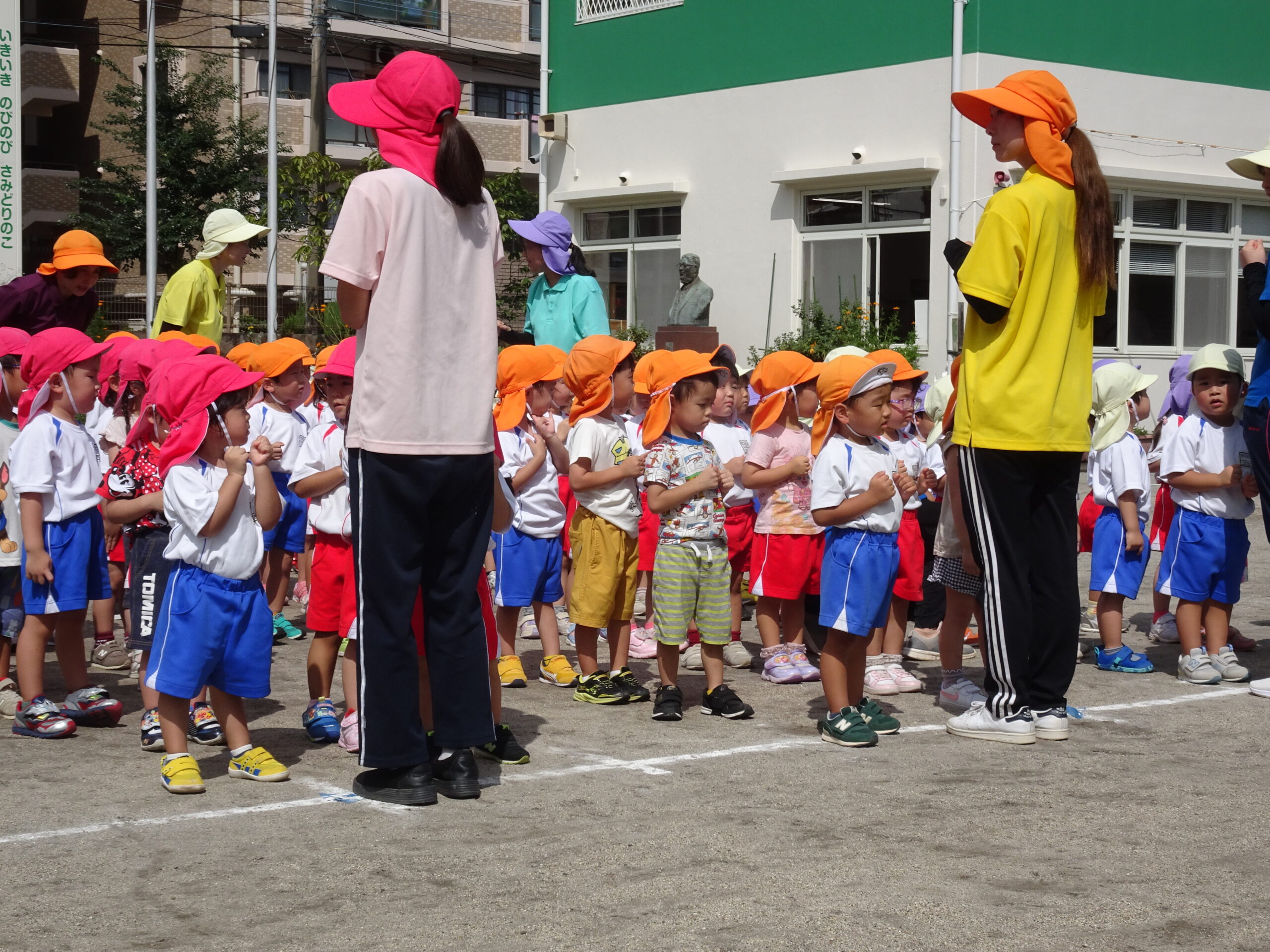 年少さんの遊戯の練習の様子です。暑い中、よく動いています。
