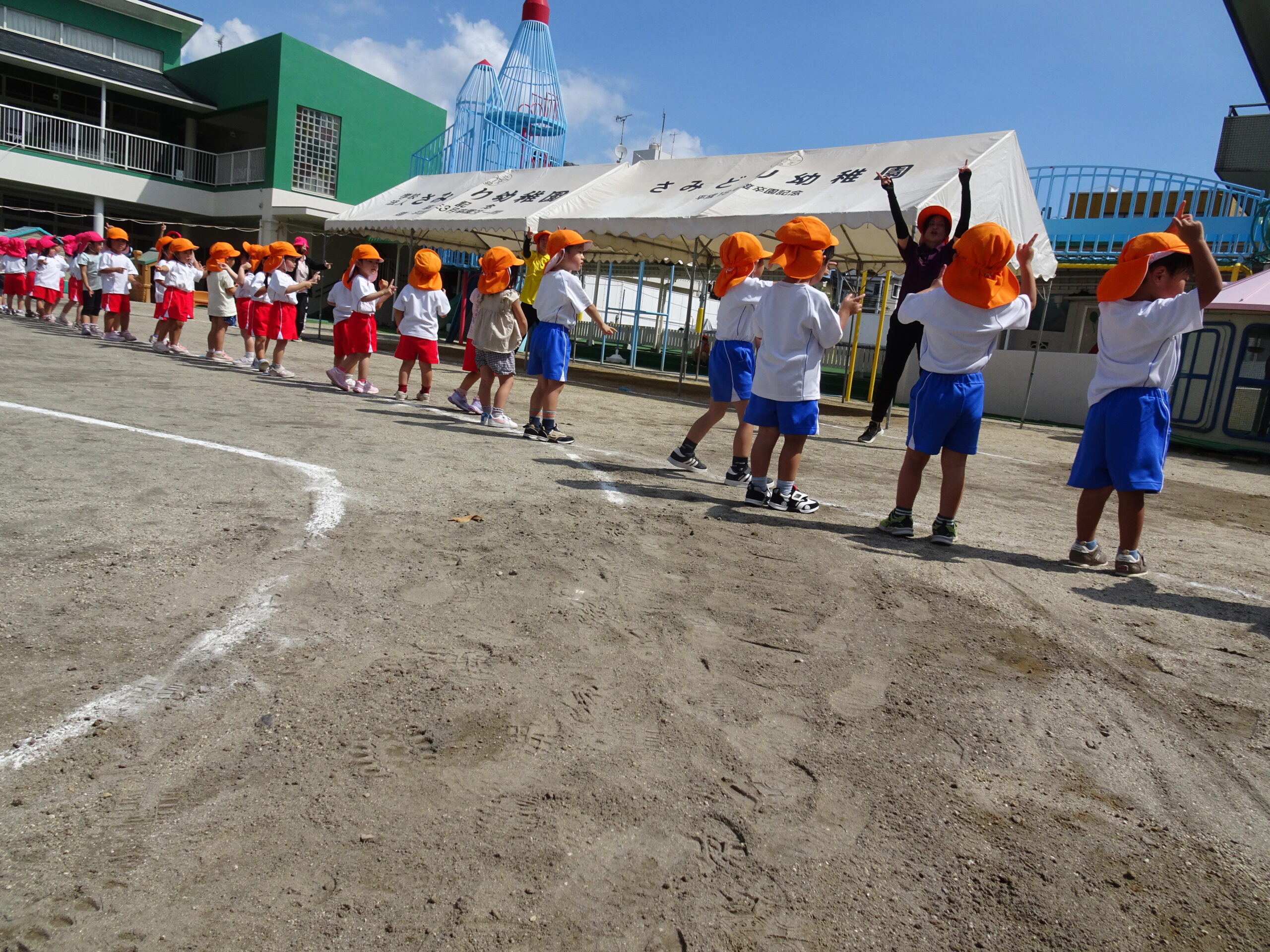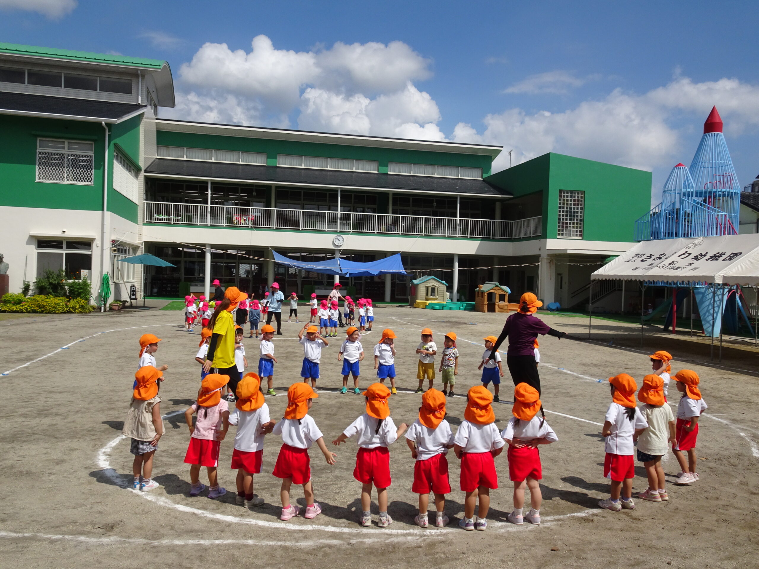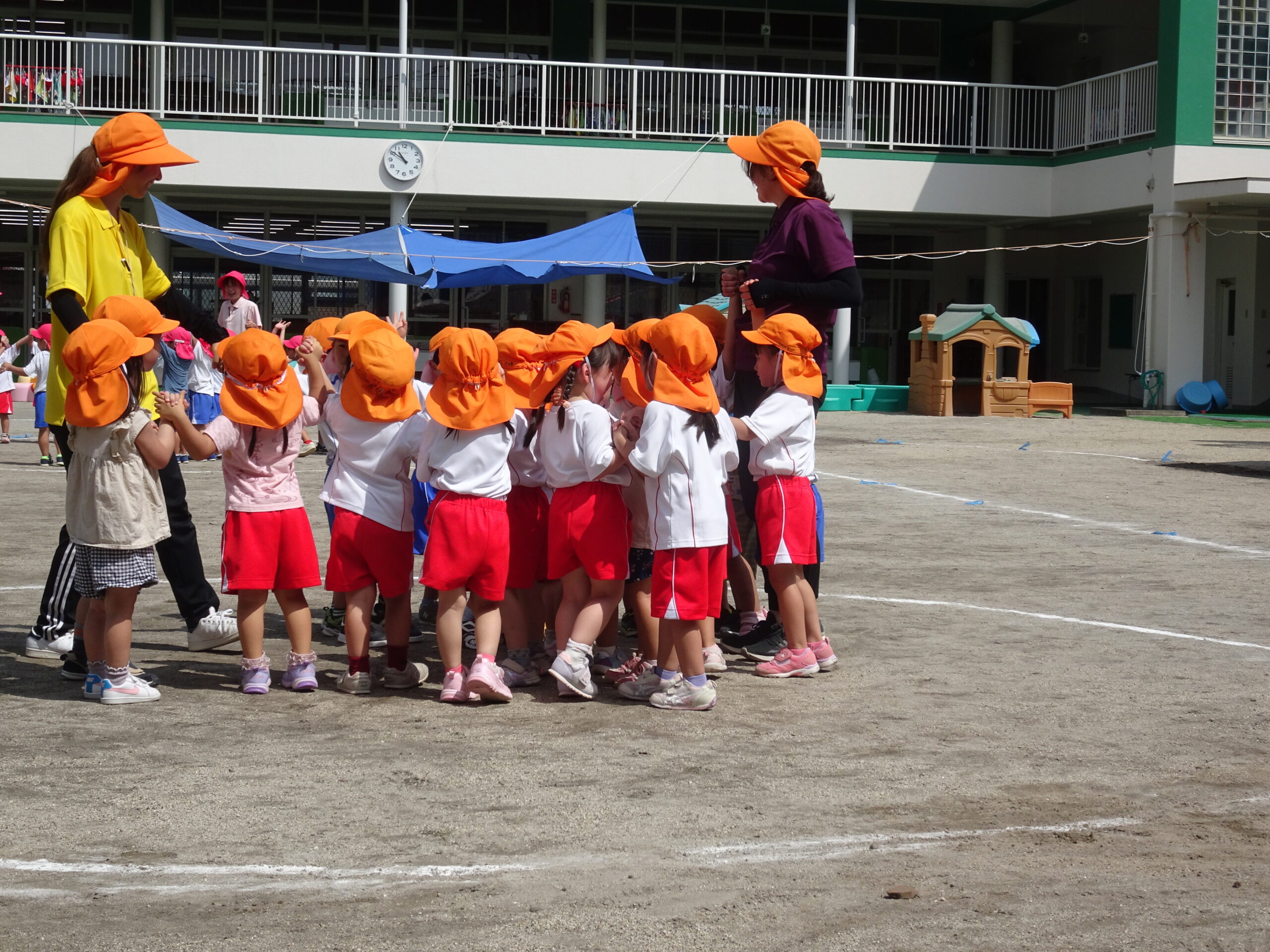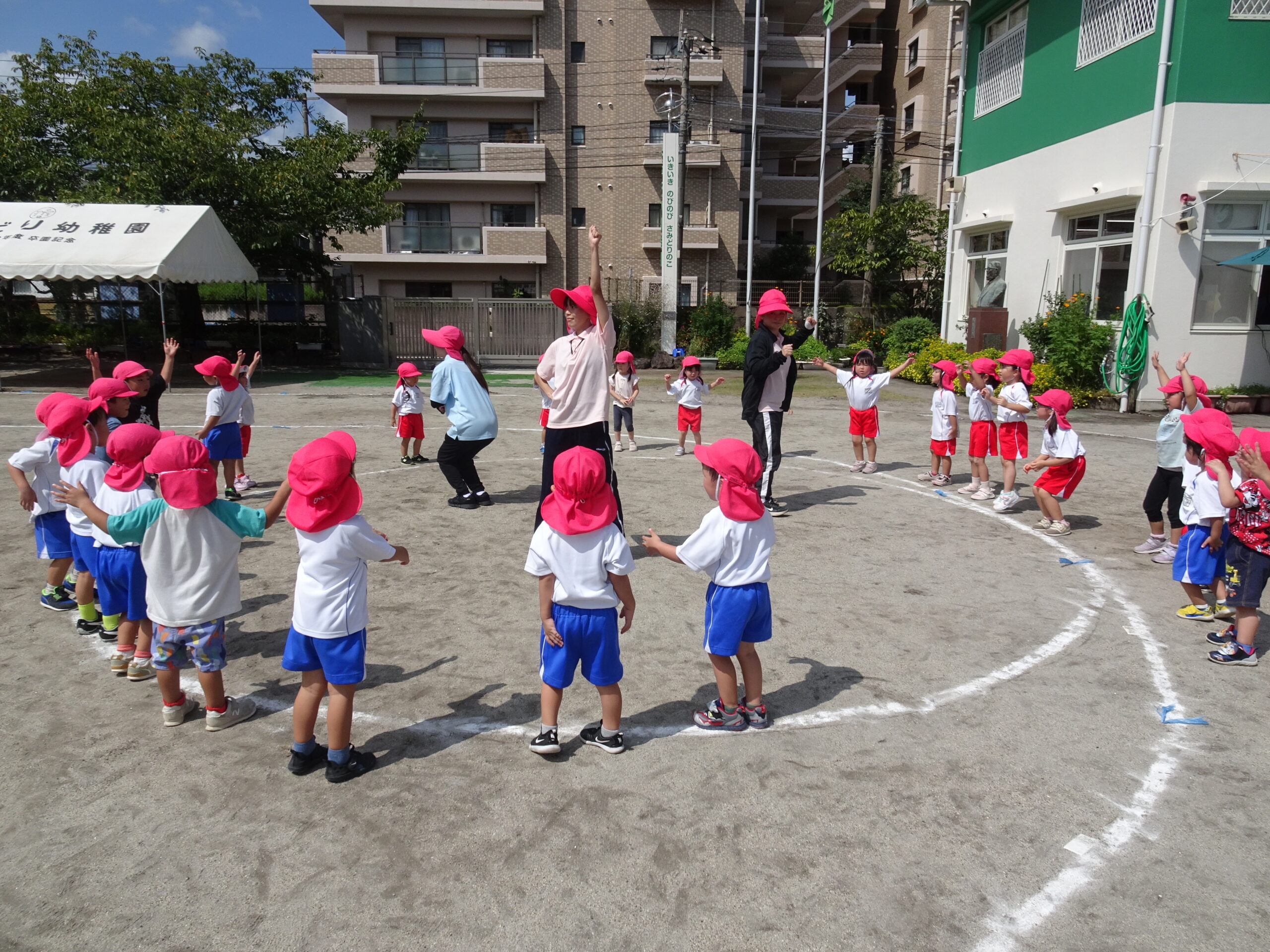年少さんの遊戯の練習の様子です。暑い中、よく動いています。