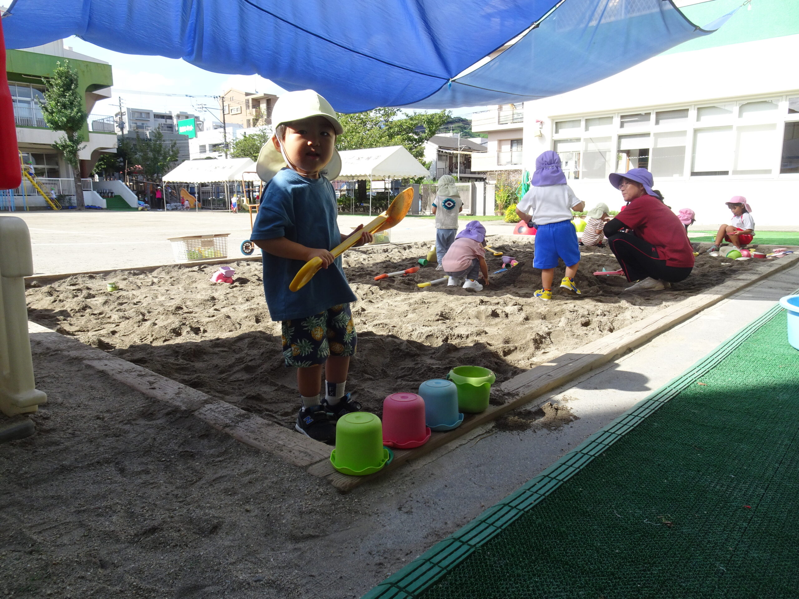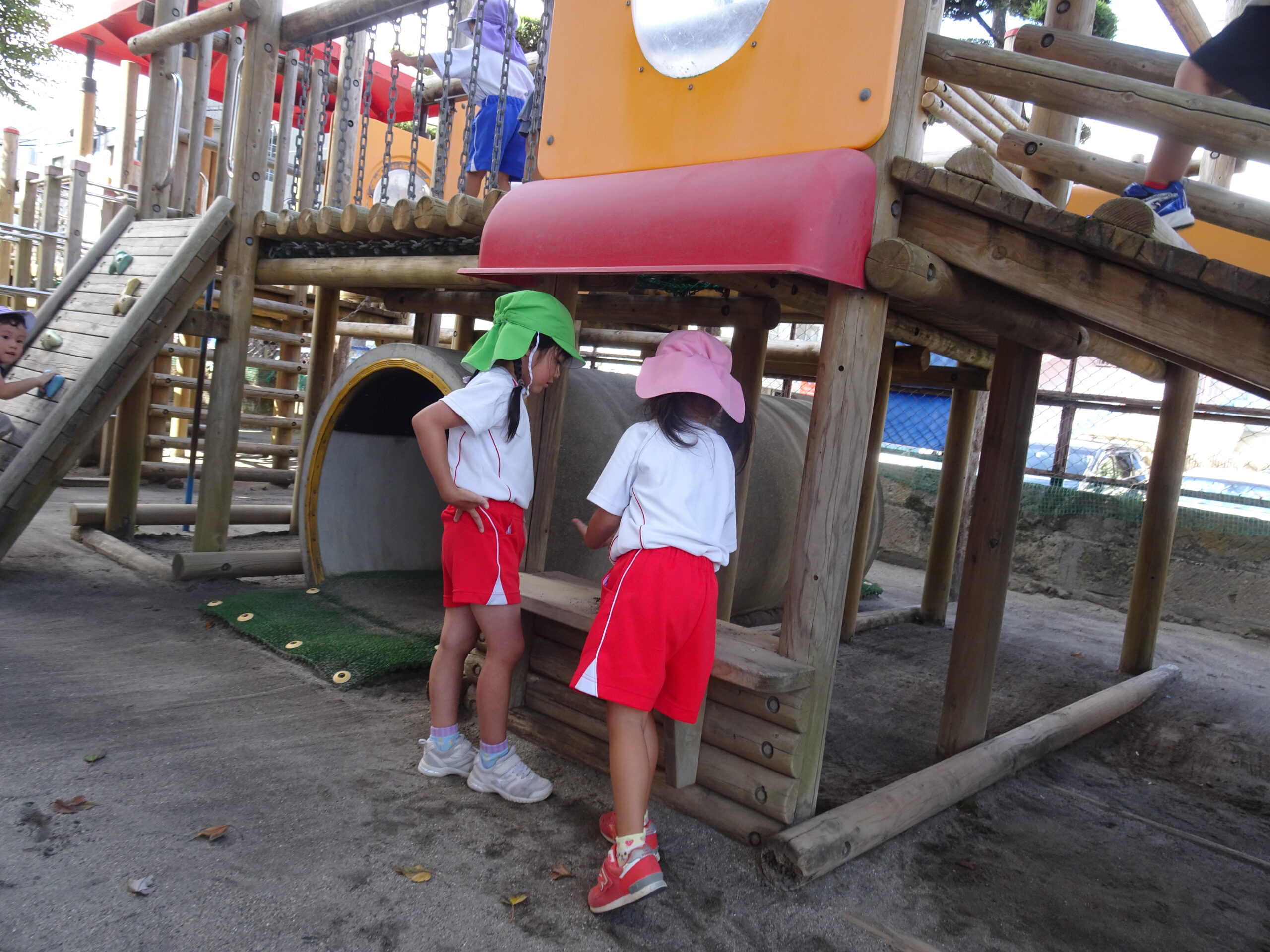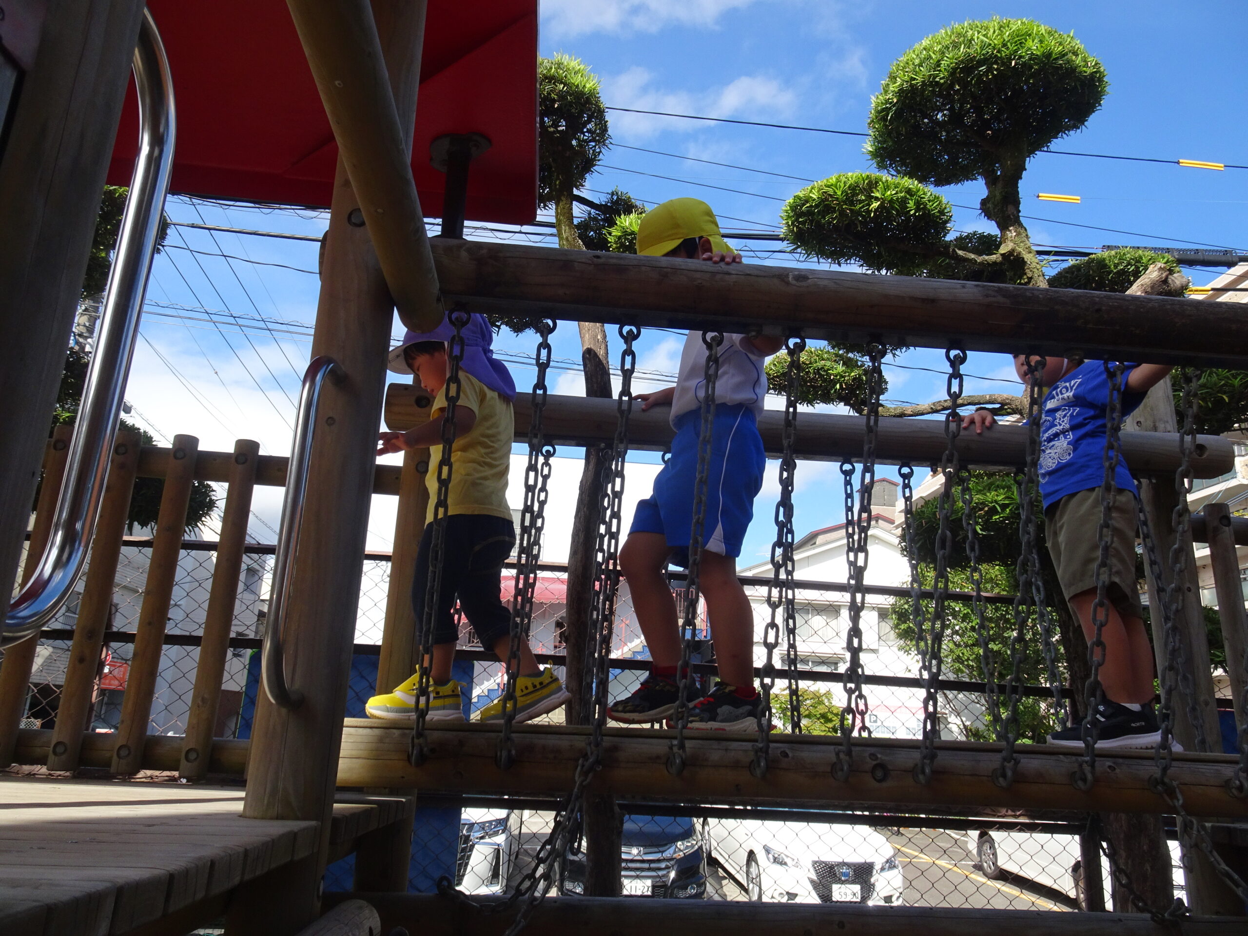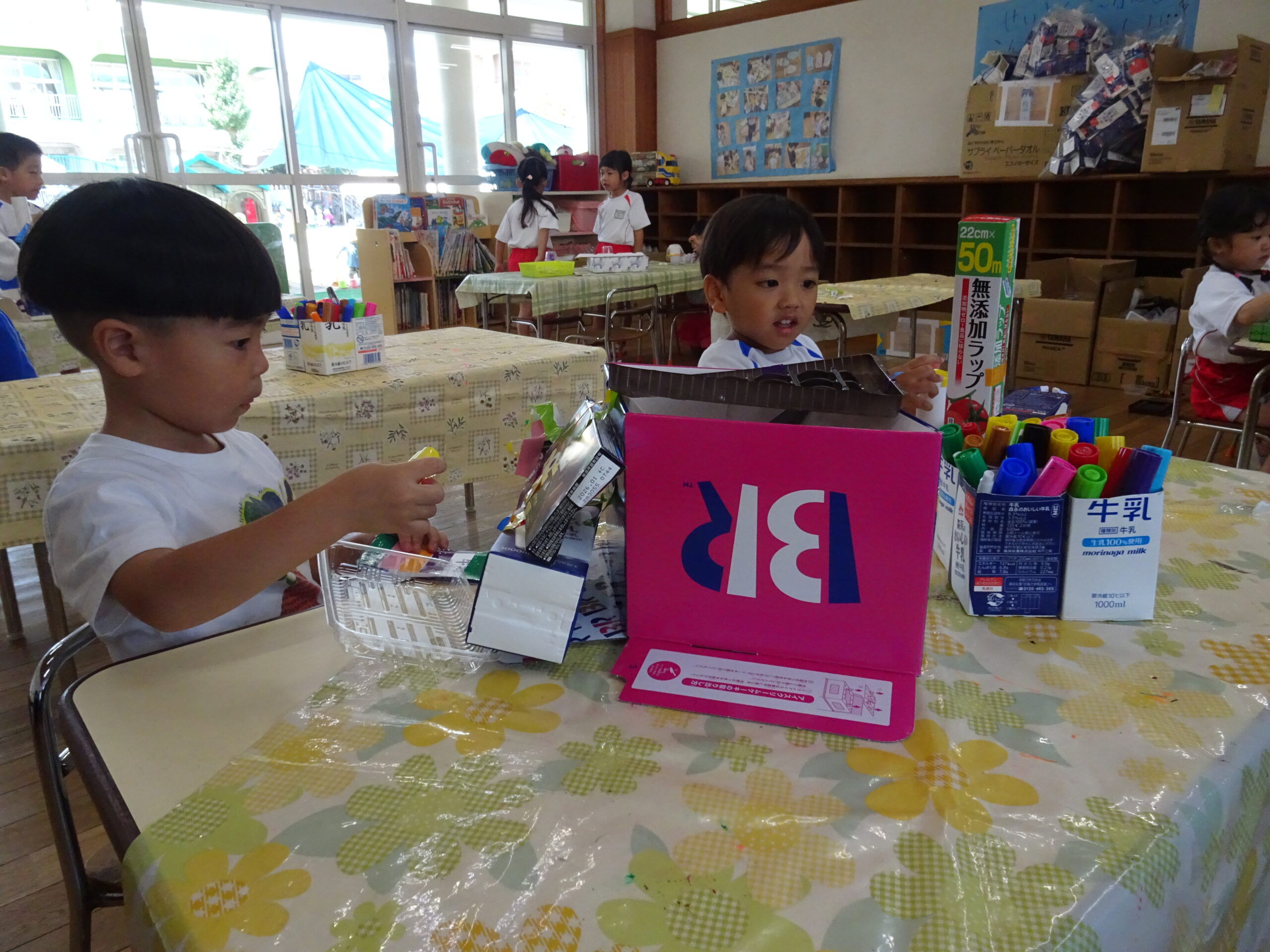 活動Ⅰの時間(登園後~9:50)は、遊ぶ場所や遊ぶ種類を自分で選んで遊ぶ時間帯です。今日の9:15分~9:30分の子ども達の遊びの様子です。暑さのためか、年長さんは教室で遊ぶ人も多いでした。