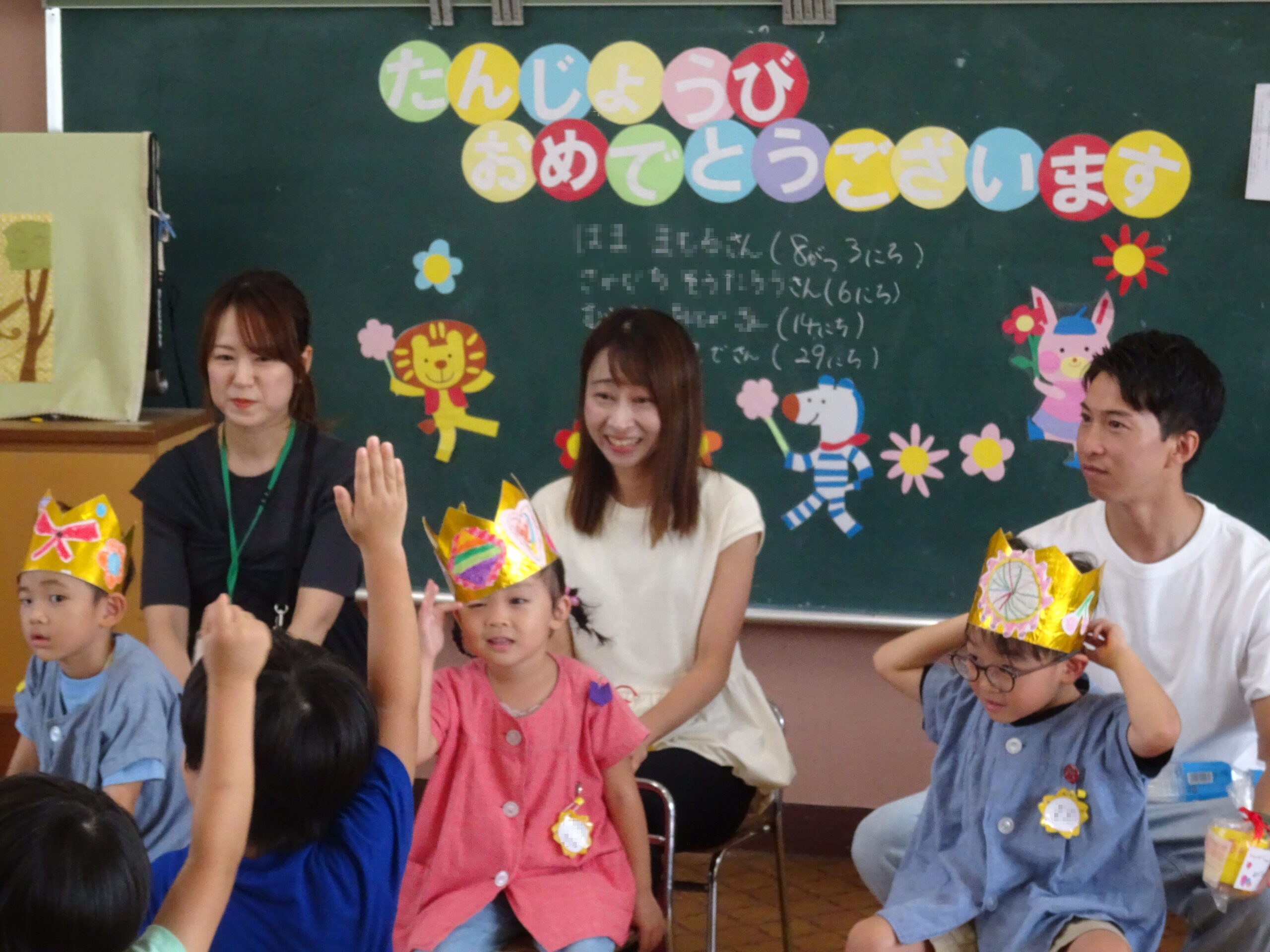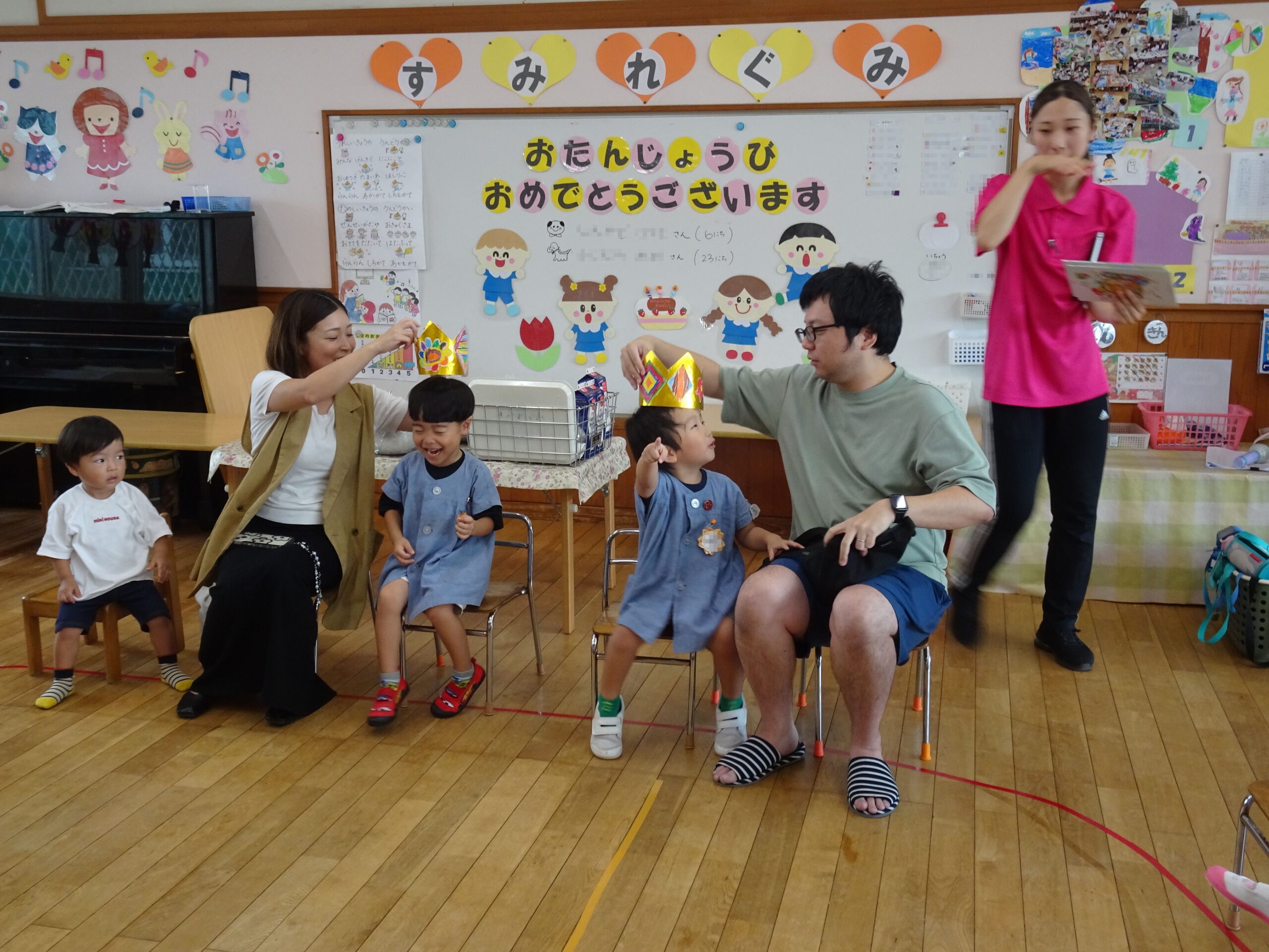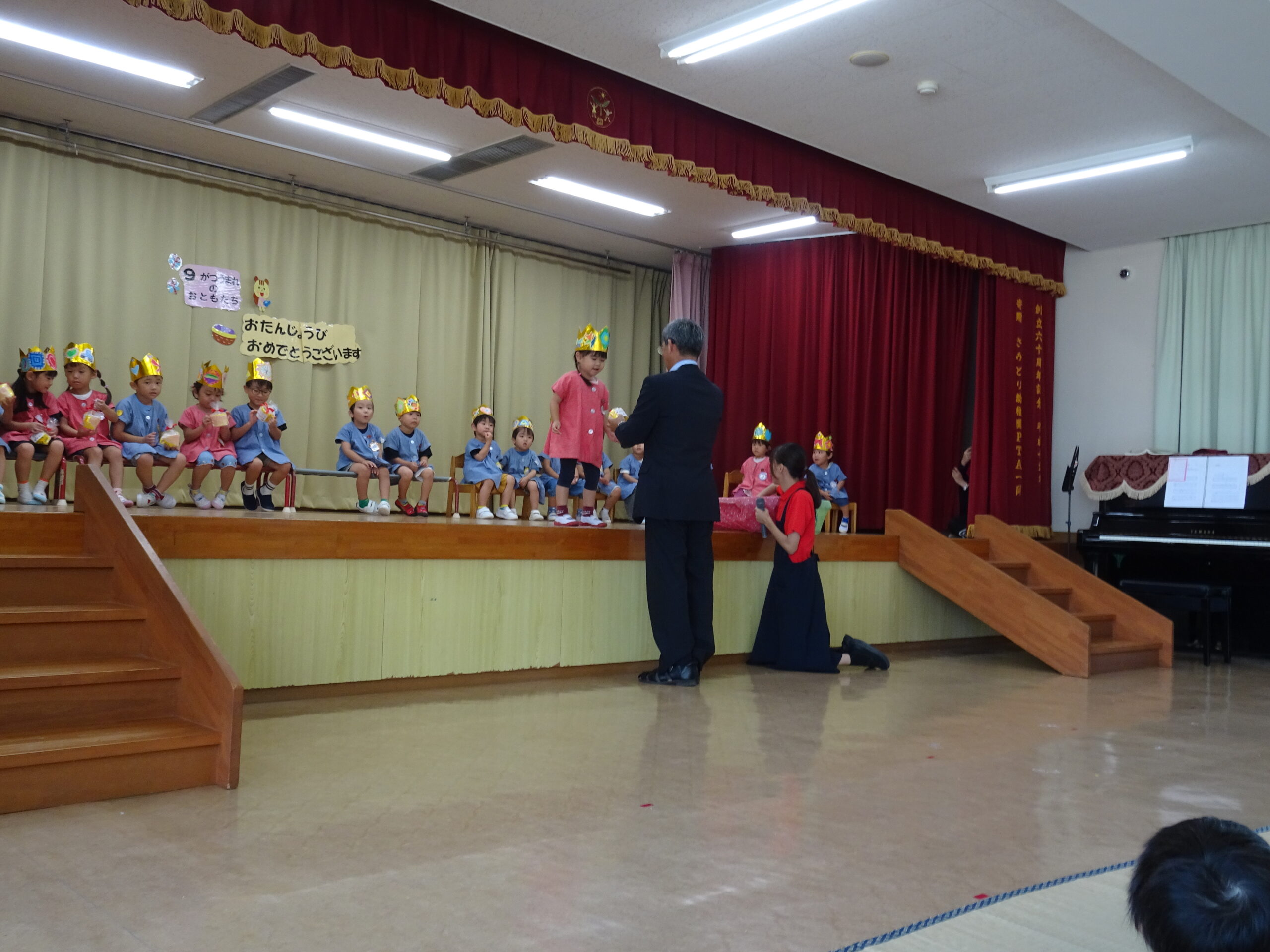 9月26日(金)9月生まれの誕生会がありました。一つ大きくなって、更に自分のことを紹介することが上手になっていました。ちゅうりっぷ組さんのたんじょう者も舞台に堂々と立って紹介できました。お誕生日おめでとうございます。