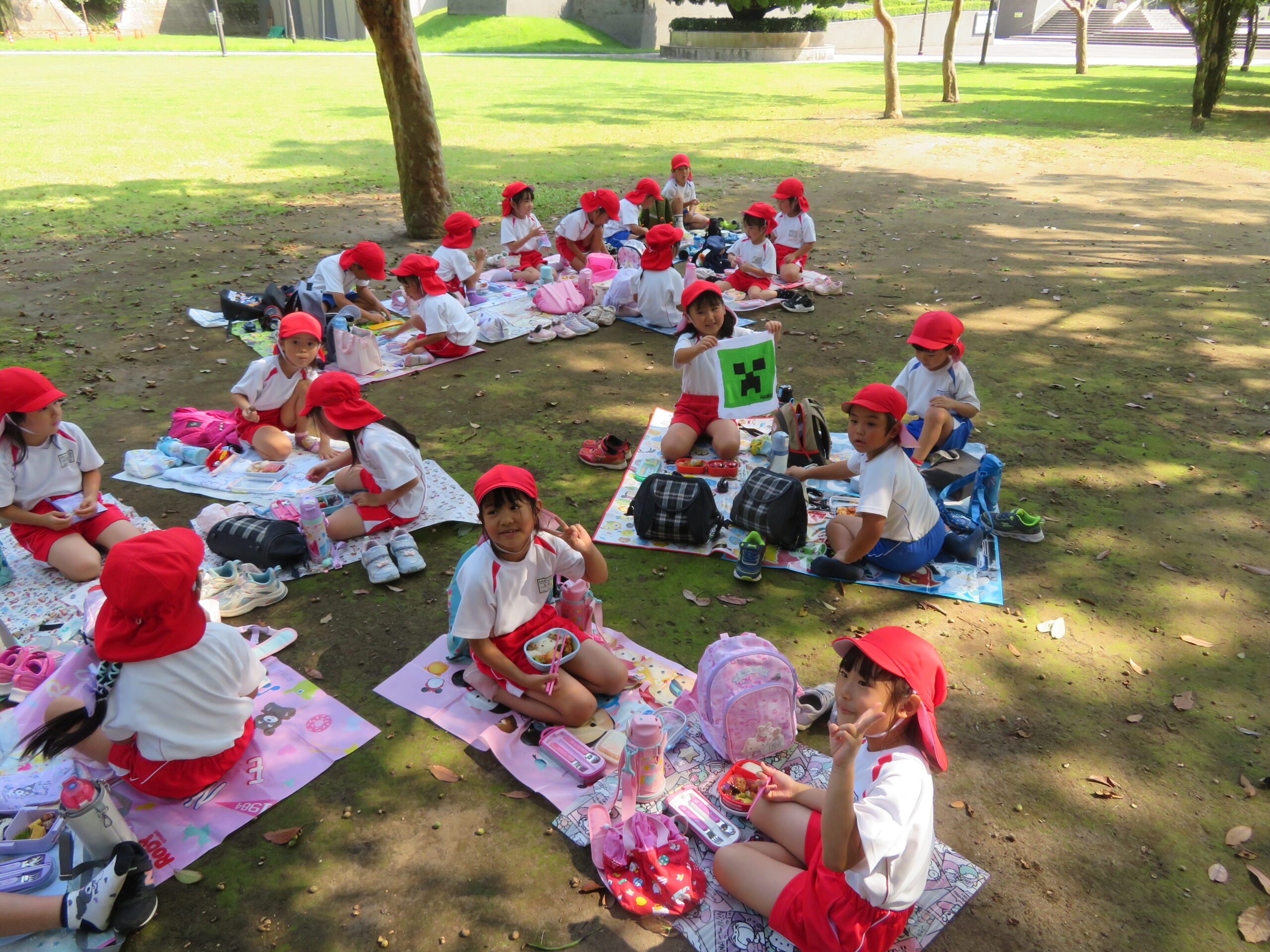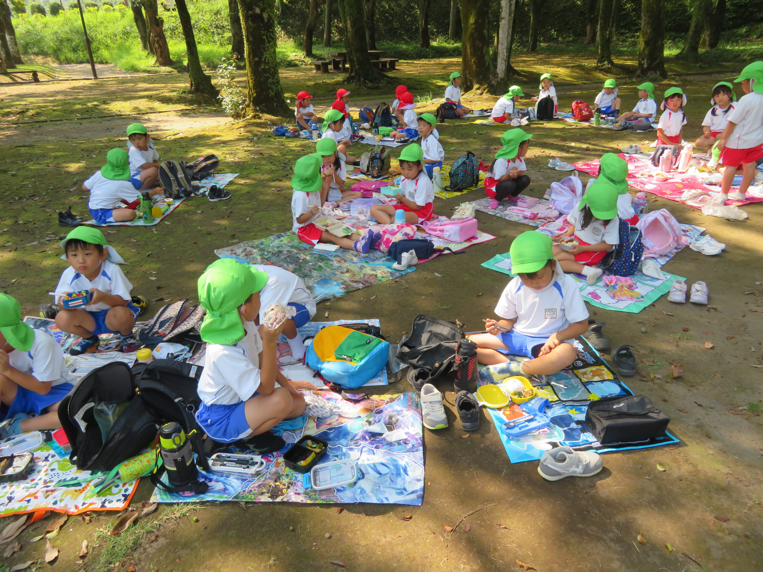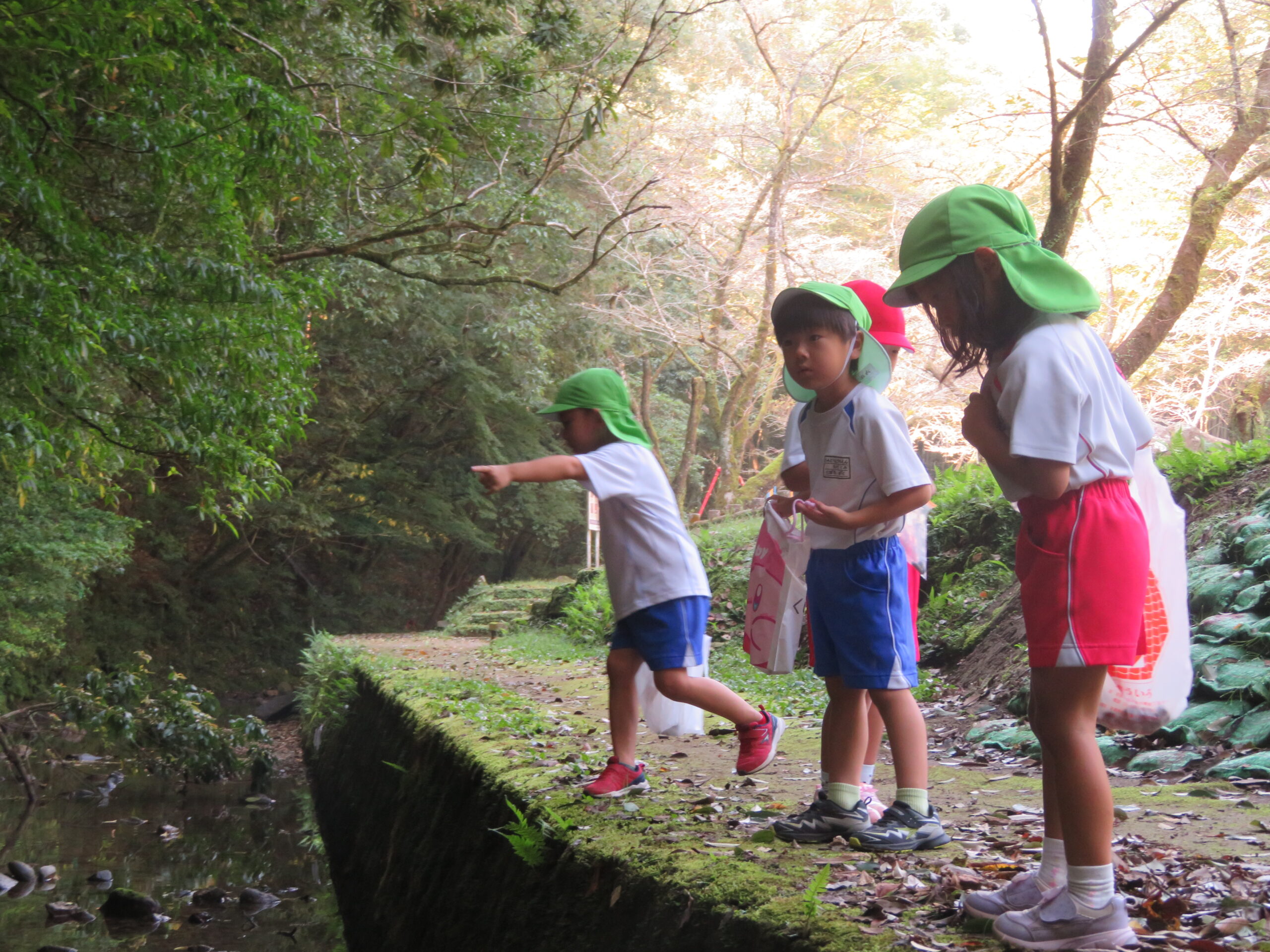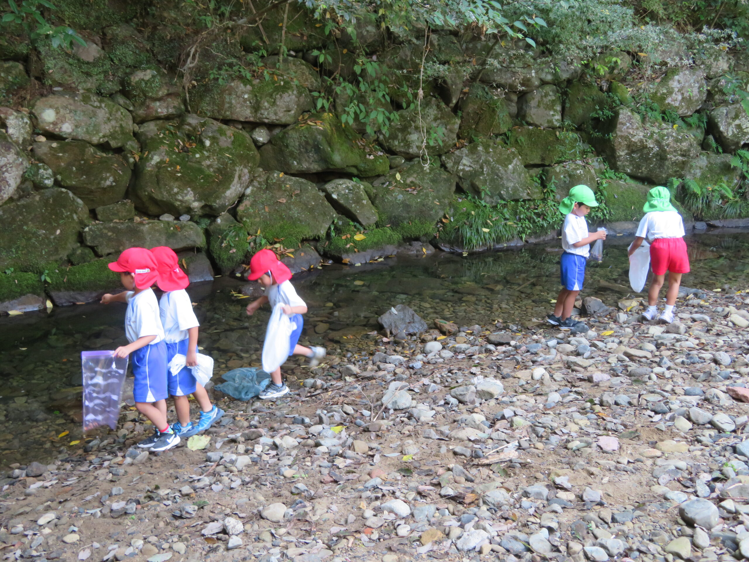 10月17日(金)、年長さんの園外保育「秋の自然を探しに行こう」がありました。慈眼寺公園の木々や草花に触れ、木の実や葉を集めたり、コスモス畑を散策したりして秋の自然に親しみました。