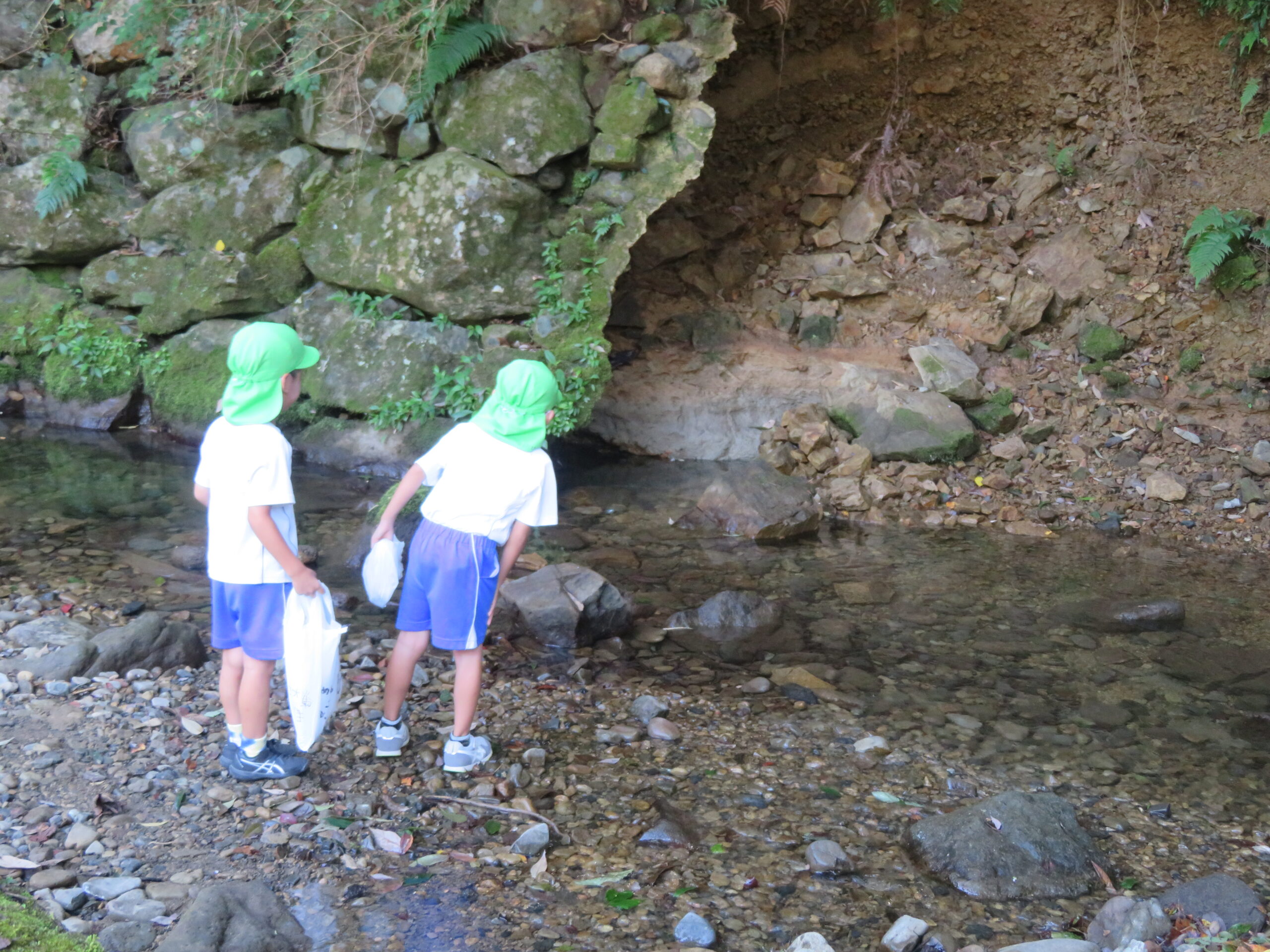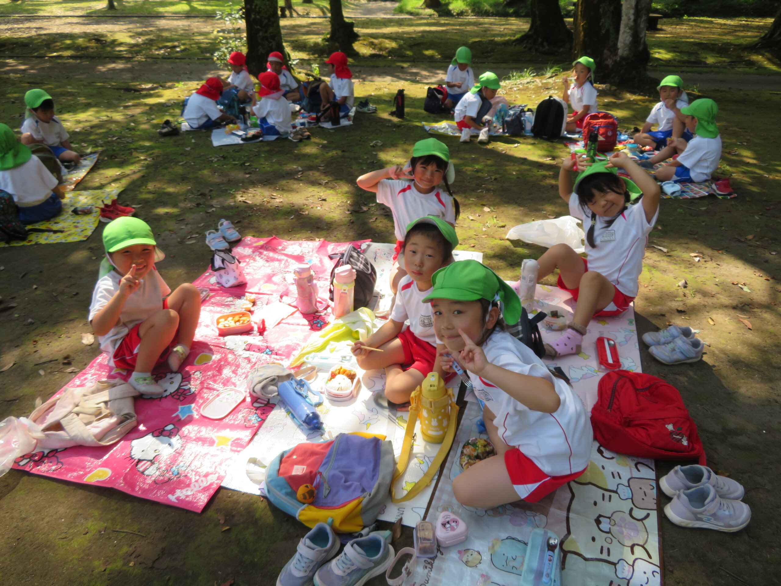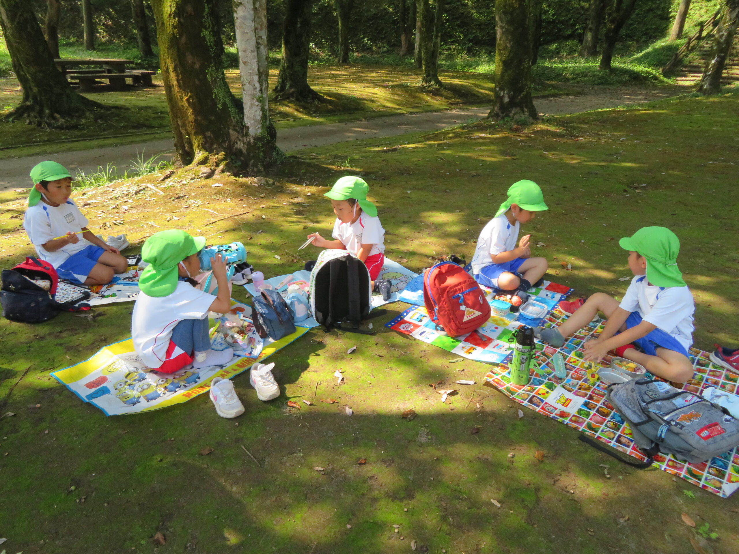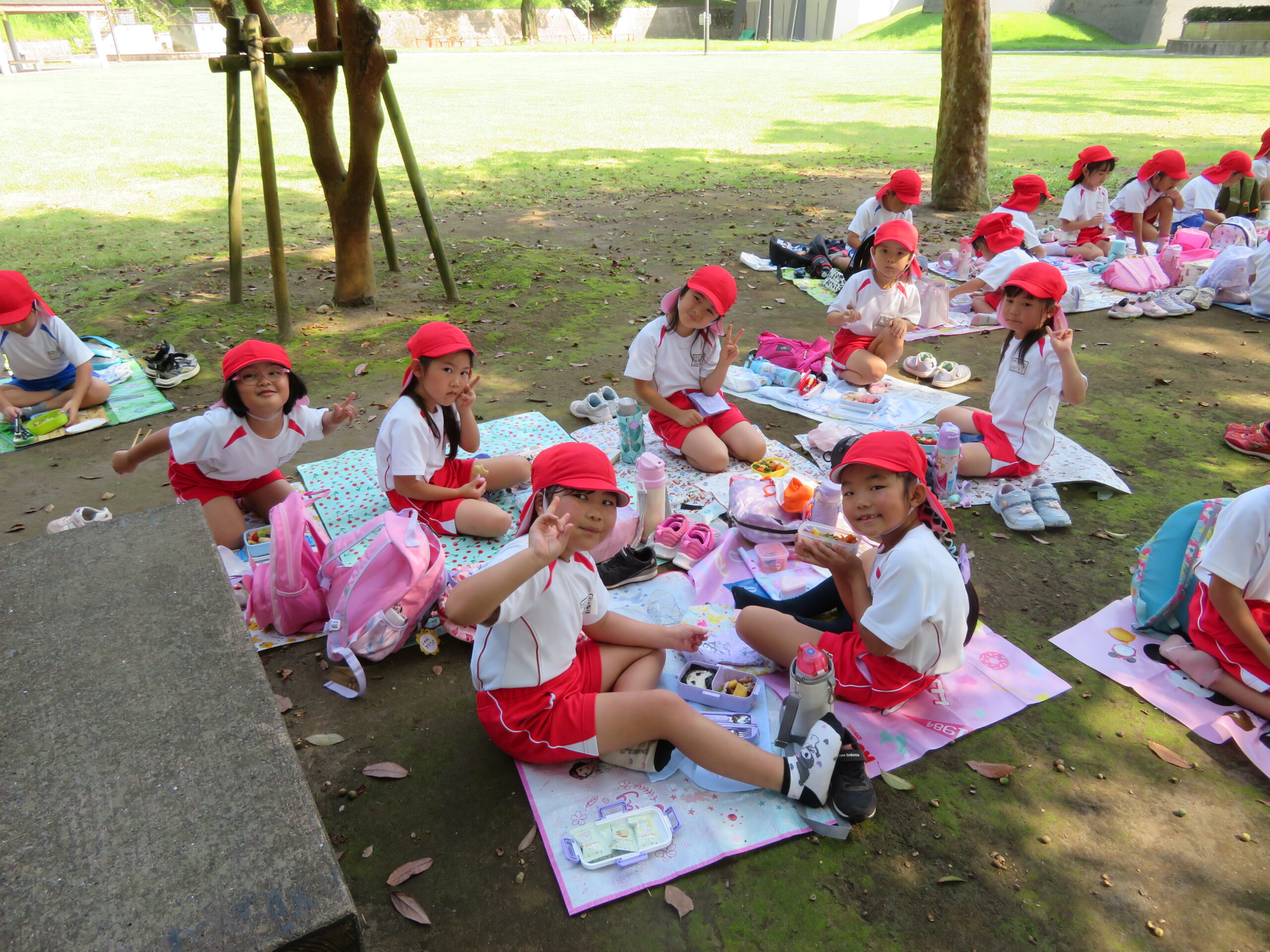 10月17日(金)、年長さんの園外保育「秋の自然を探しに行こう」がありました。慈眼寺公園の木々や草花に触れ、木の実や葉を集めたり、コスモス畑を散策したりして秋の自然に親しみました。