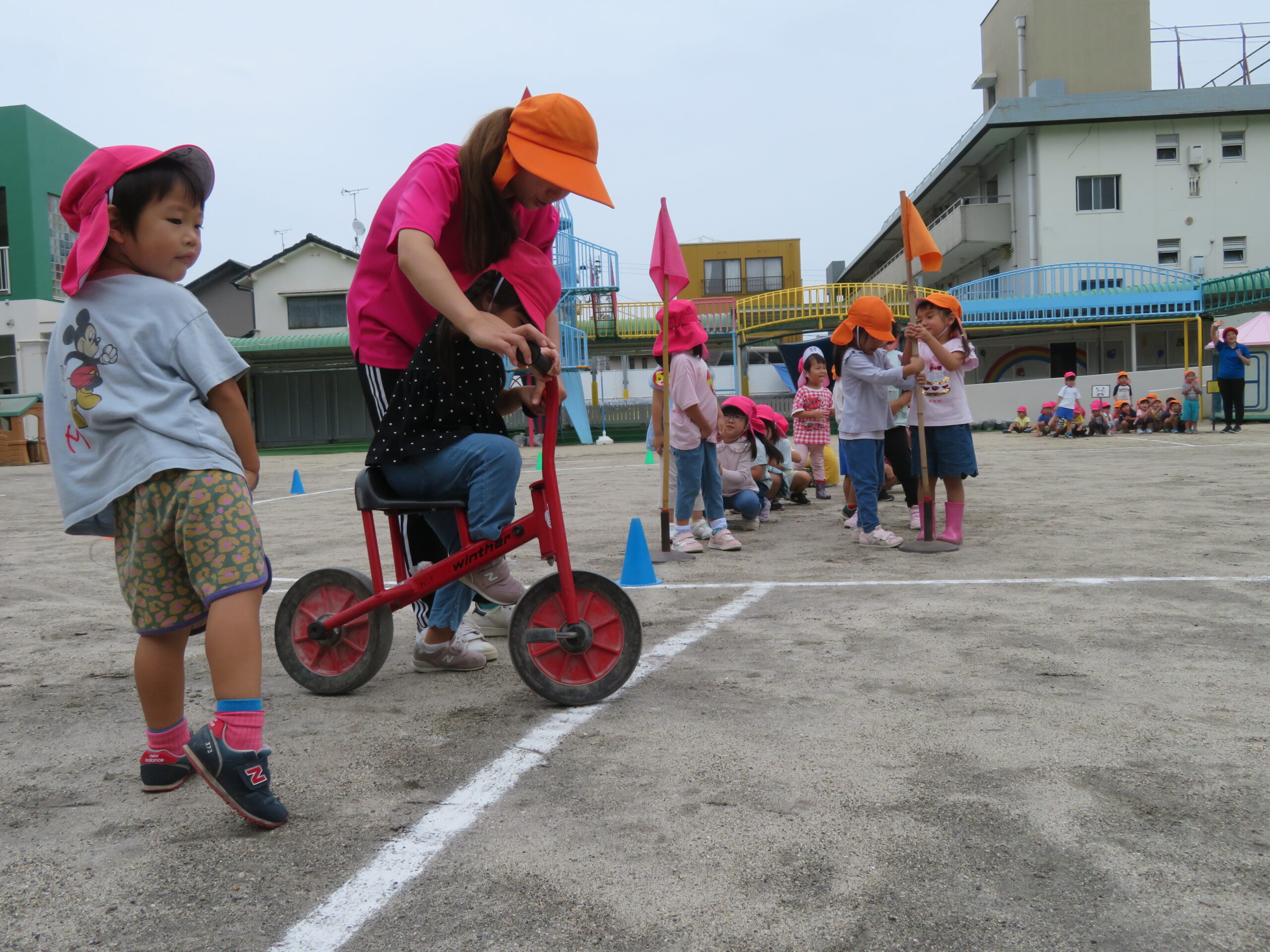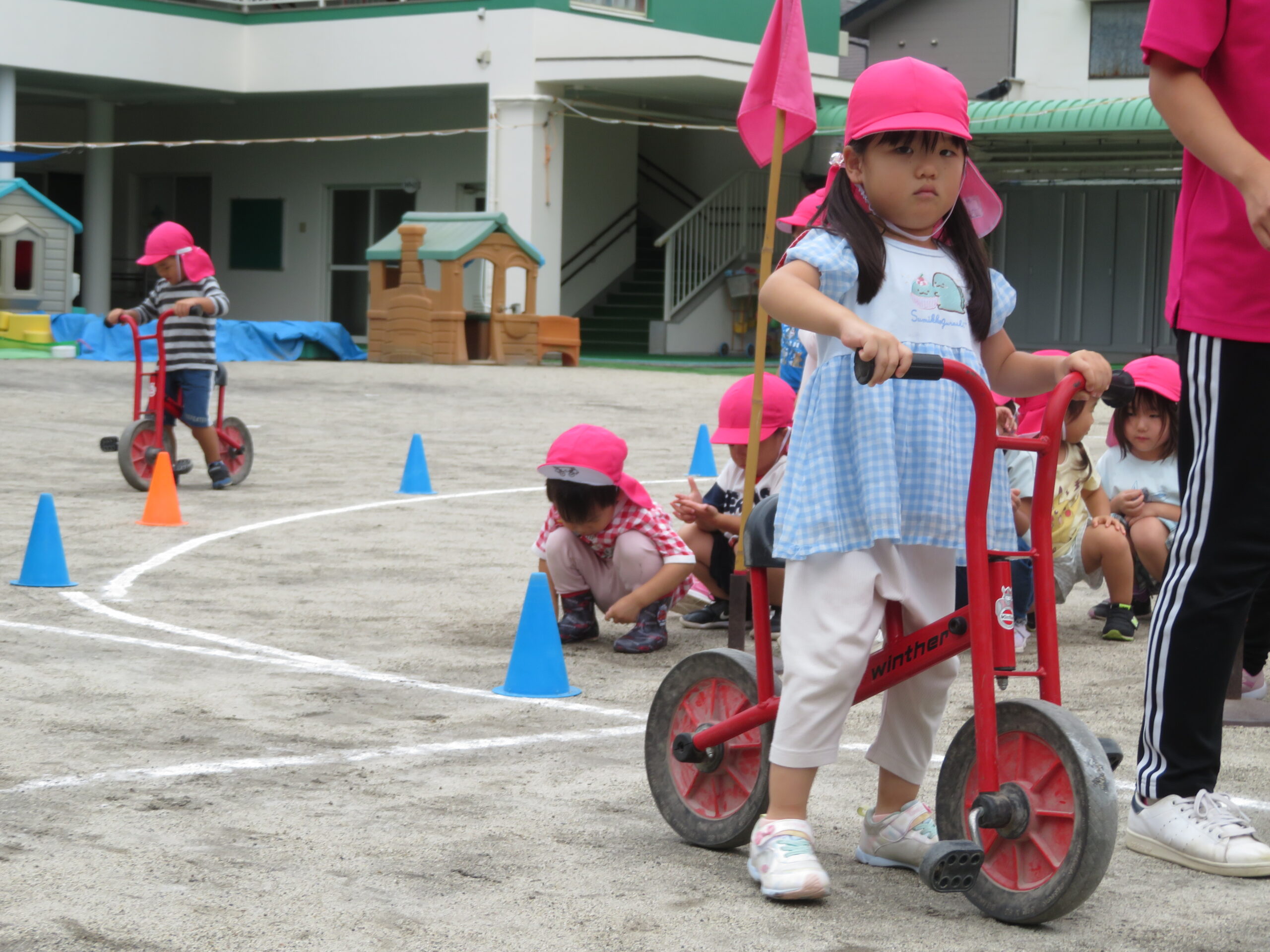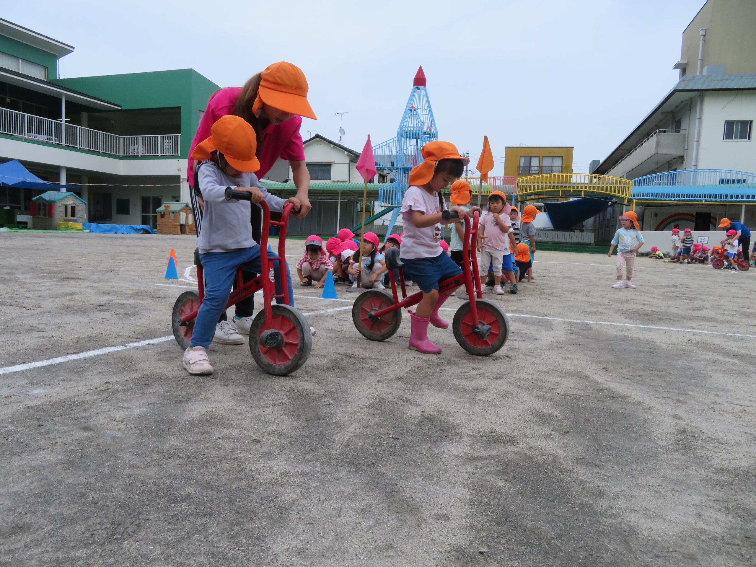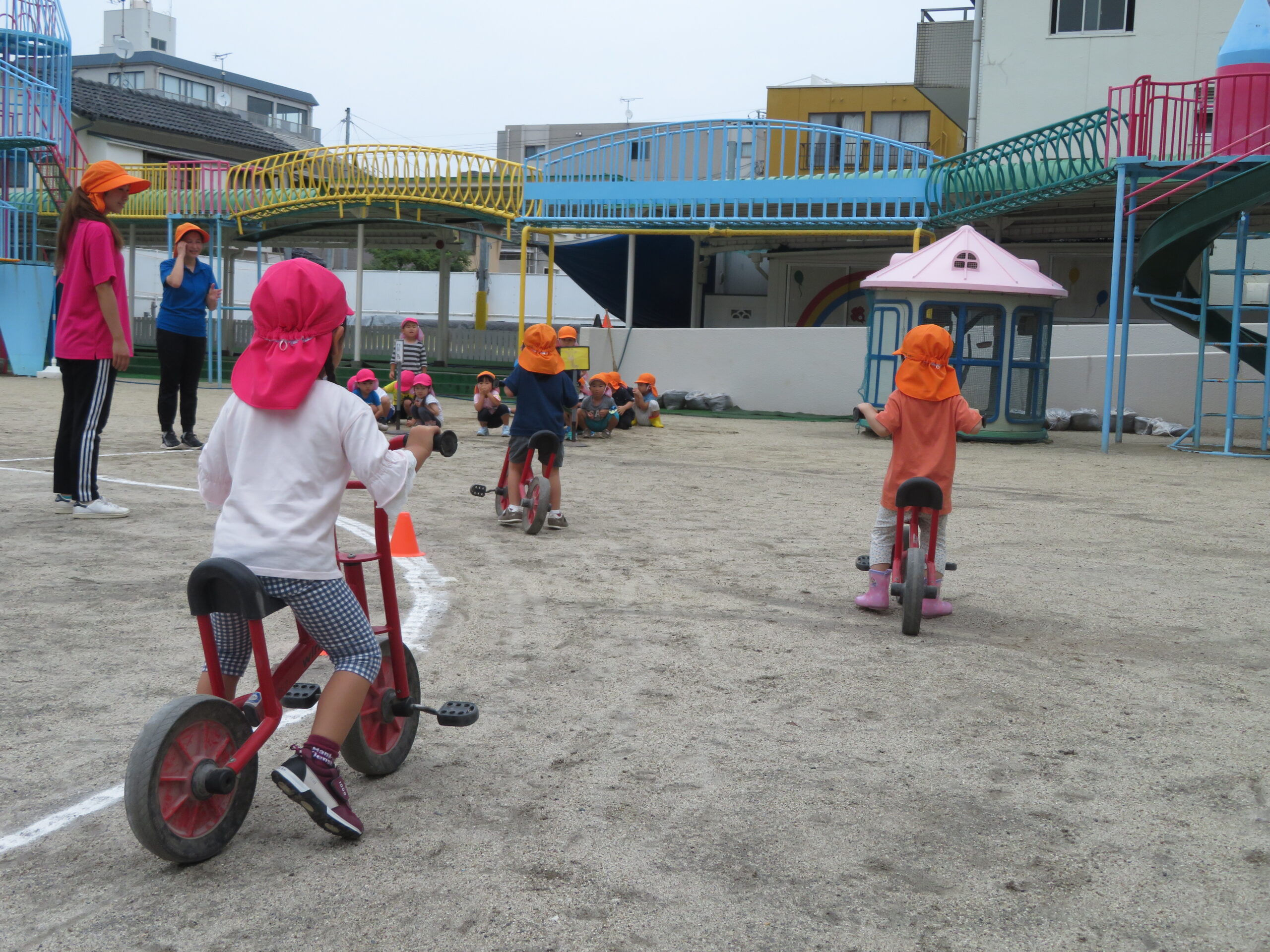 年少さんが初めての二輪車の練習をしました。次回から、活動Ⅰの時間に、二輪車が配置されます。そのための練習です。