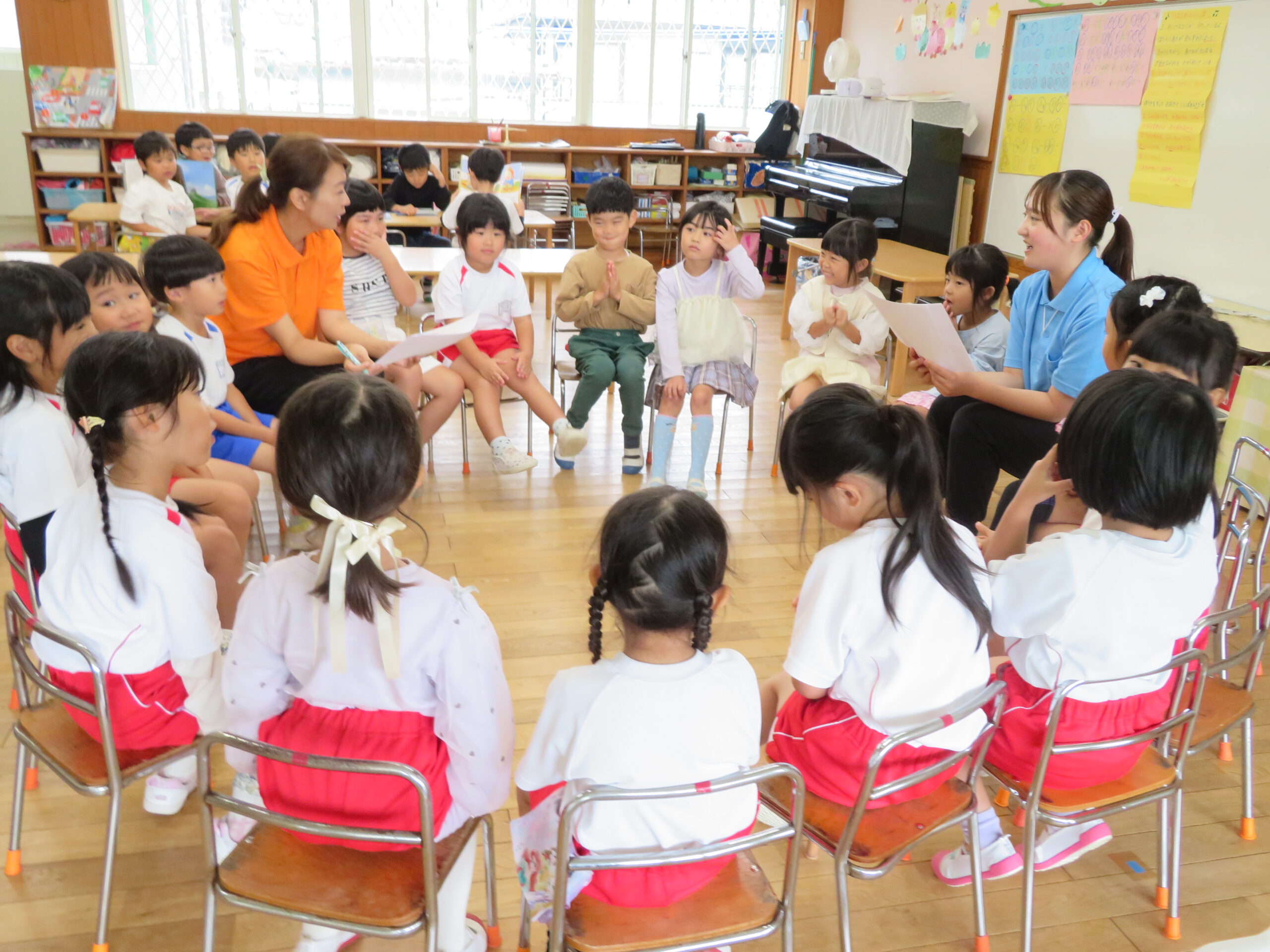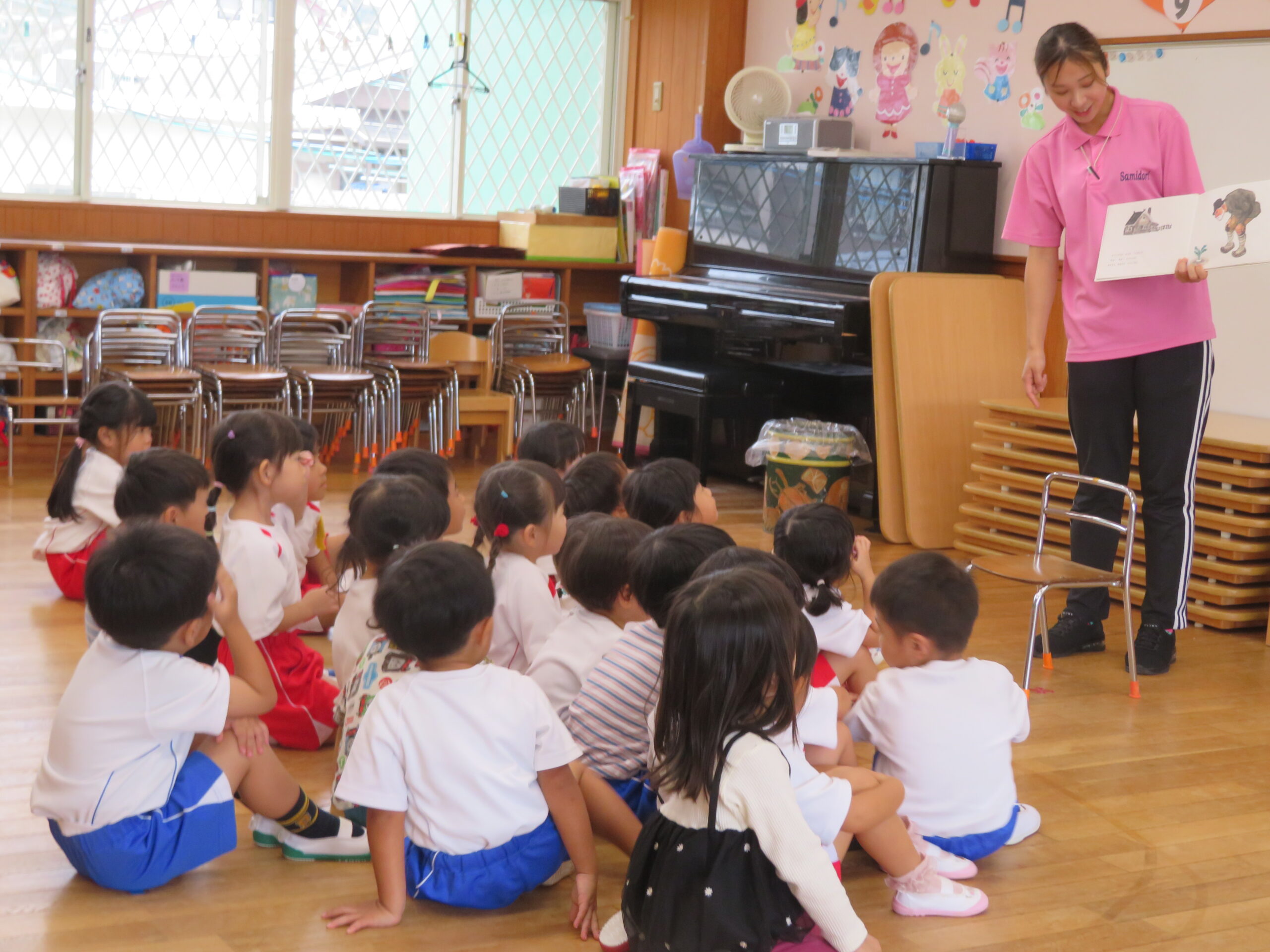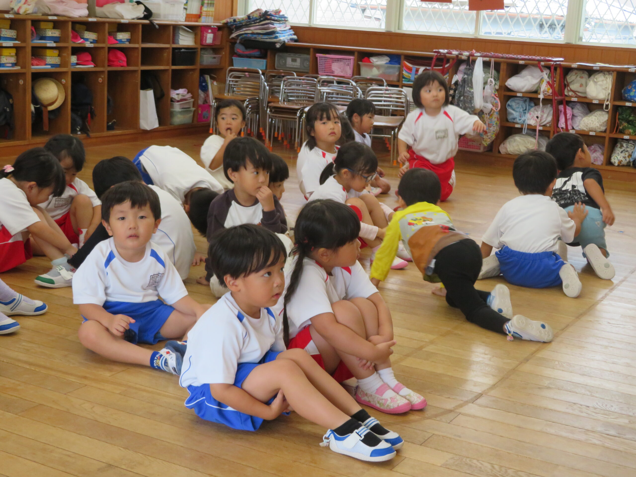 運動会が終わり、発表会の練習が始まりました。年少さんでは、絵本を読んで物語のあらすじを確認したり、年中さんでは、音楽を聴いて動きと合わせたりするなどの姿が見られました。これからが楽しみです。