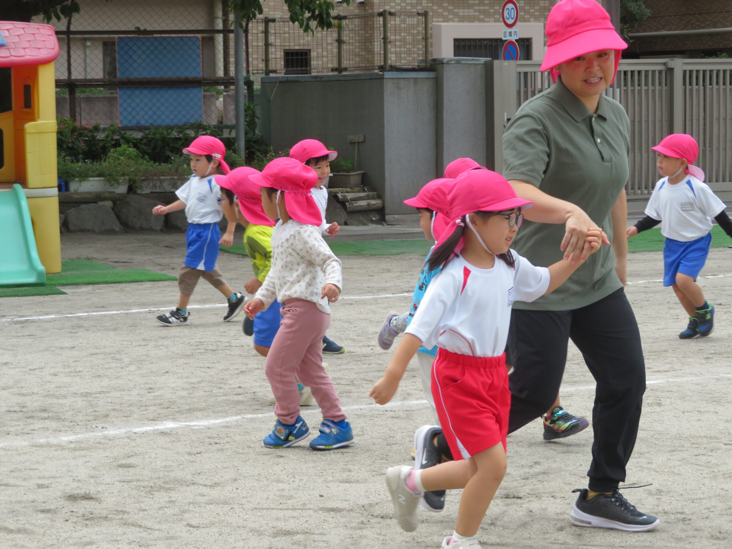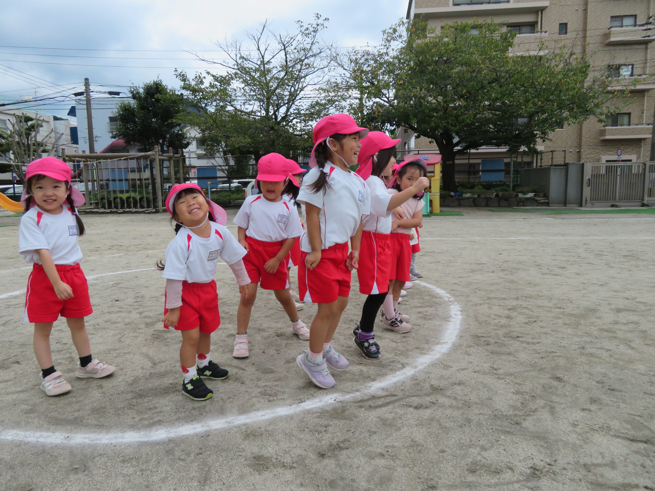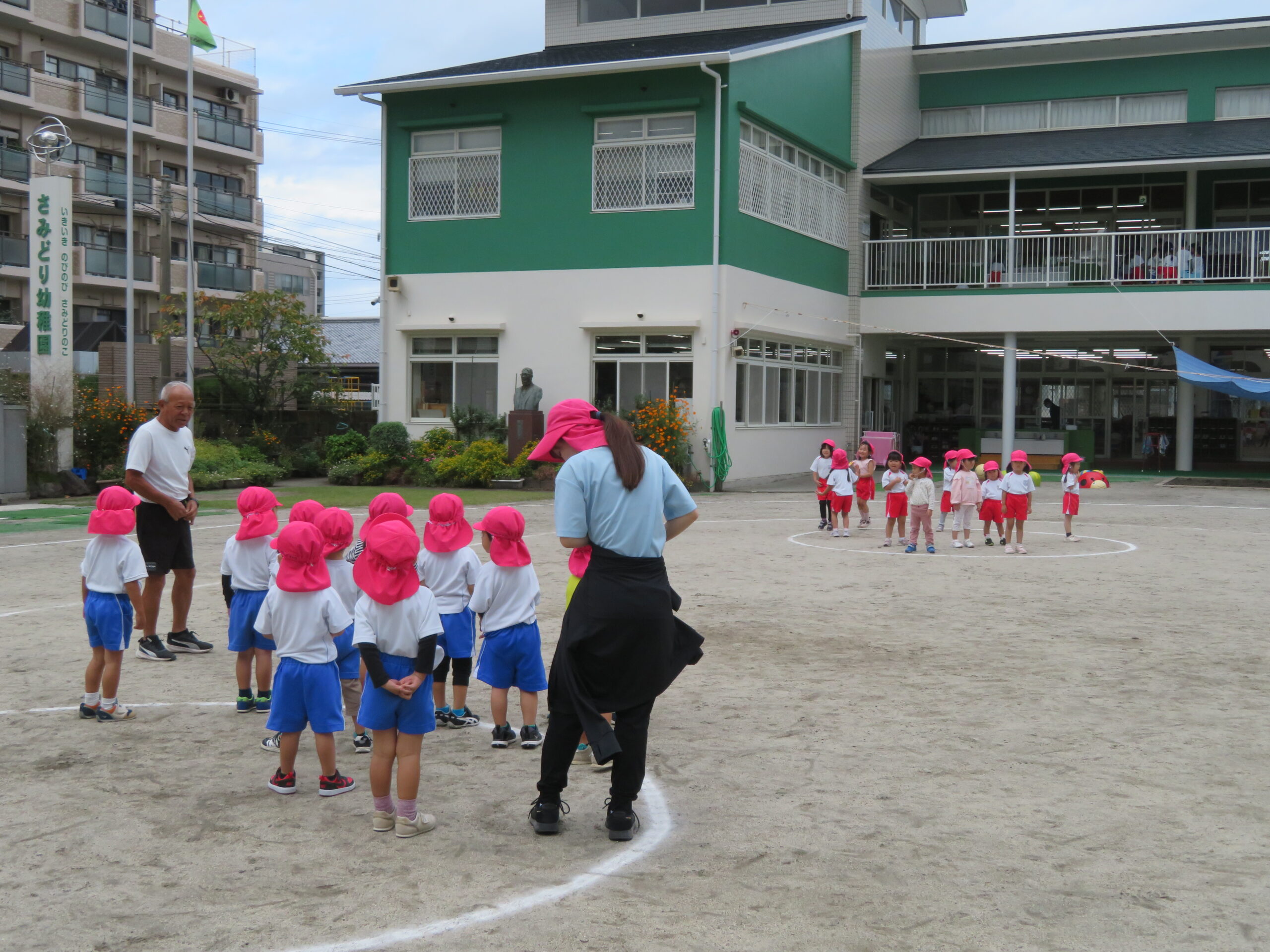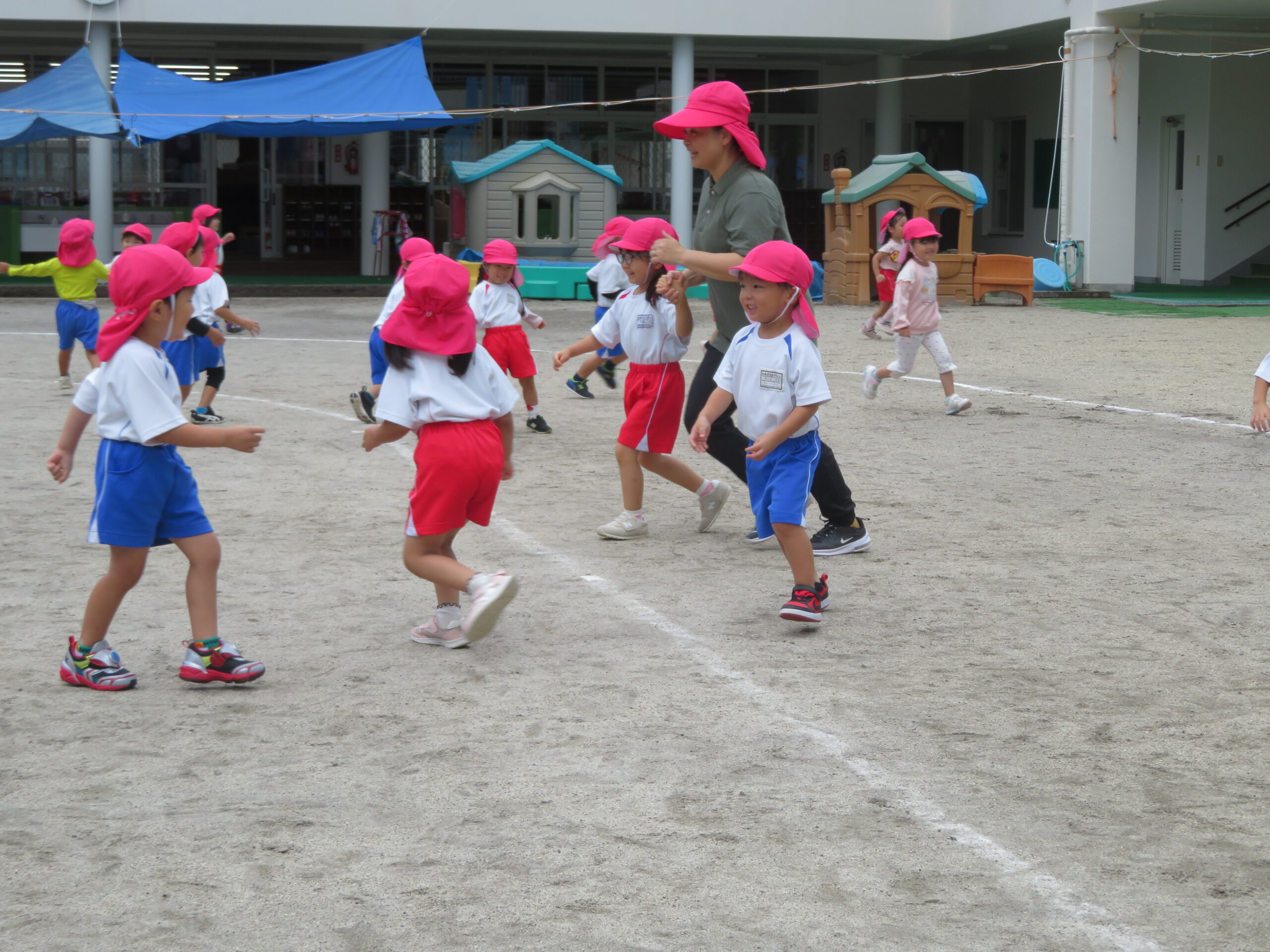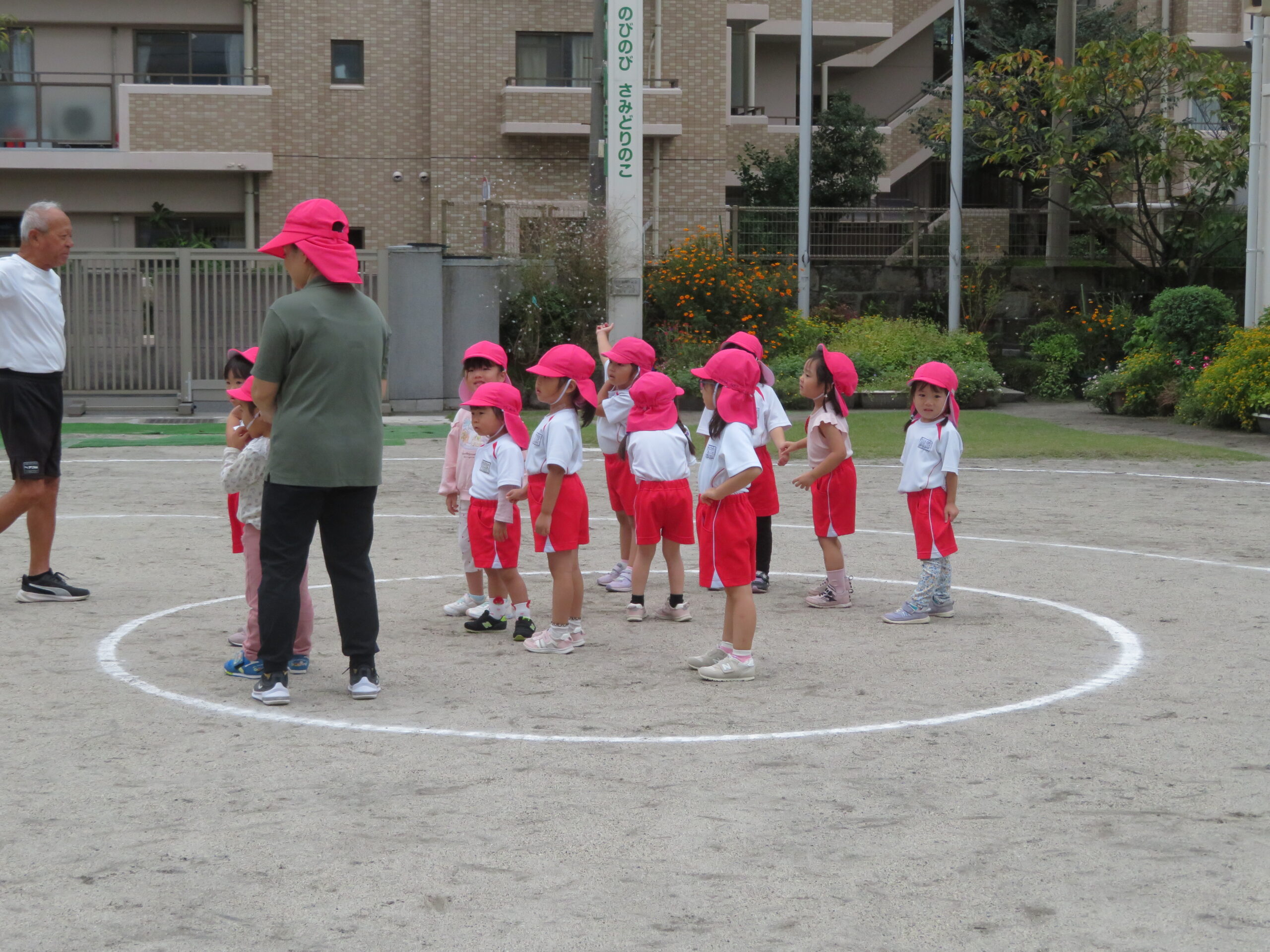 さくら組さんの運動遊びがありました。男女別に分かれての鬼ごっご、5本の縄の綱渡り、そして、平均台のわたり遊びなどの運動でした。一番難しかったのは平均台わたりのようでした。