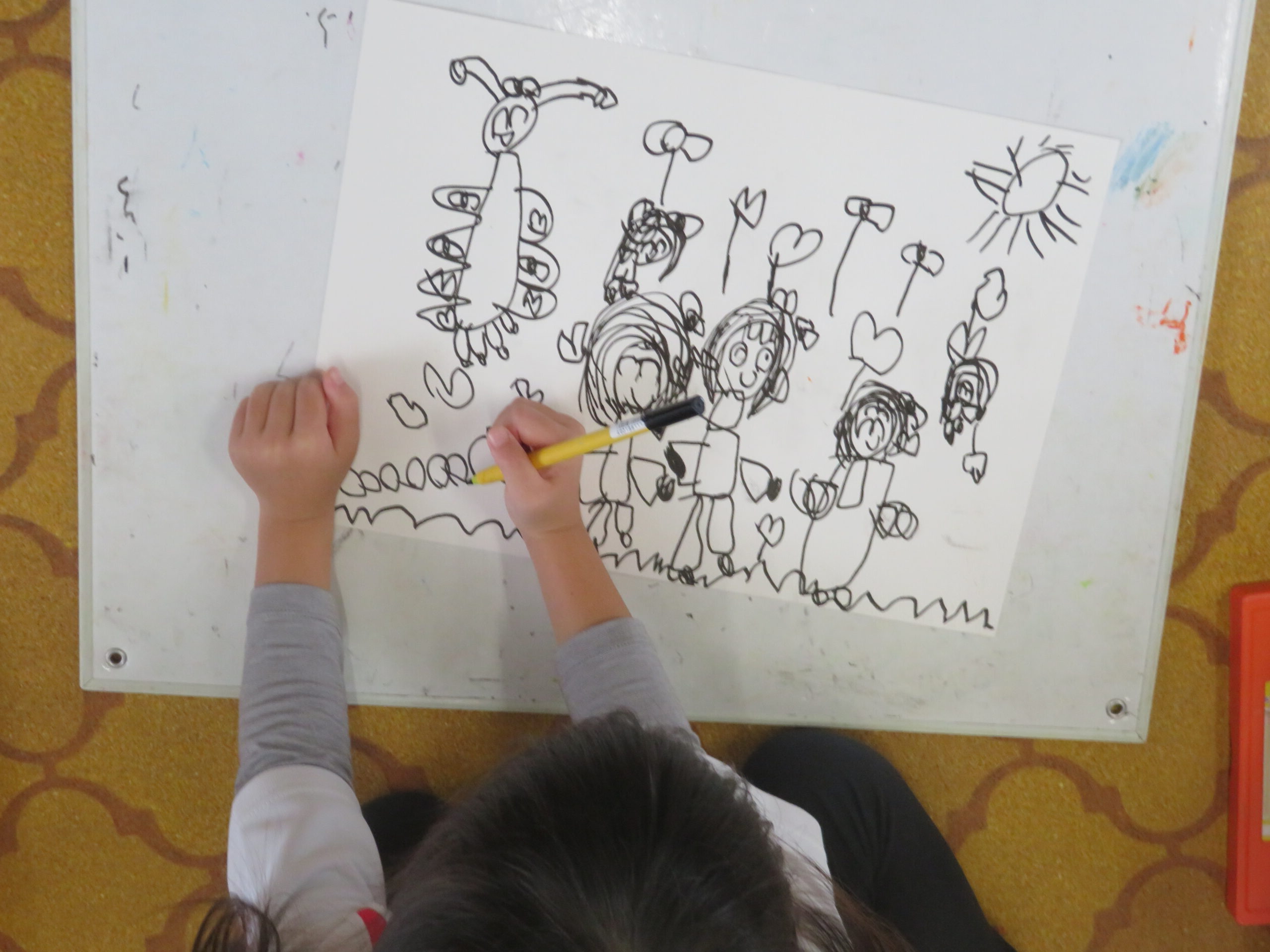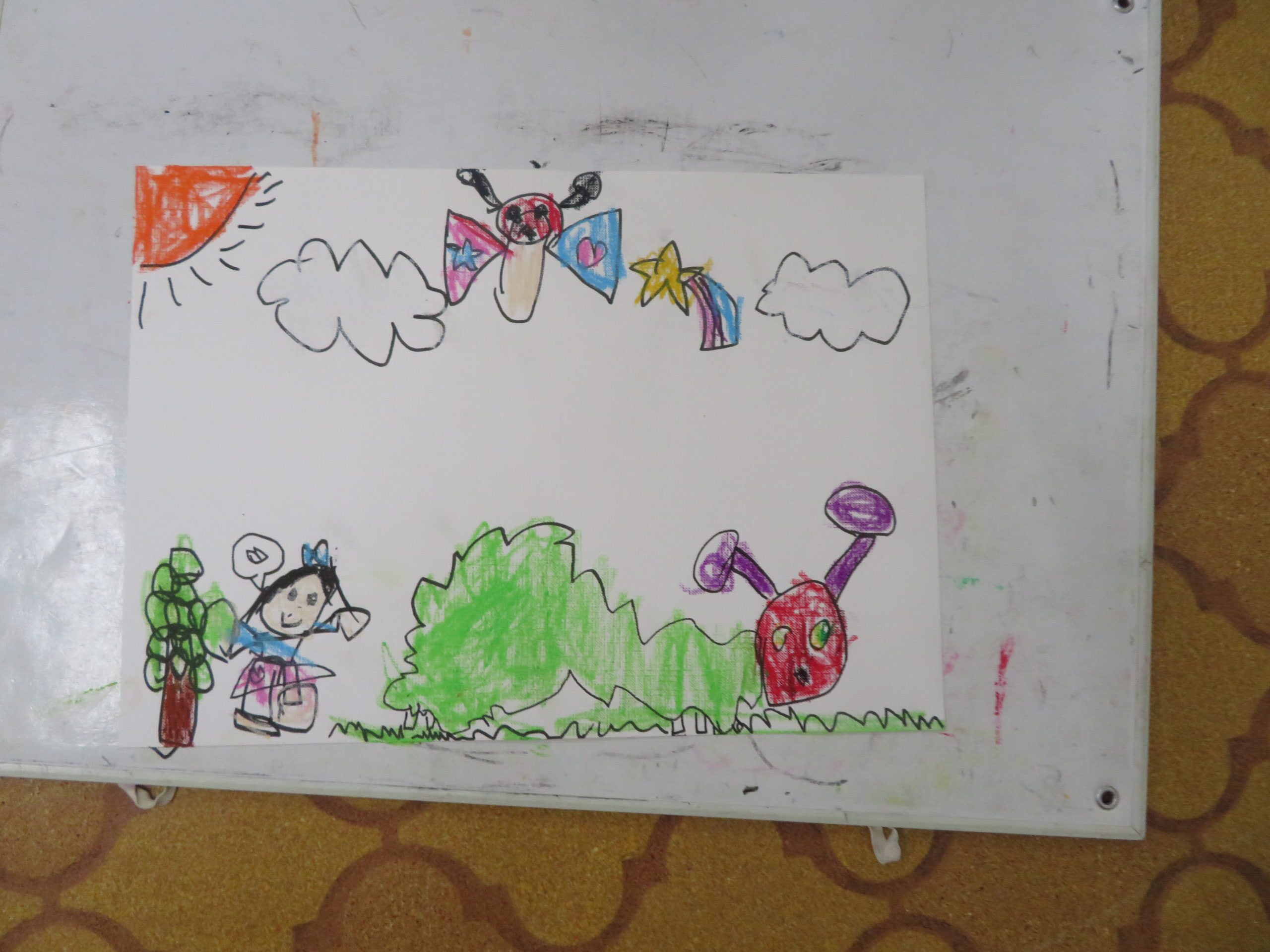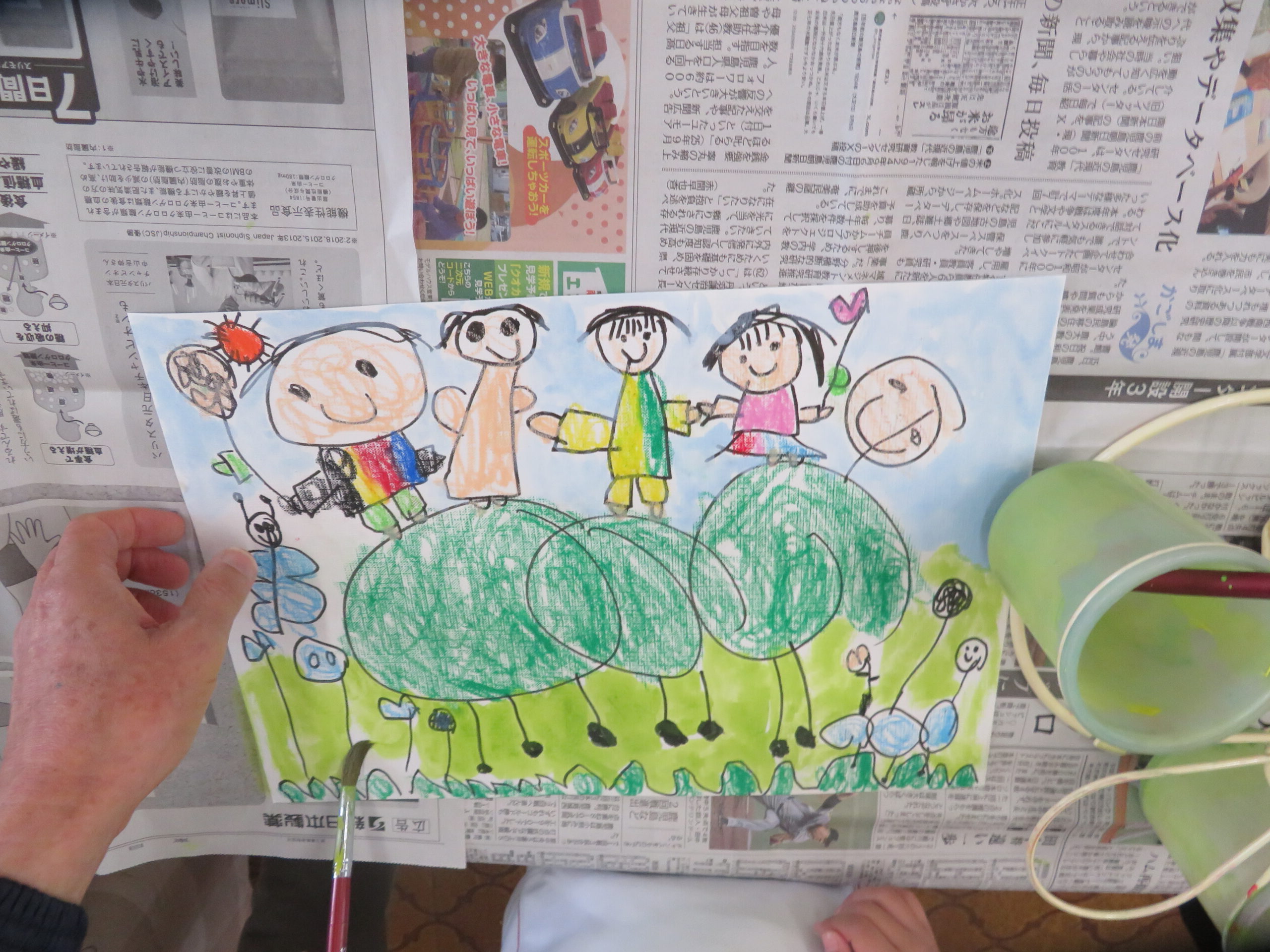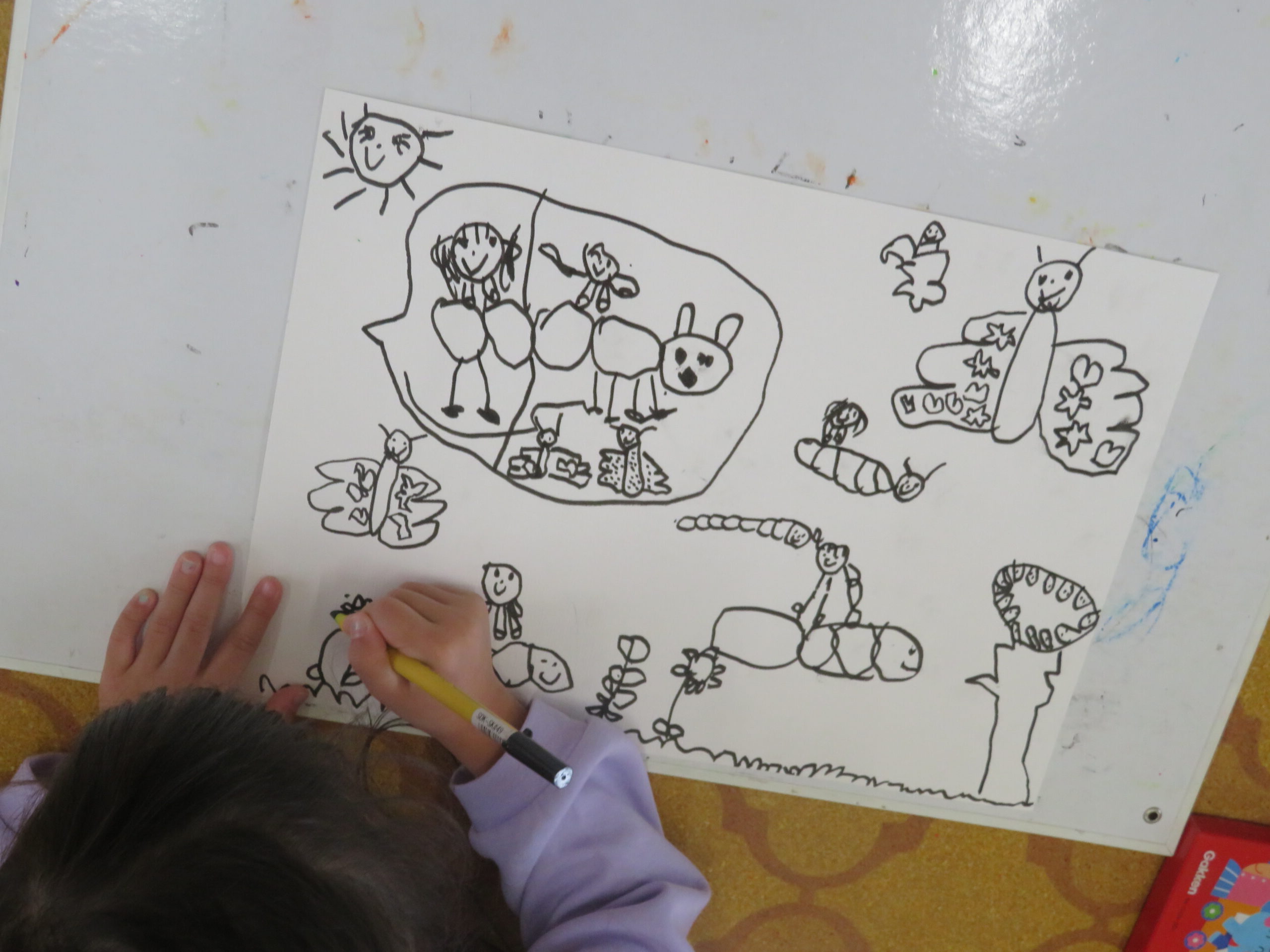 第85回全国教育美術展鹿児島県地区審査に応募しました。おめでとうございます。その中で次の子どもたちが入選し、全国審査に応募します。特選 年長 太田陽翔、年中 川崎葵斗 、入選 年長 上谷洸太、福田智也、中山 尚、年中 七田ちづる、内村羽桜 。写真は、今日の年中さんの絵画指導の様子です。
