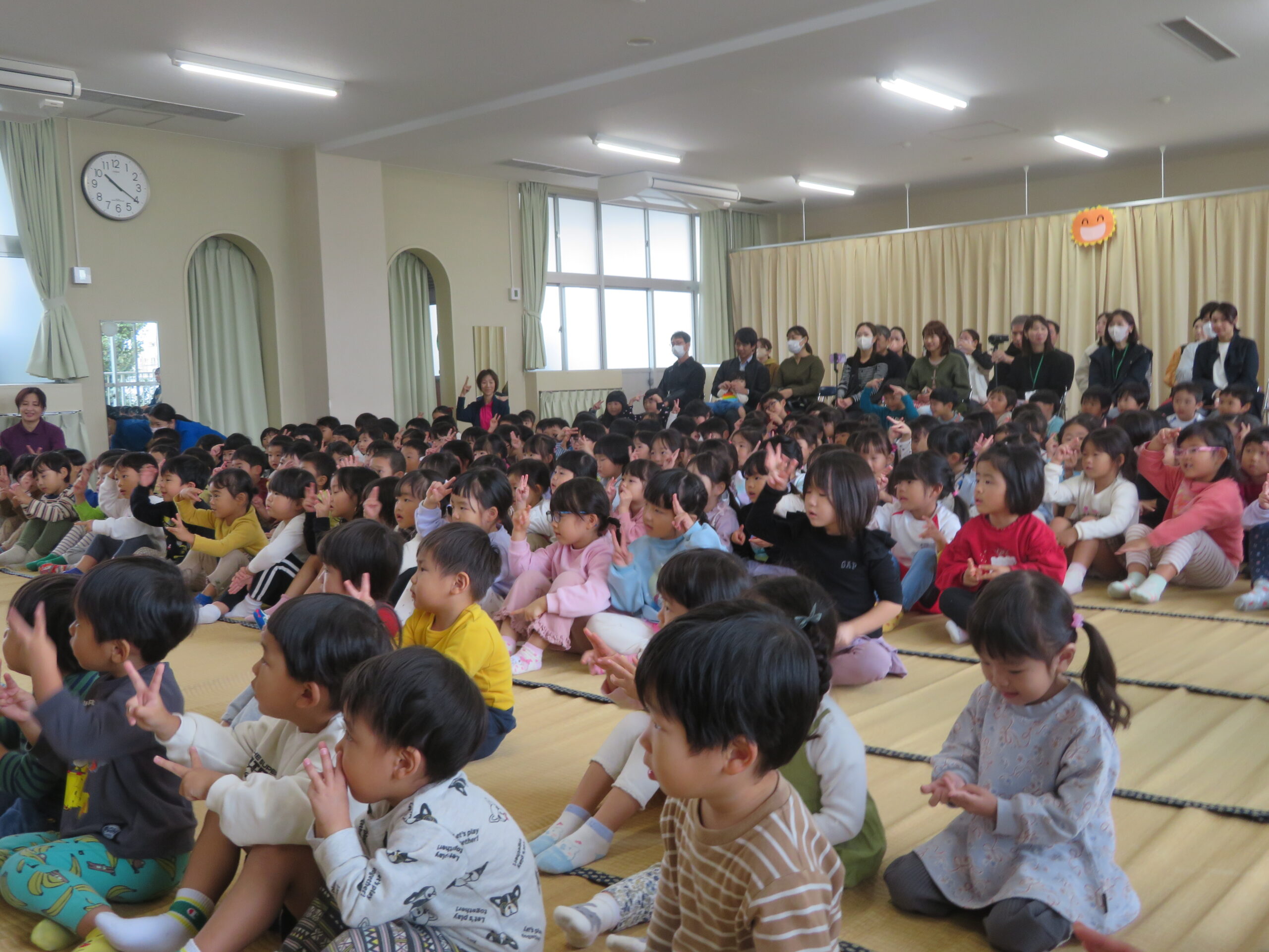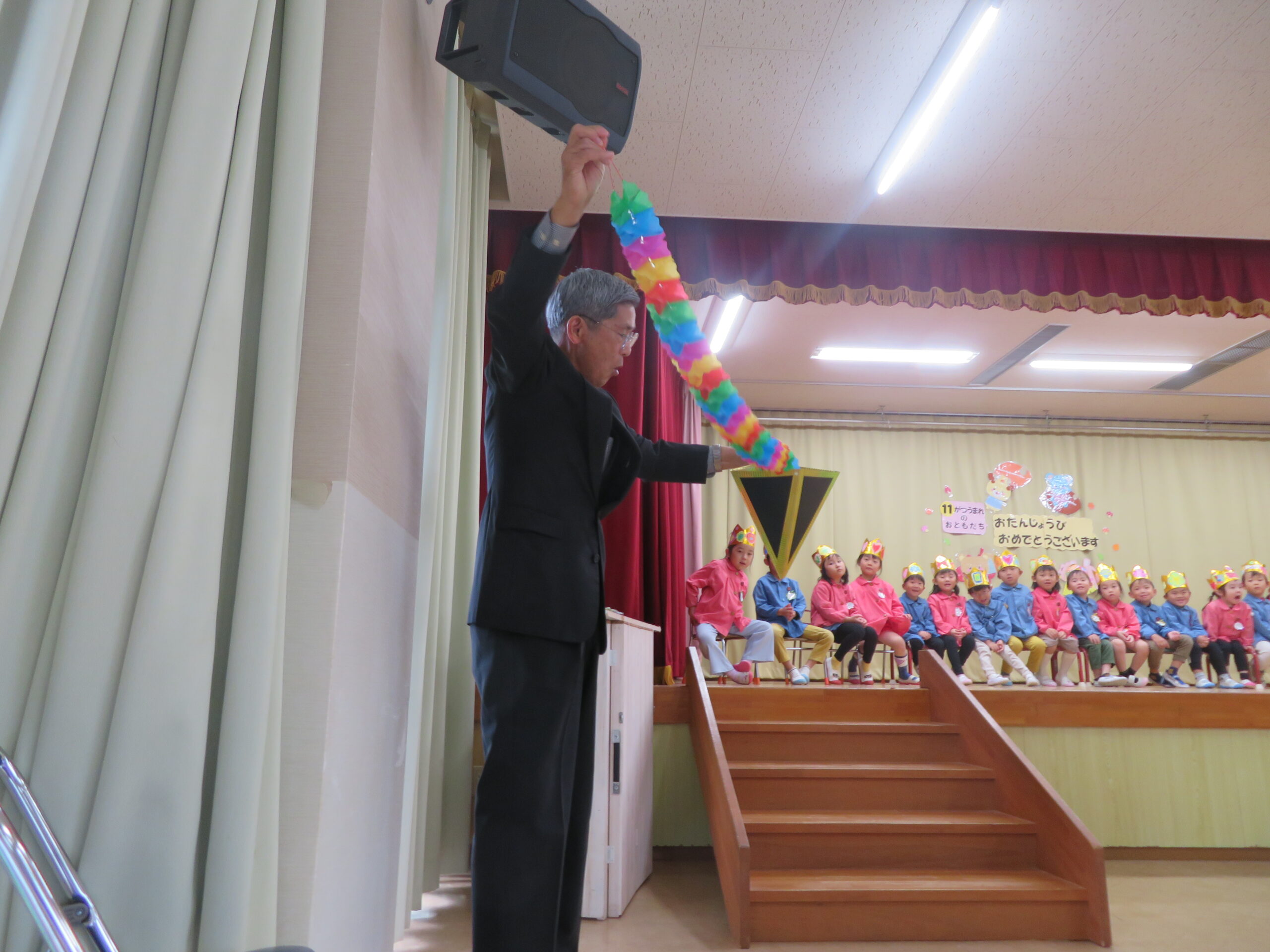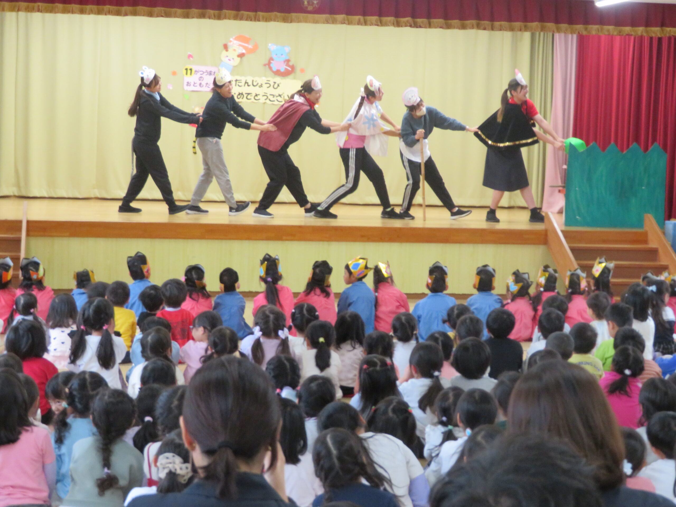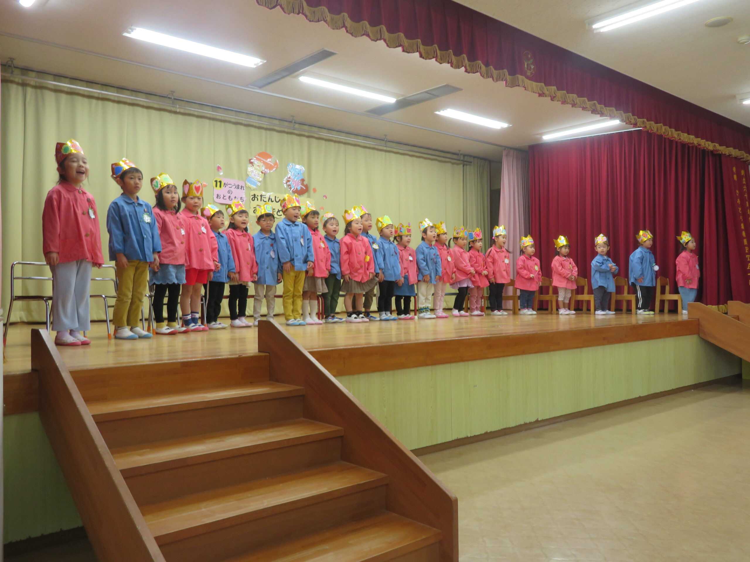 11月12日(水),11月生まれの誕生会がありました。一つ大きくなって、更に自分のことを紹介することが上手になっていました。ちゅうりっぷ組さんのたんじょう者も舞台に堂々と立って紹介できました。お誕生日おめでとうございます。