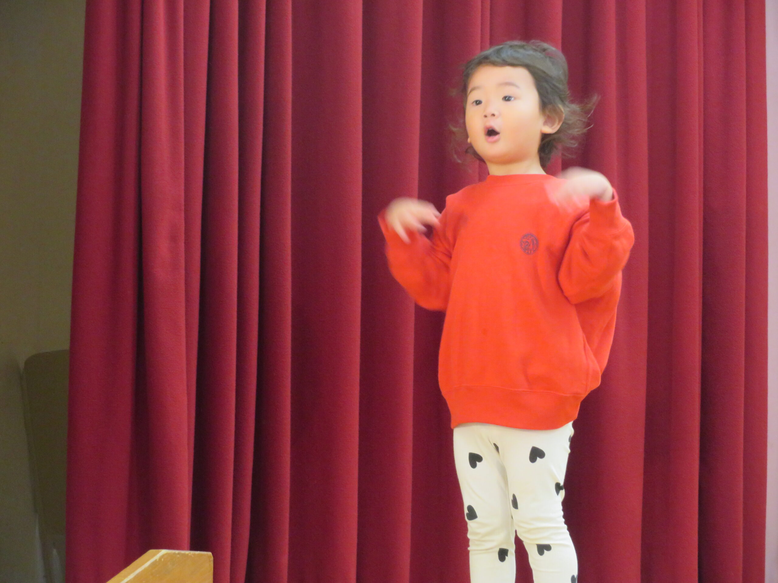 11月17日(月)、年少々・ちゅうりっぷ組1組・2組さんの発表会の練習の様子です。最後は自分なりのポーズでアピールします。本番は12月7日(日)です。