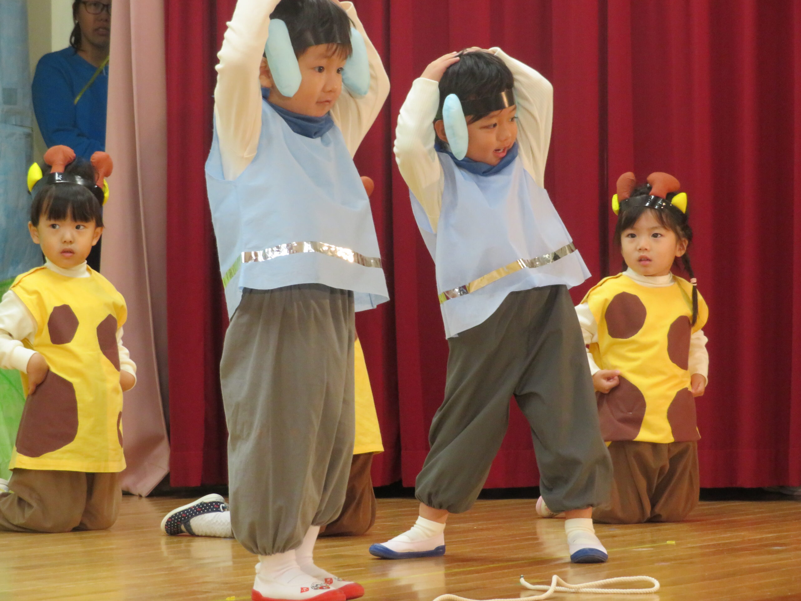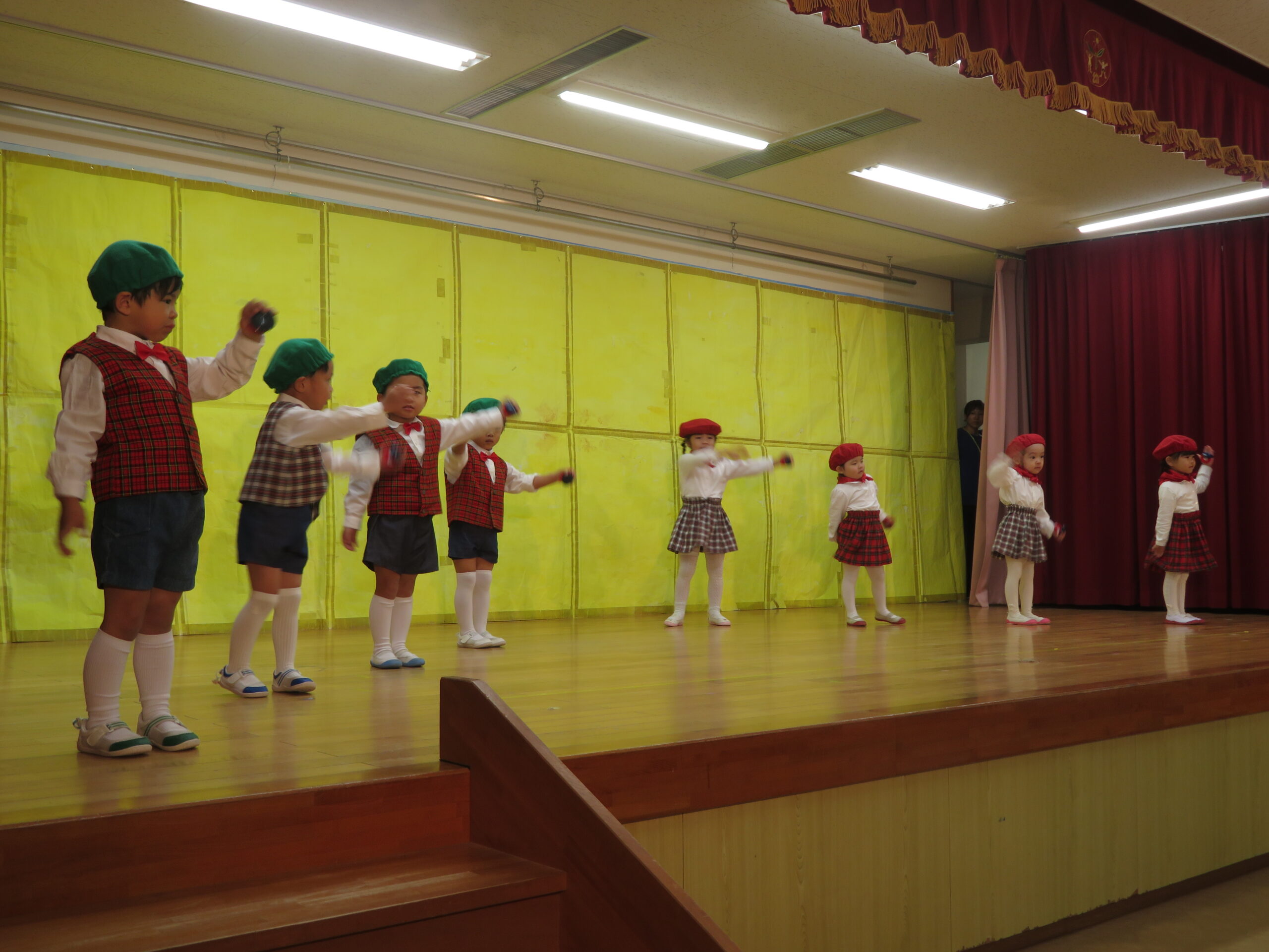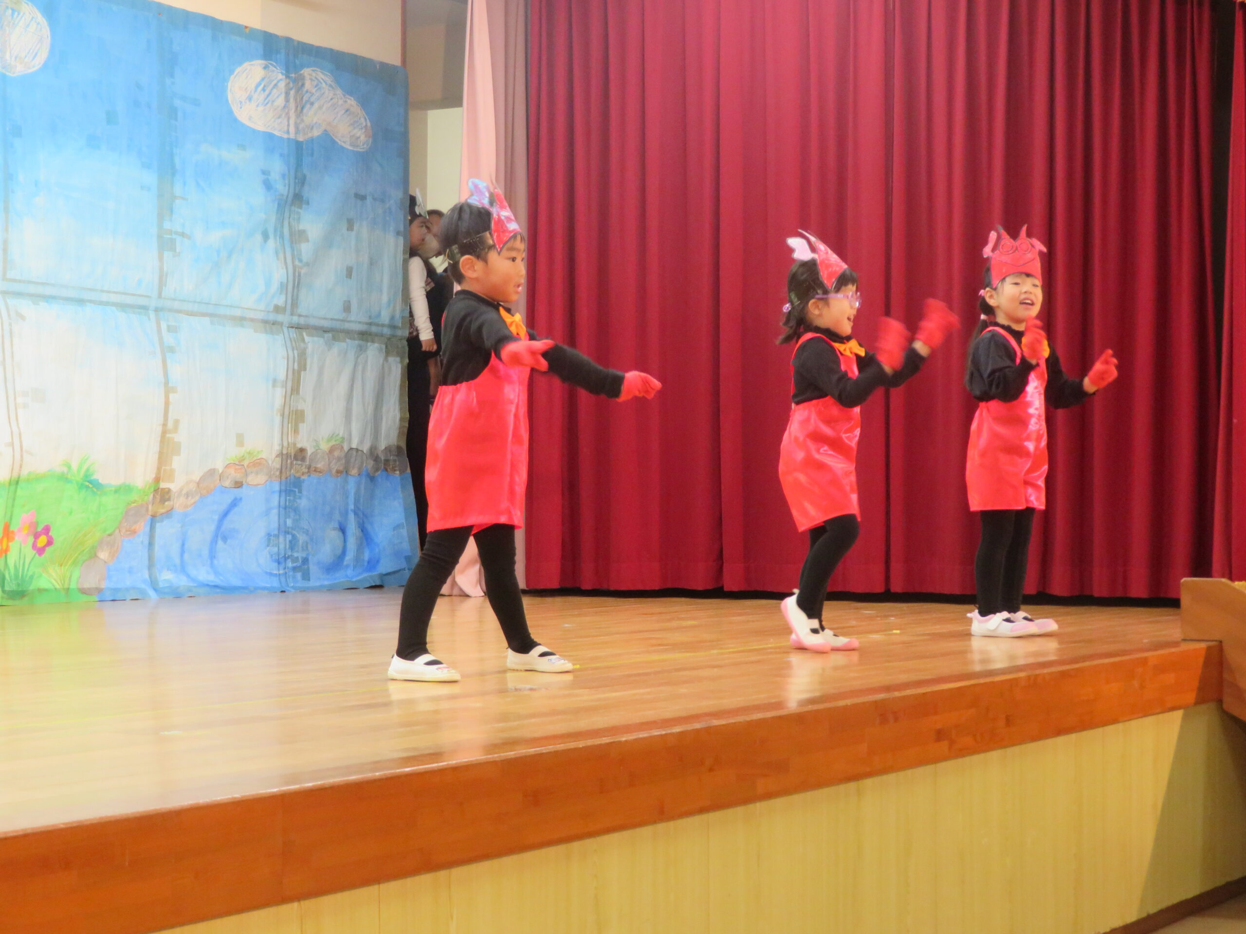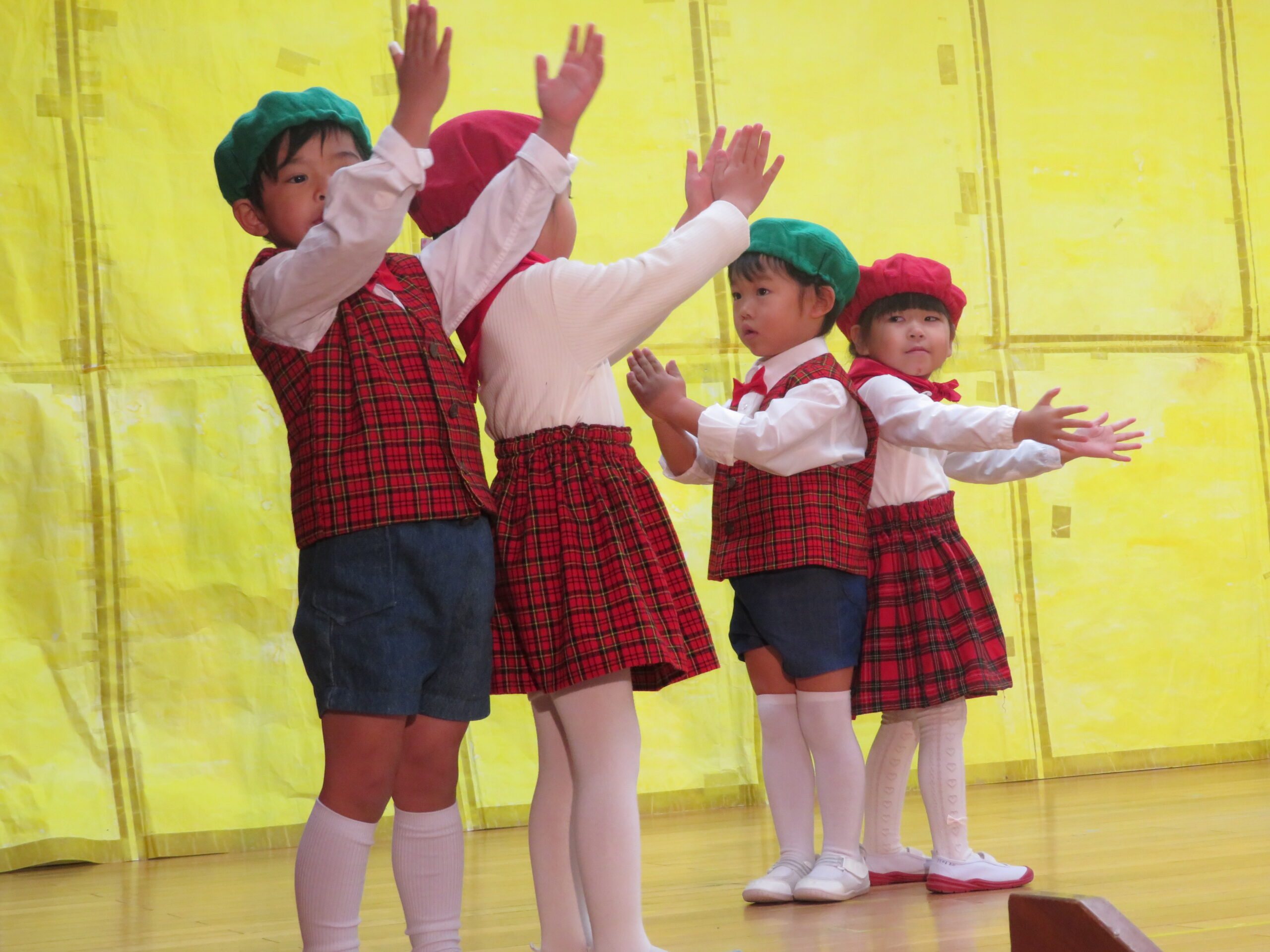 11月20日(木)、年少さんの発表会総合練習がありました。最初はさくら組さんが、遊戯、リズム劇、合唱を発表しました。続いて、すみれ組さんも遊戯、リズム劇、合唱を発表しました。とても元気よく発表できました。他の学年から、たくさんの拍手を頂きました。本番は11月30日(日)です。