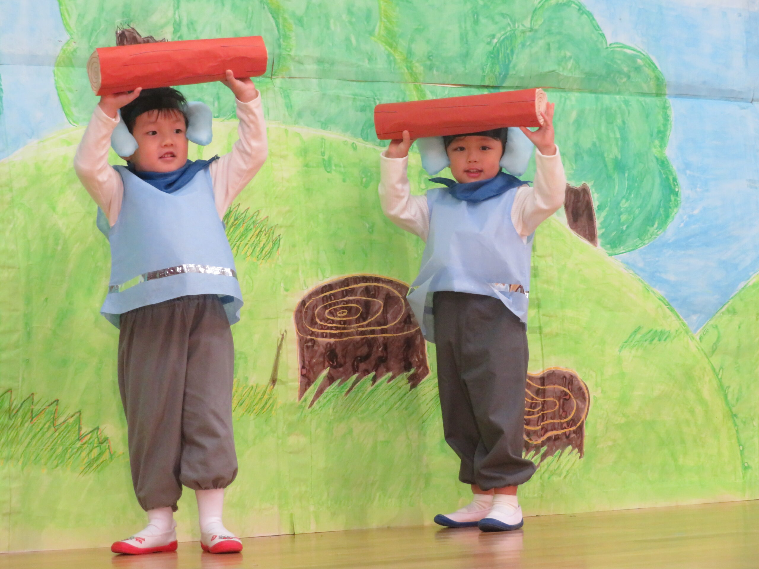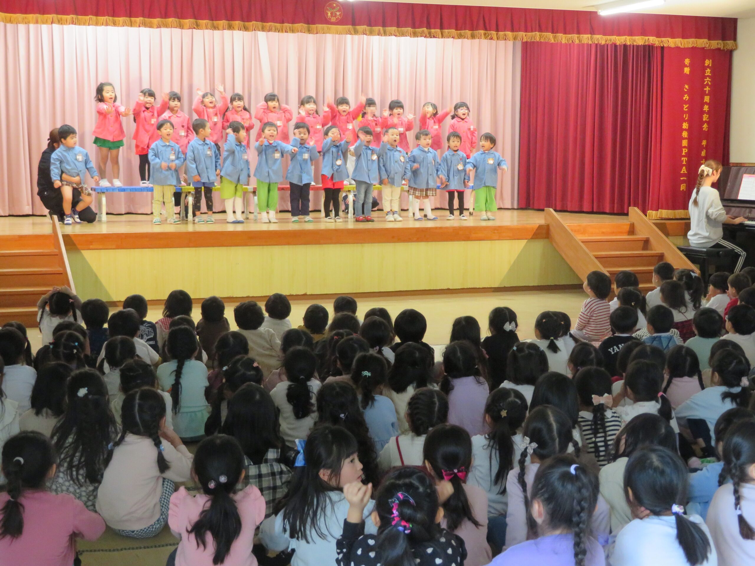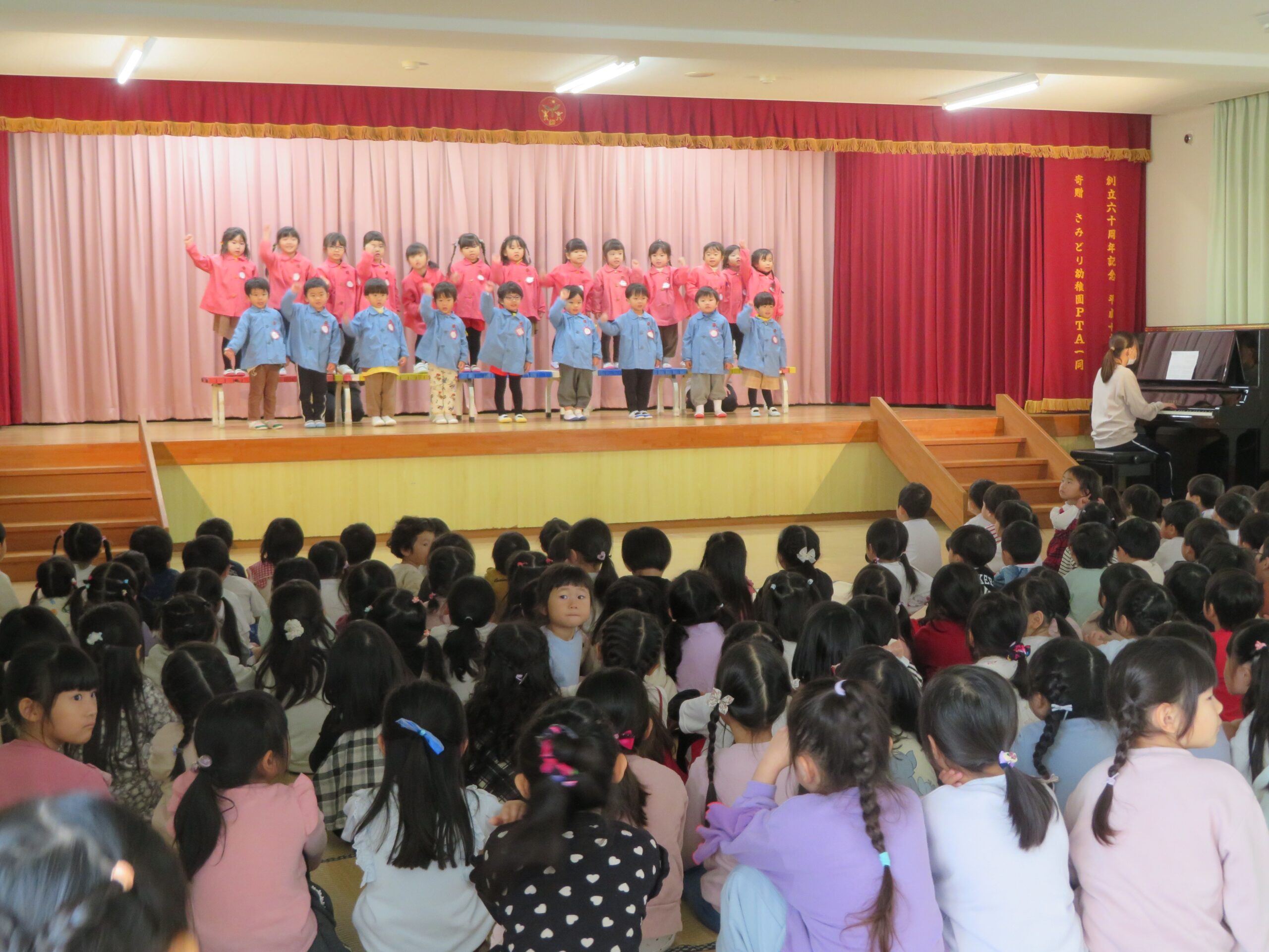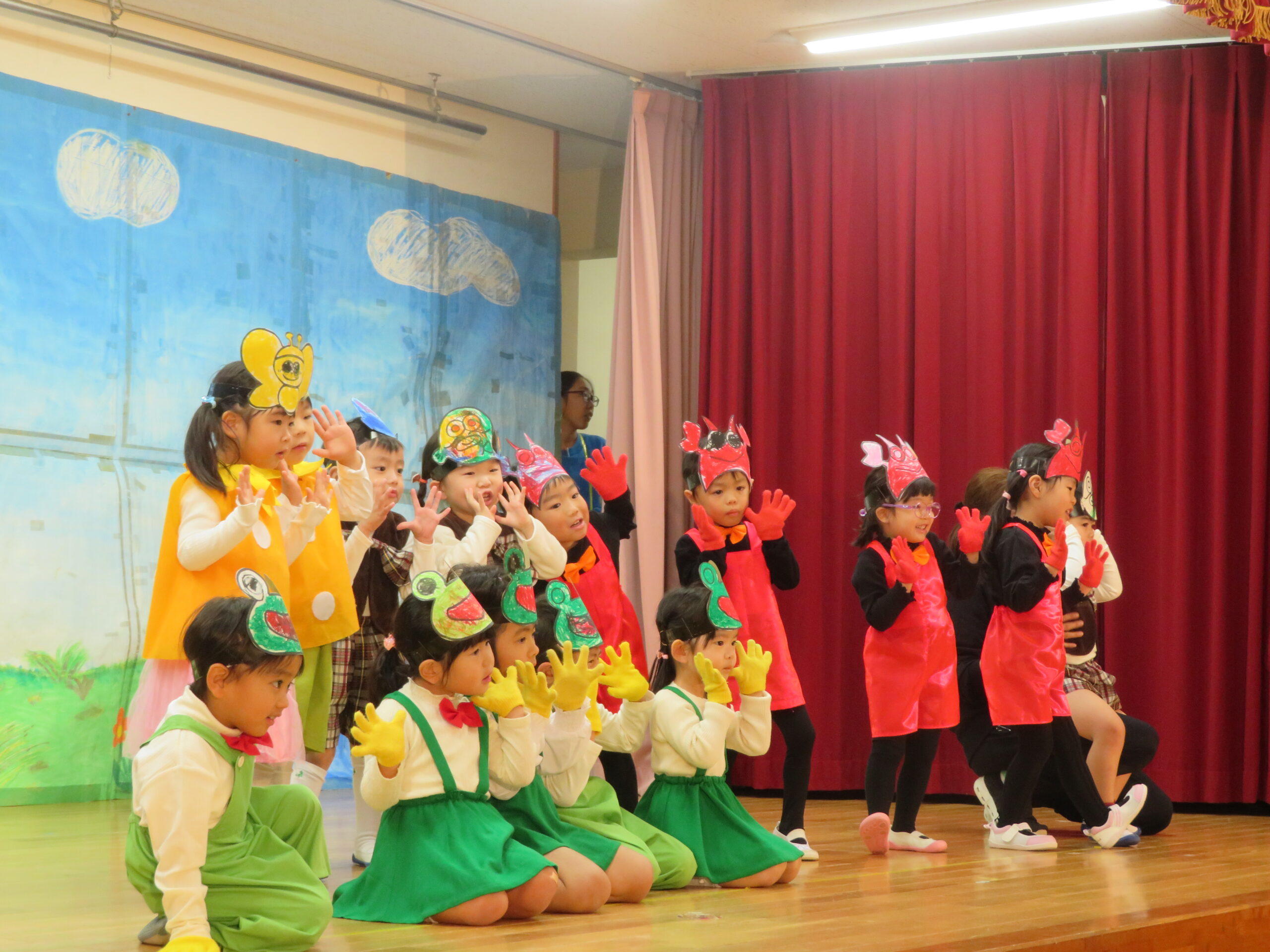 11月20日(木)、年少さんの発表会総合練習がありました。最初はさくら組さんが、遊戯、リズム劇、合唱を発表しました。続いて、すみれ組さんも遊戯、リズム劇、合唱を発表しました。とても元気よく発表できました。他の学年から、たくさんの拍手を頂きました。本番は11月30日(日)です。
