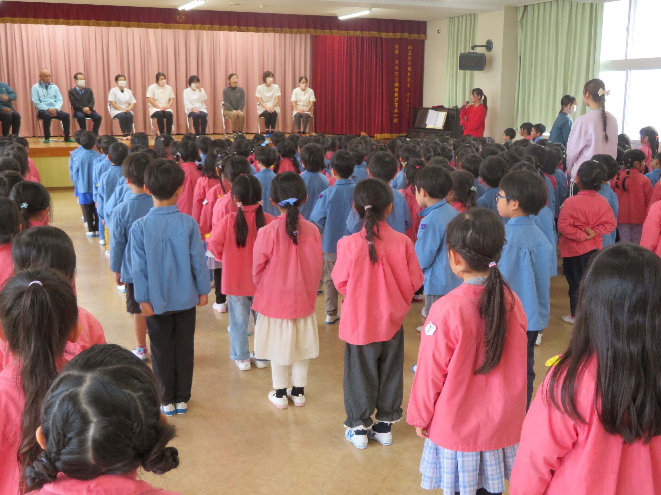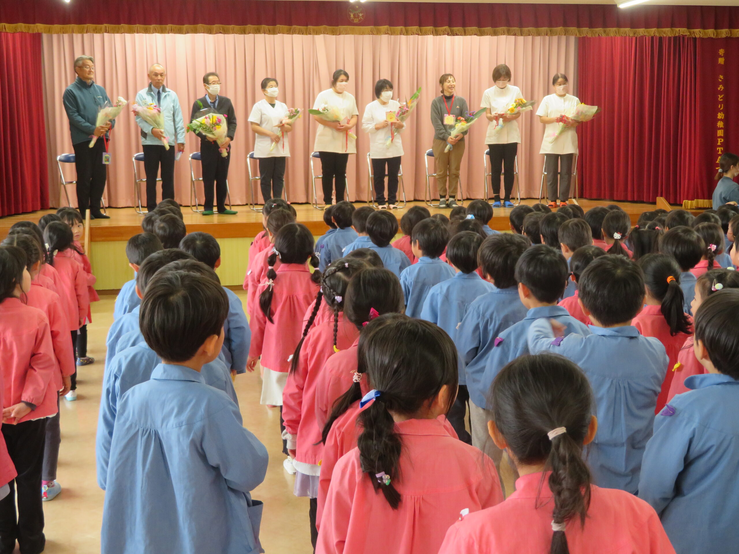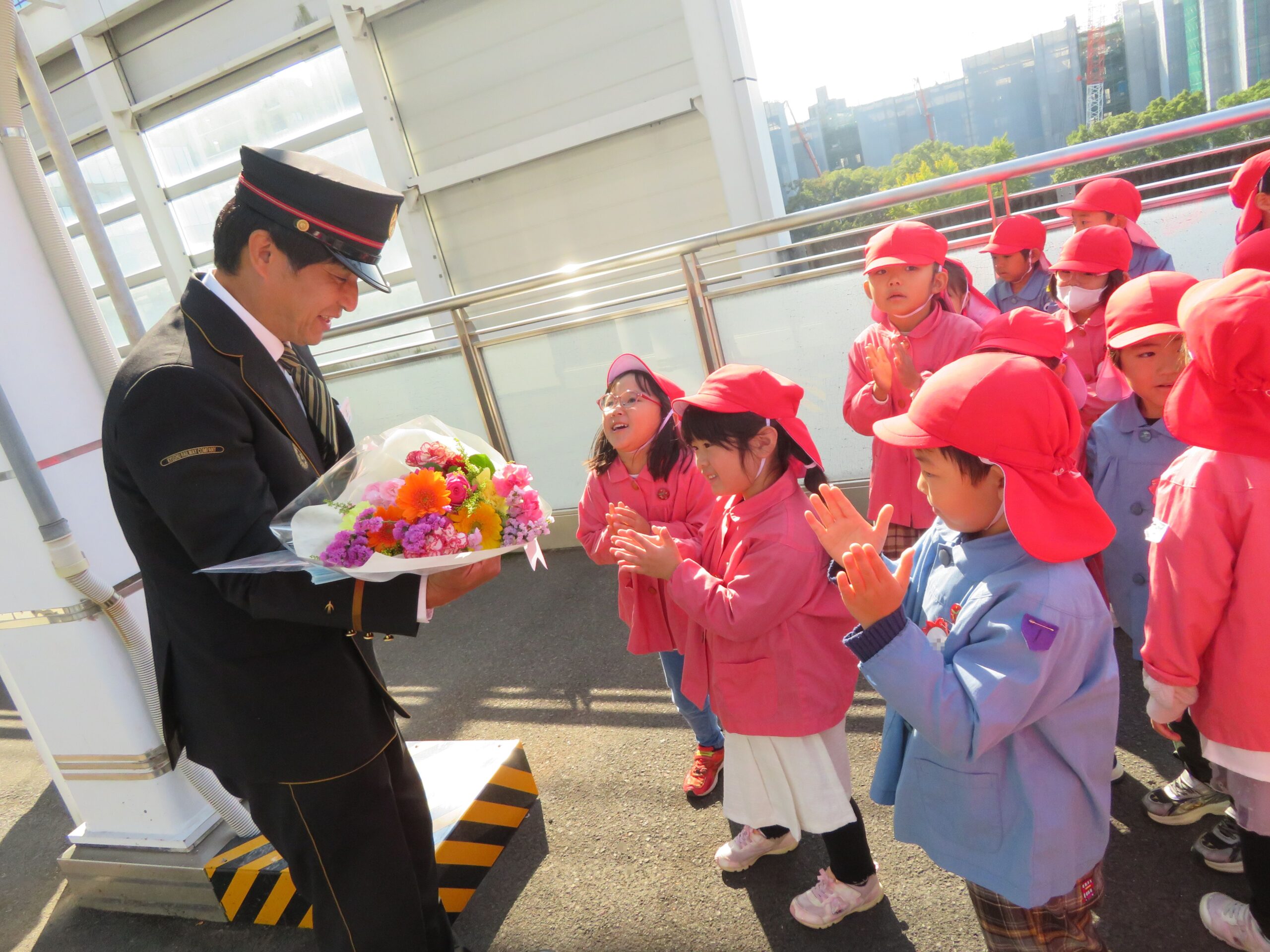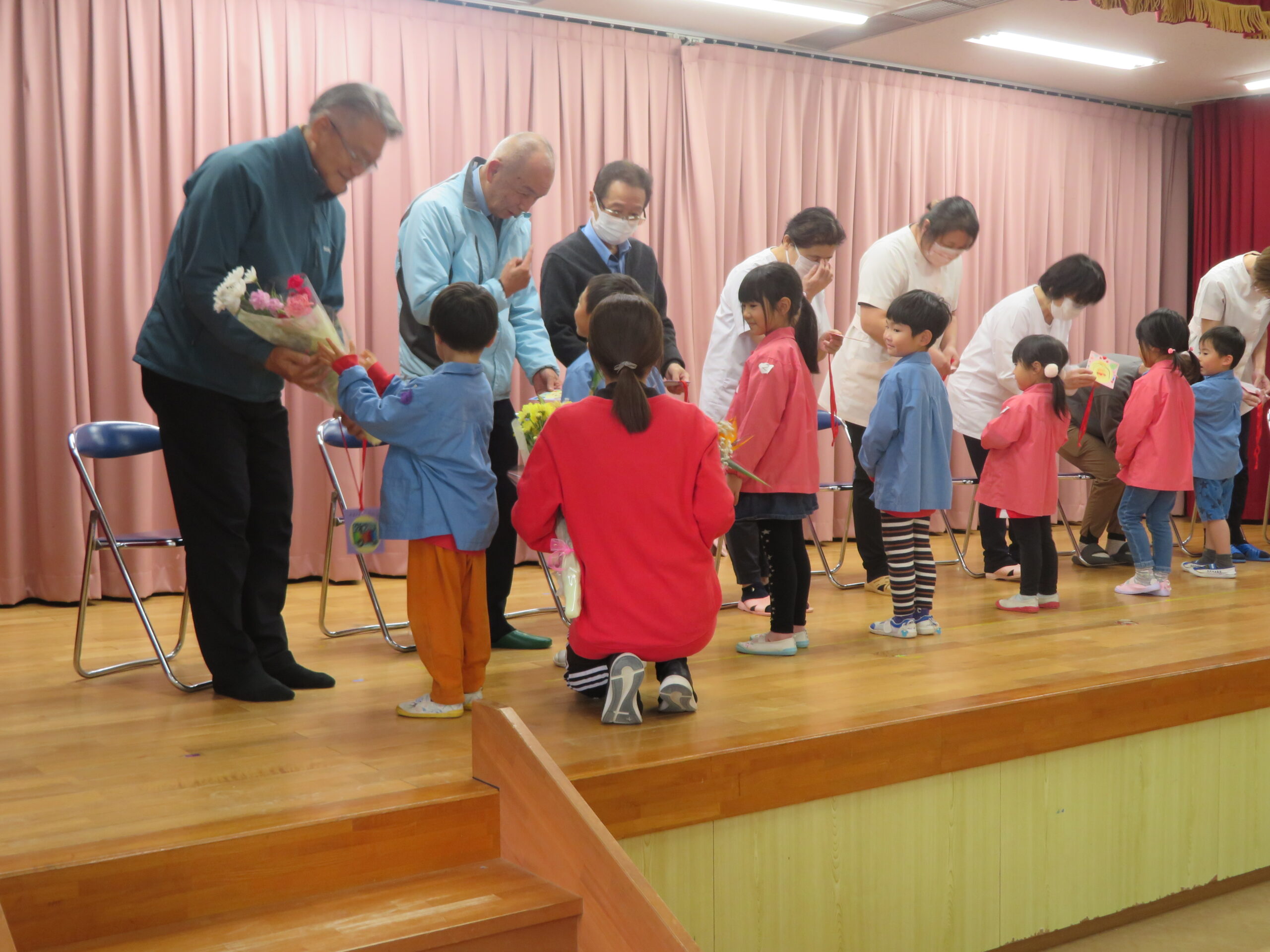 11月21日(金)勤労感謝の集会が開かれました。自分の生活に関係の深い身近人々に関心を持ち、働く人への感謝の気持ちを持つために実施します。今日の訪問先は、西消防署、鹿児島中央駅、中央郵便局、竹之下歯科などです。園内では、幼稚園でお世話してくださる給食の方々や栄養士さん、バスの運転手さんや預かりの先生方に、感謝の気持ちを込めてプレゼントと花束を渡します。お花の提供、ありがとうございました。