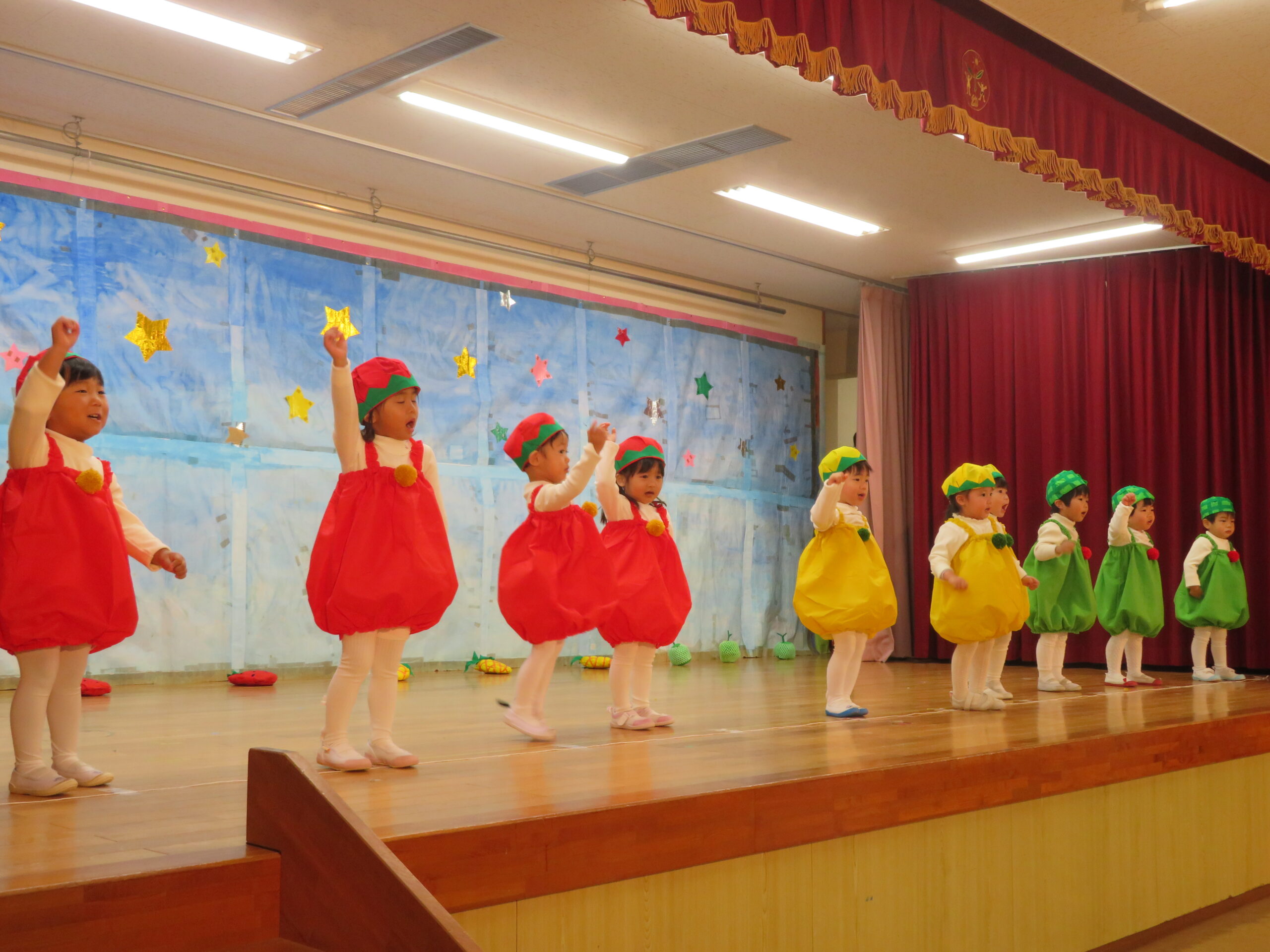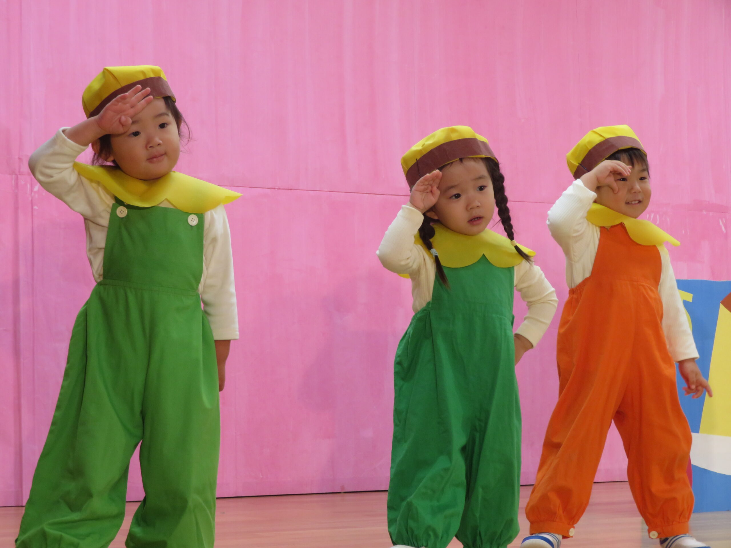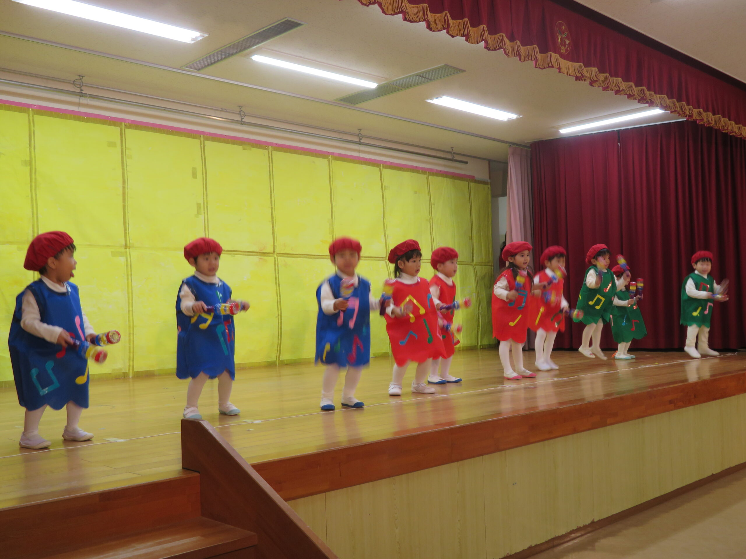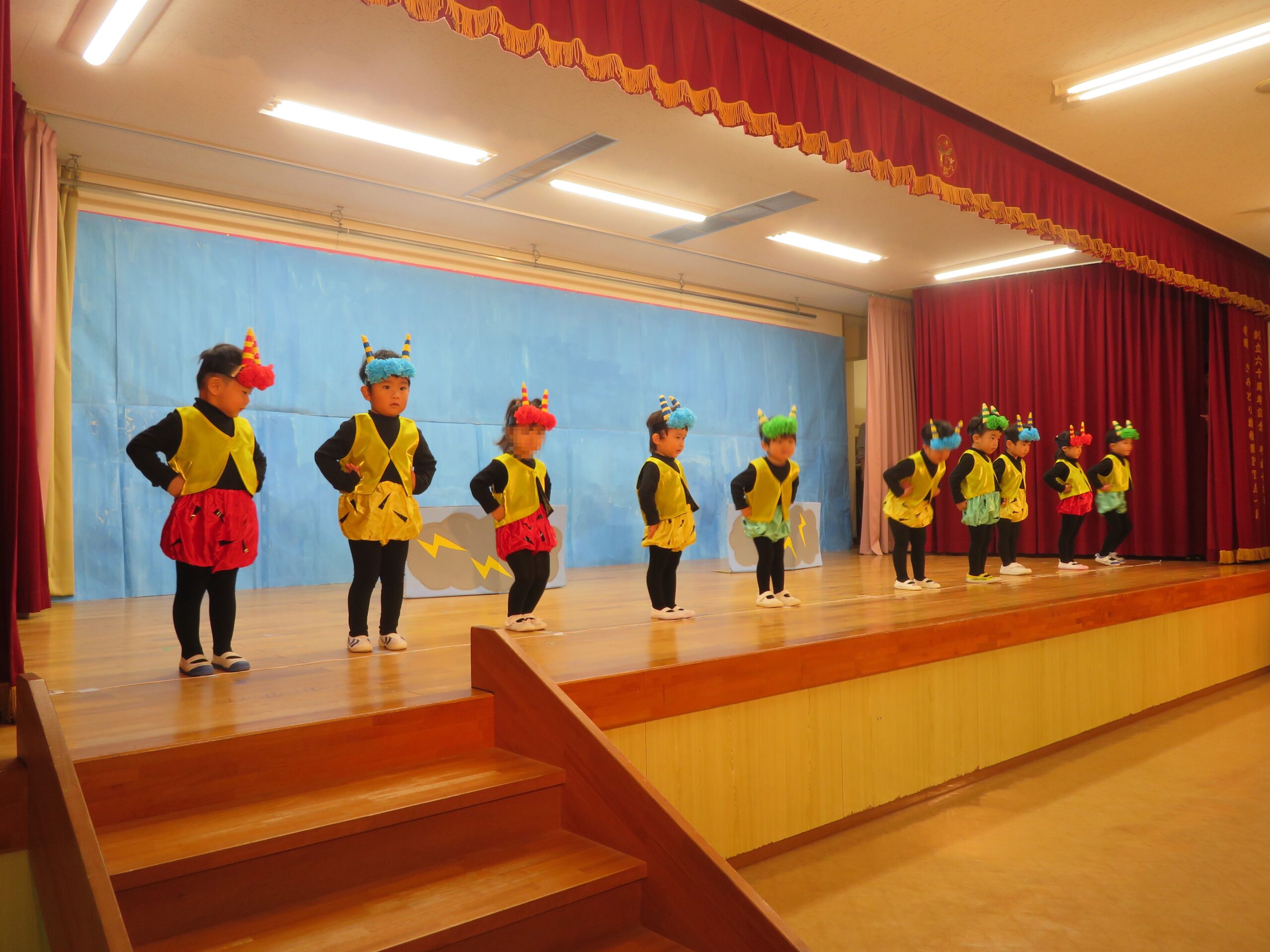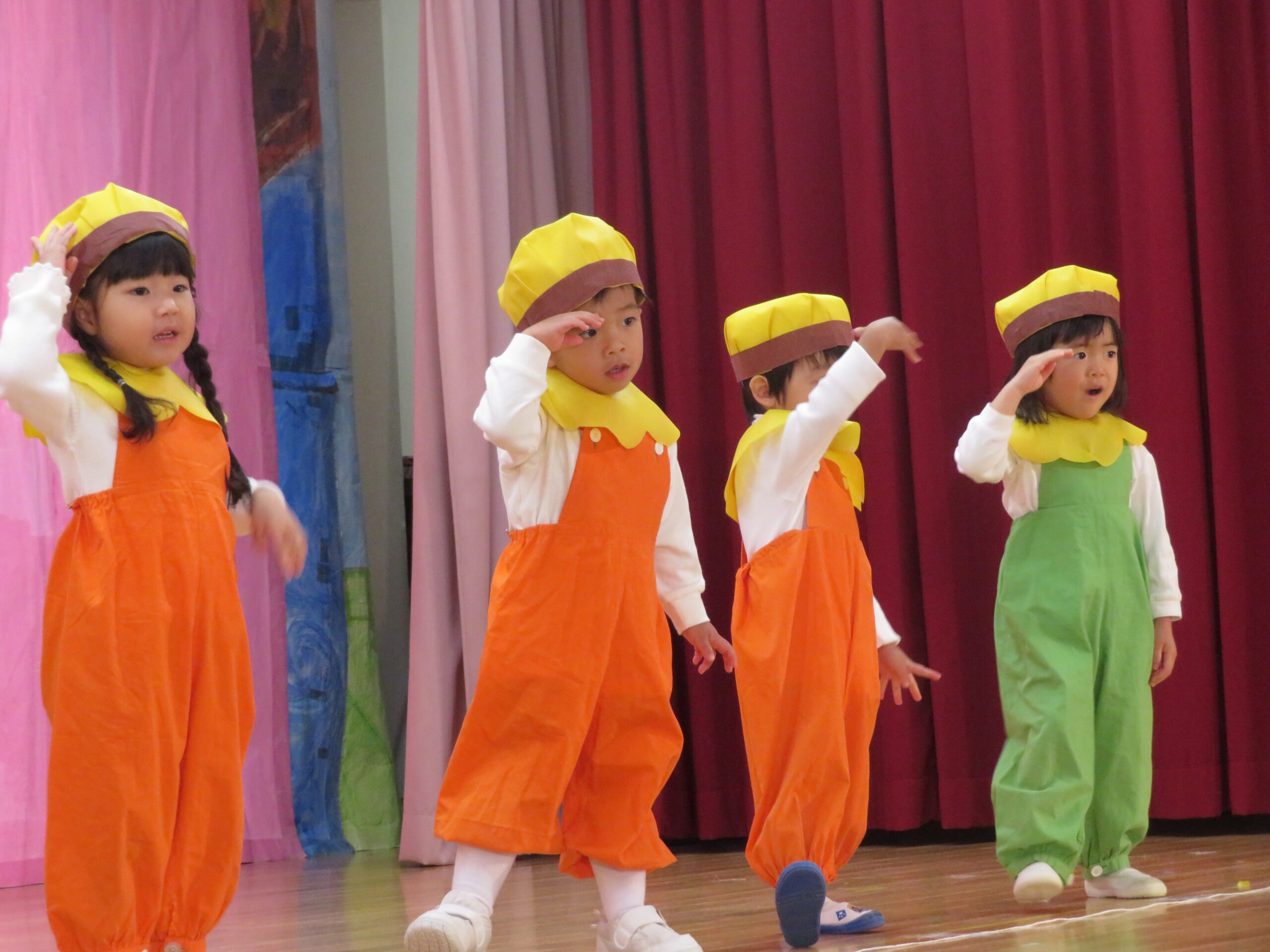 11月27日(木)、年少々・ちゅうりっぷ組さんの発表会総合練習がありました。最初はちゅうりっぷ1組さんが、遊戯、遊戯を発表しました。続いて、ちゅうりっぷ2組さんも遊戯、遊戯、最後に1組・2組みんなで合唱を発表しました。他の学年から、たくさんの拍手を頂きました。本番は12月7日(日)です。