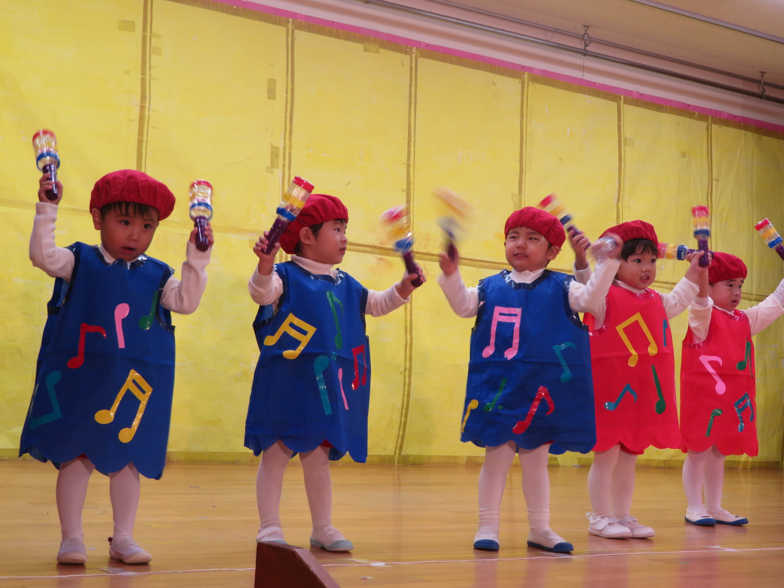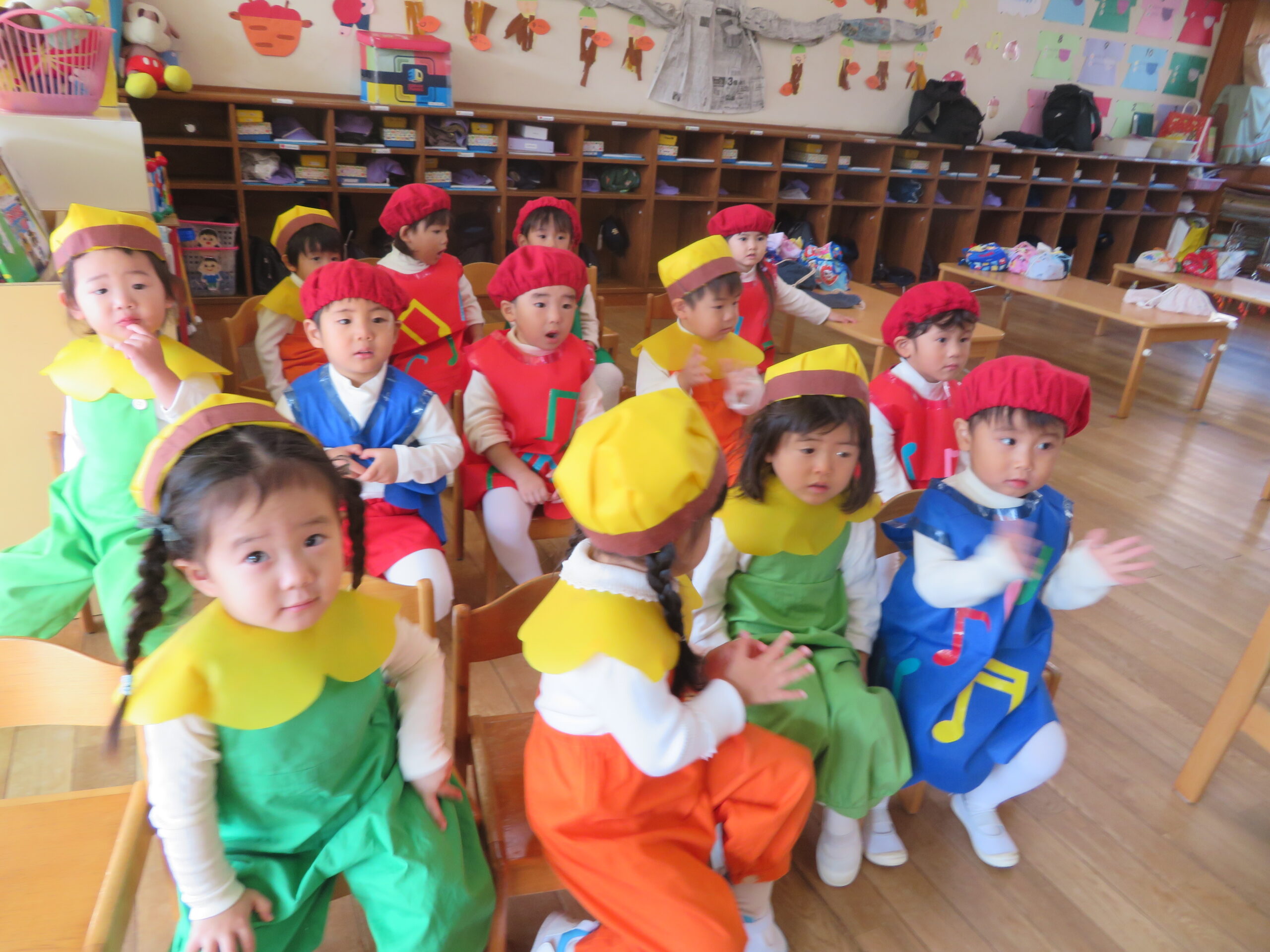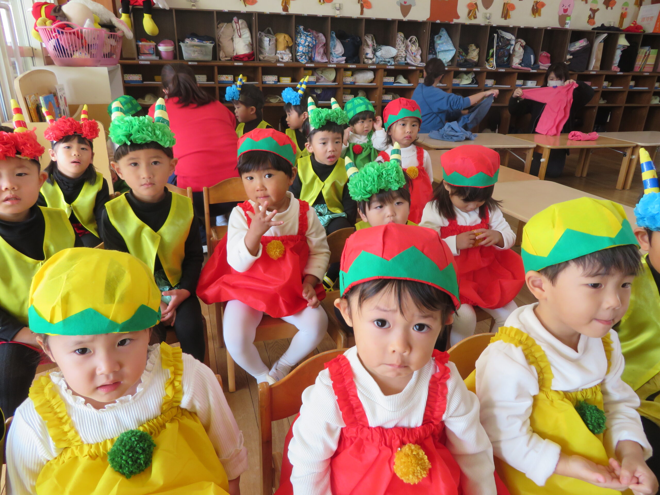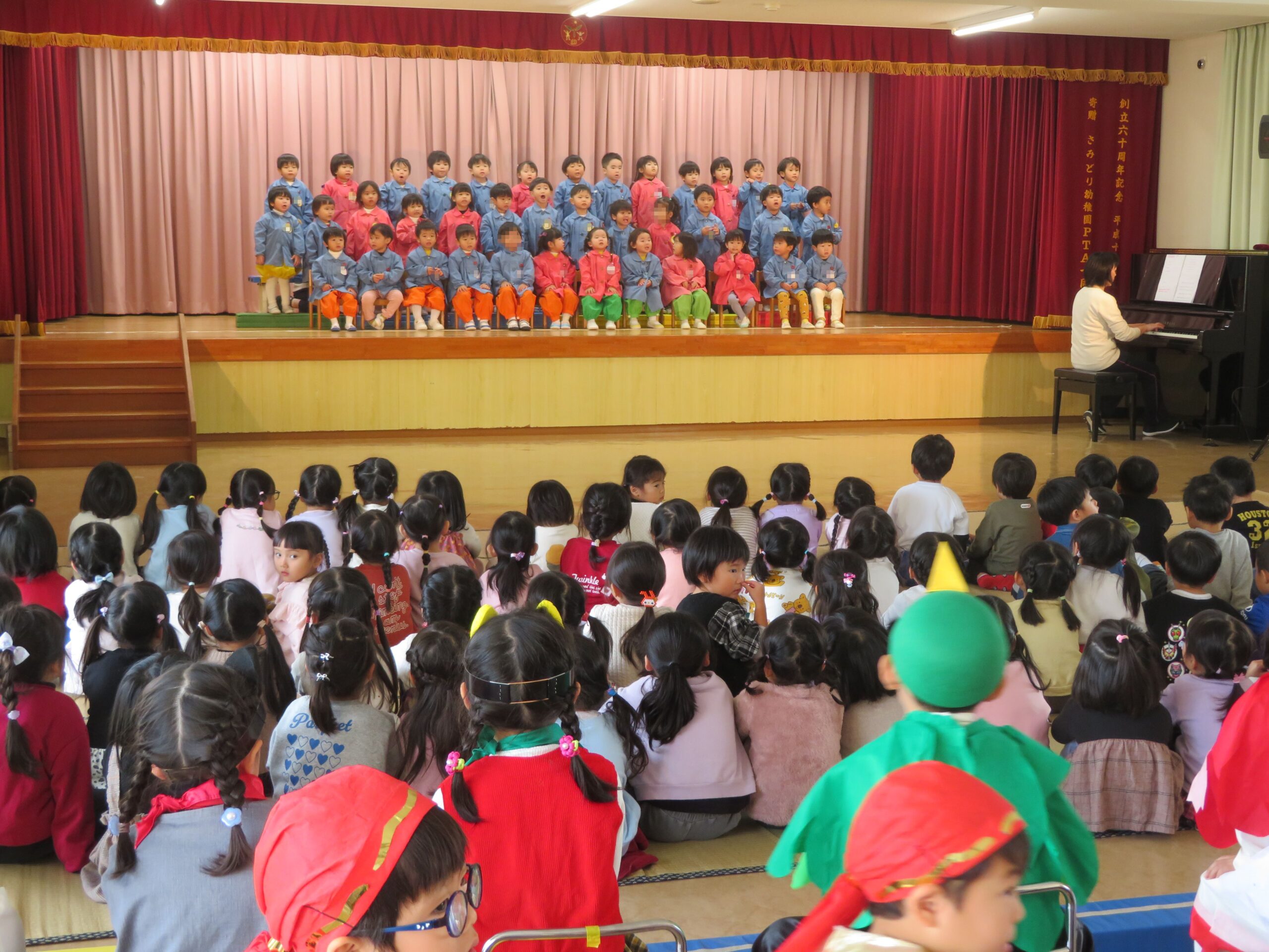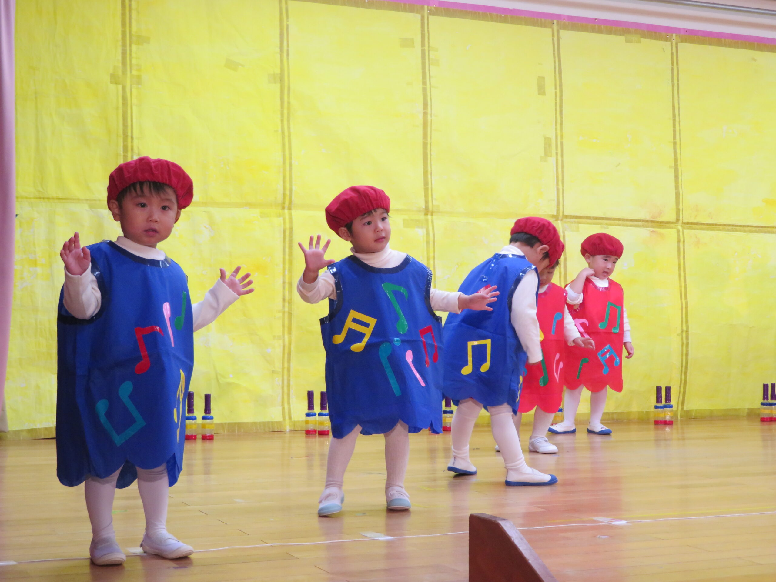 11月27日(木)、年少々・ちゅうりっぷ組さんの発表会総合練習がありました。最初はちゅうりっぷ1組さんが、遊戯、遊戯を発表しました。続いて、ちゅうりっぷ2組さんも遊戯、遊戯、最後に1組・2組みんなで合唱を発表しました。他の学年から、たくさんの拍手を頂きました。本番は12月7日(日)です。