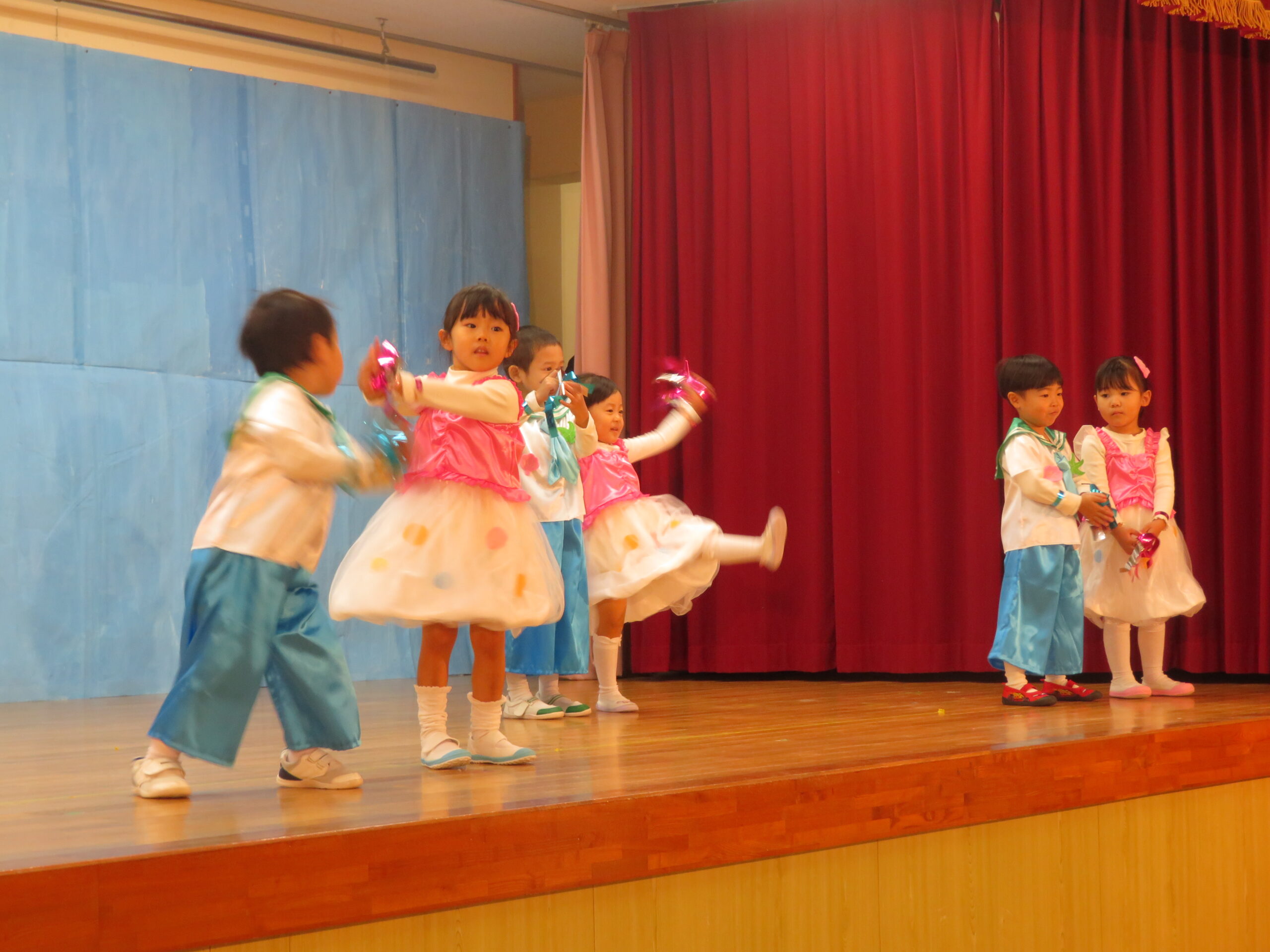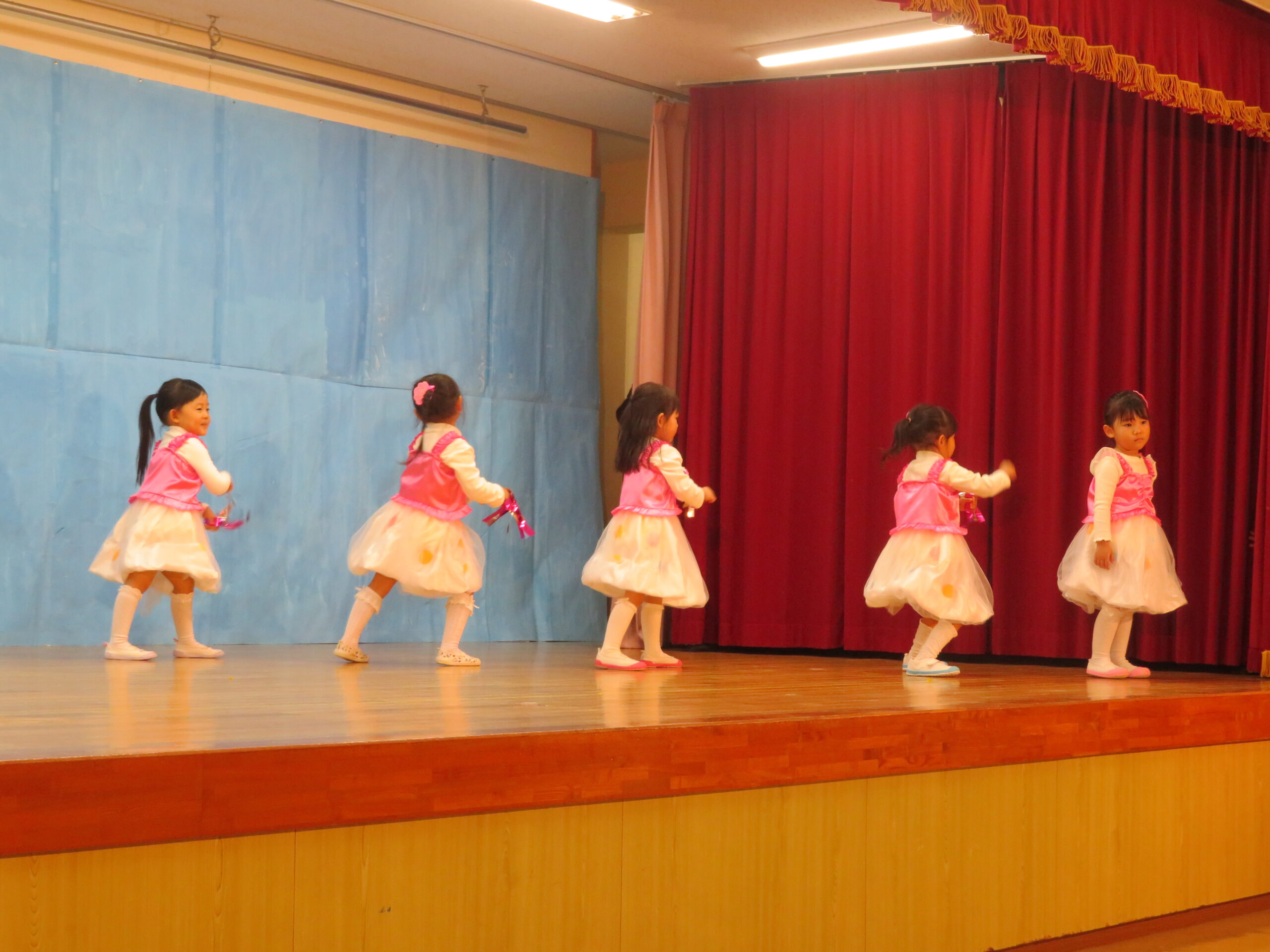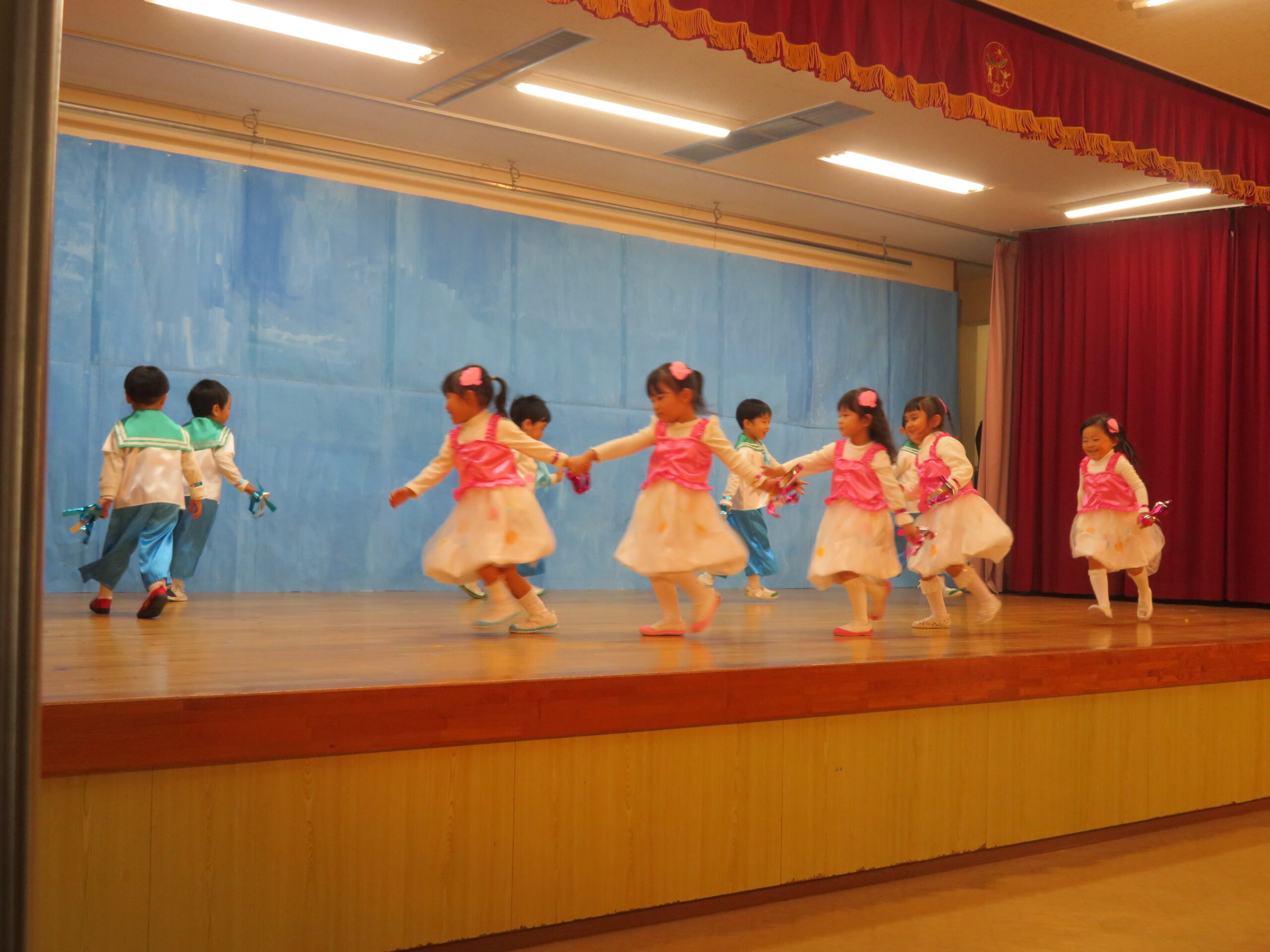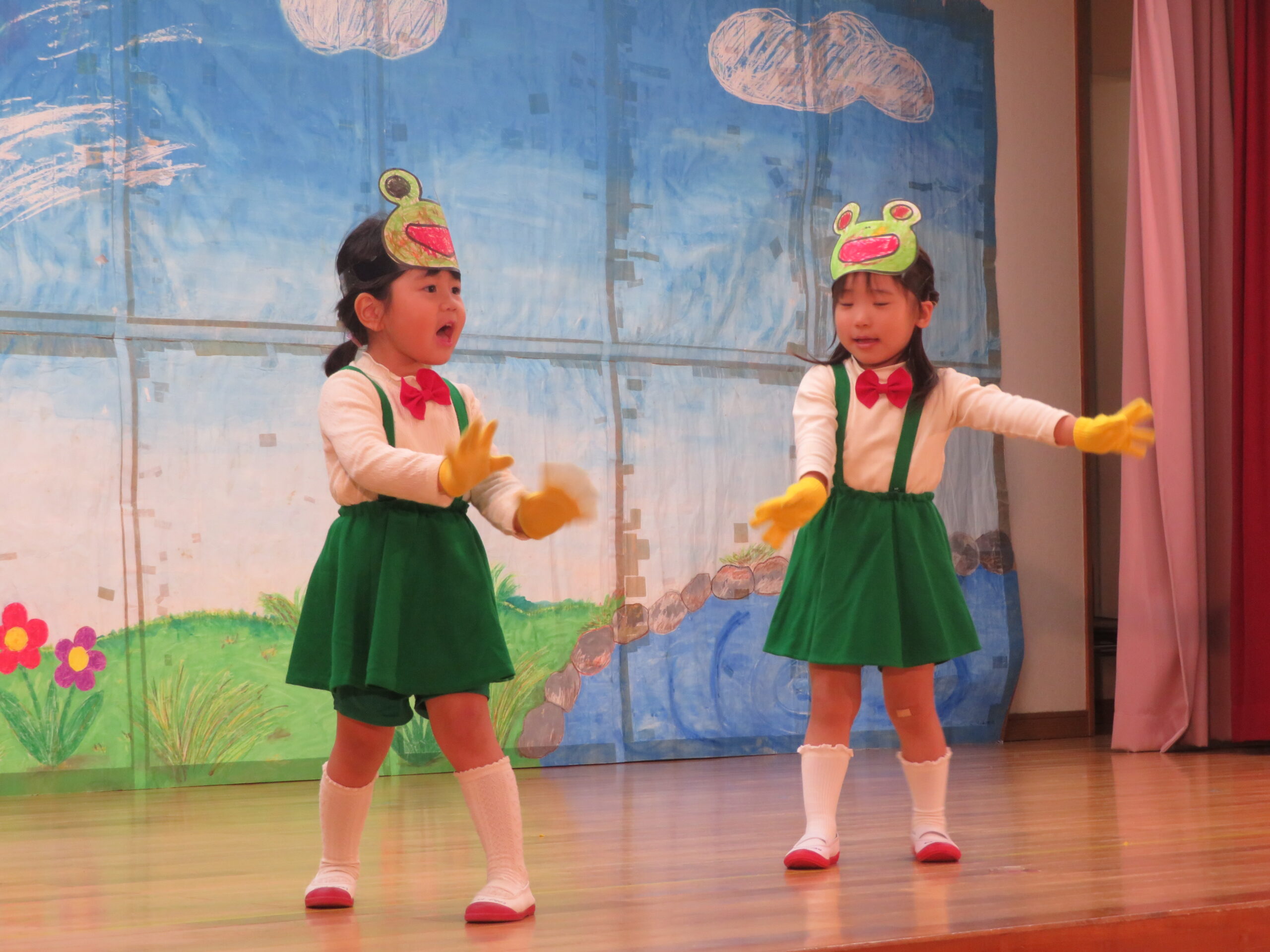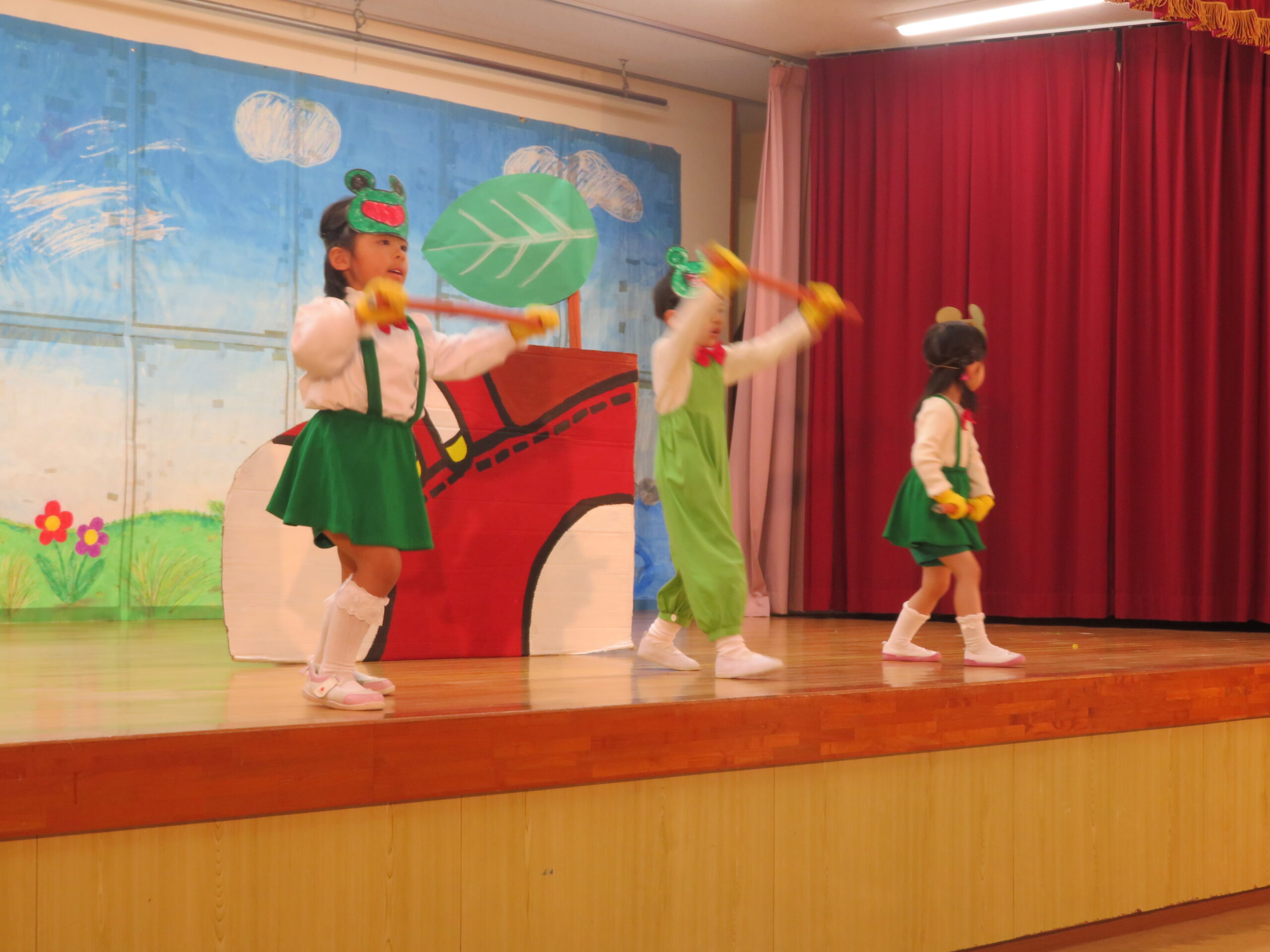 11月30日(日)、年少・すみれ組の発表会がありました。遊戯「アンダー・ザ・シー」、リズム劇「10ぴきのかえる」合唱「どんな色が好き」などを発表しました。観客の皆様からたくさんの温かい拍手をいただきました。
