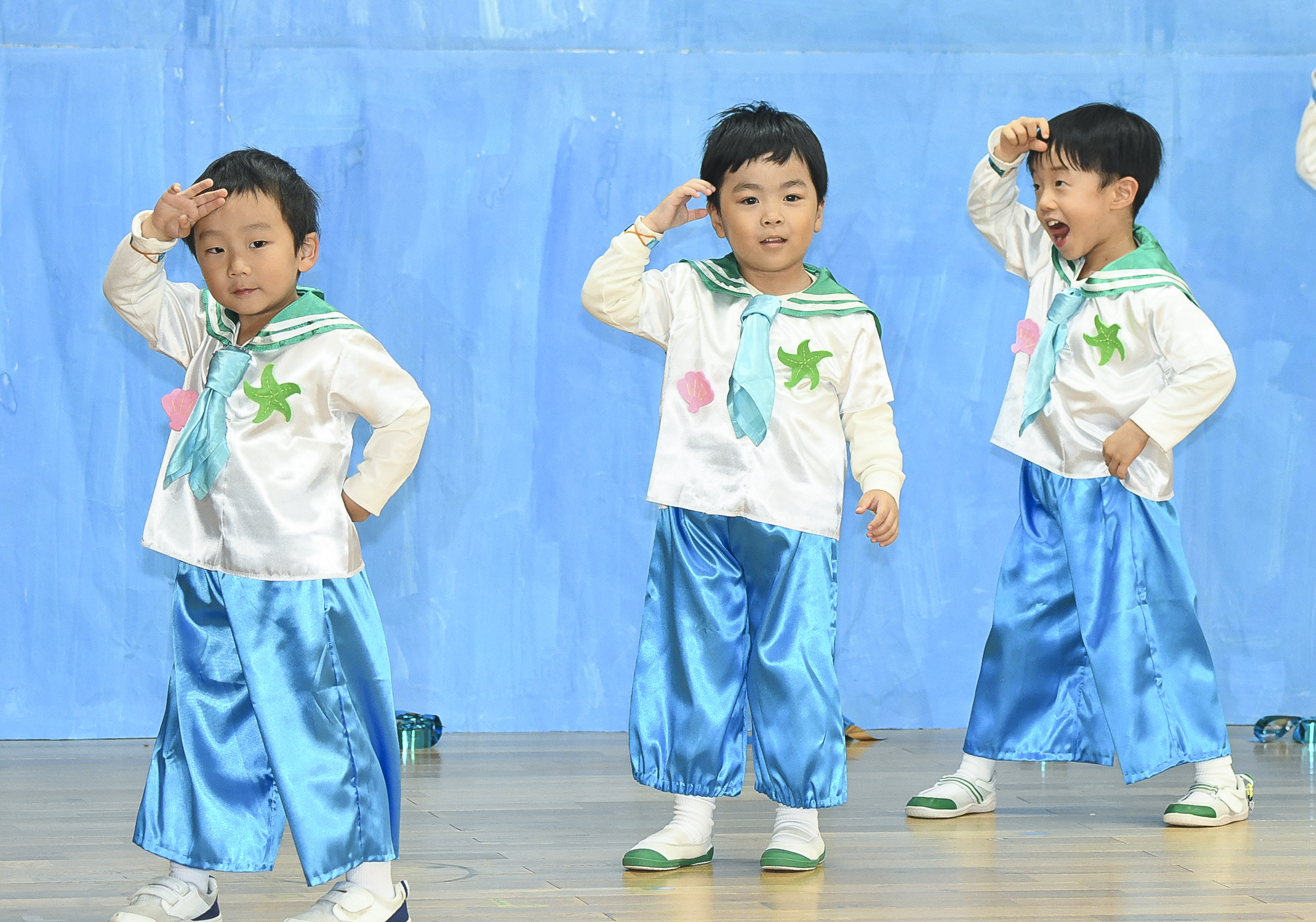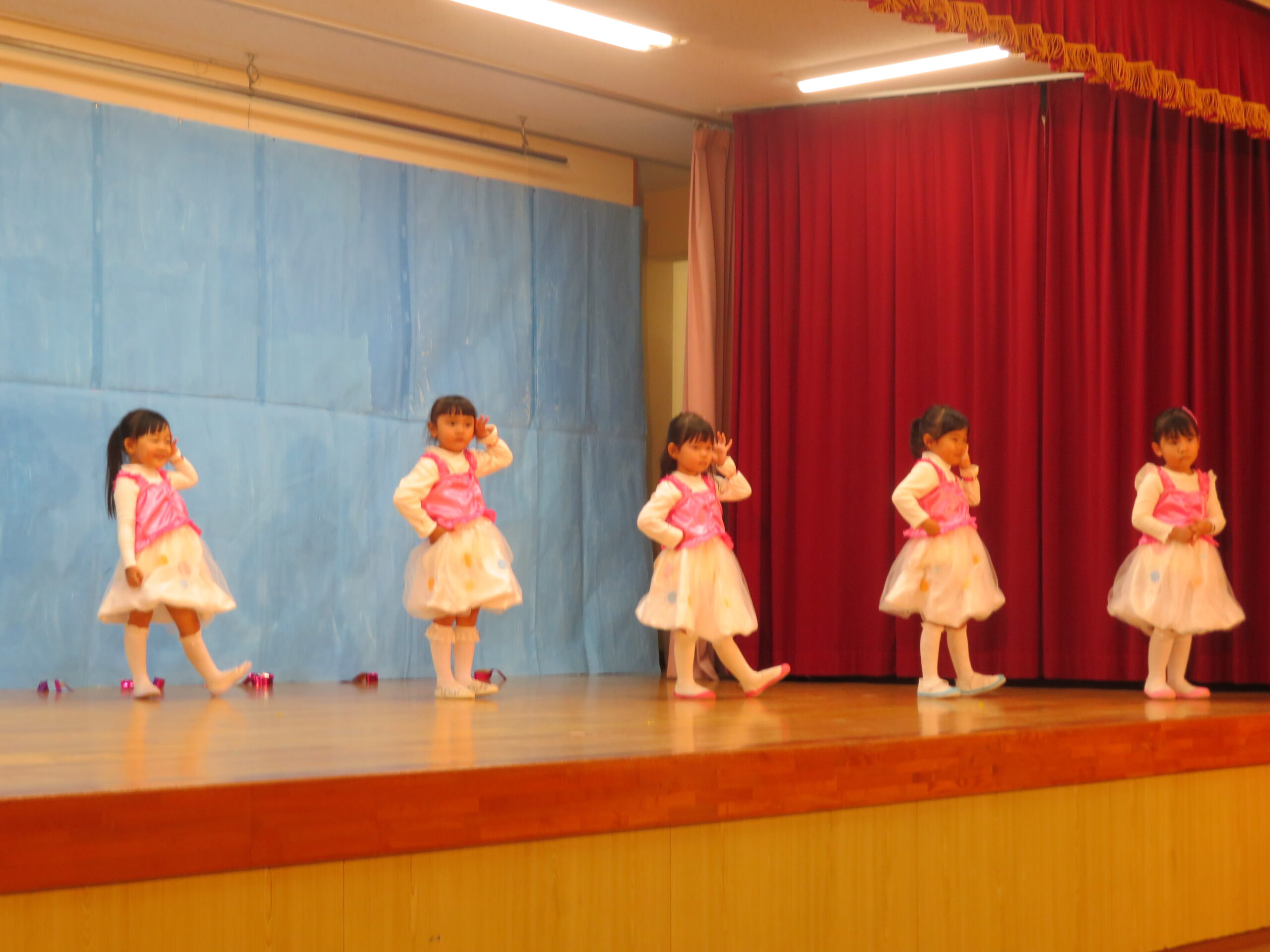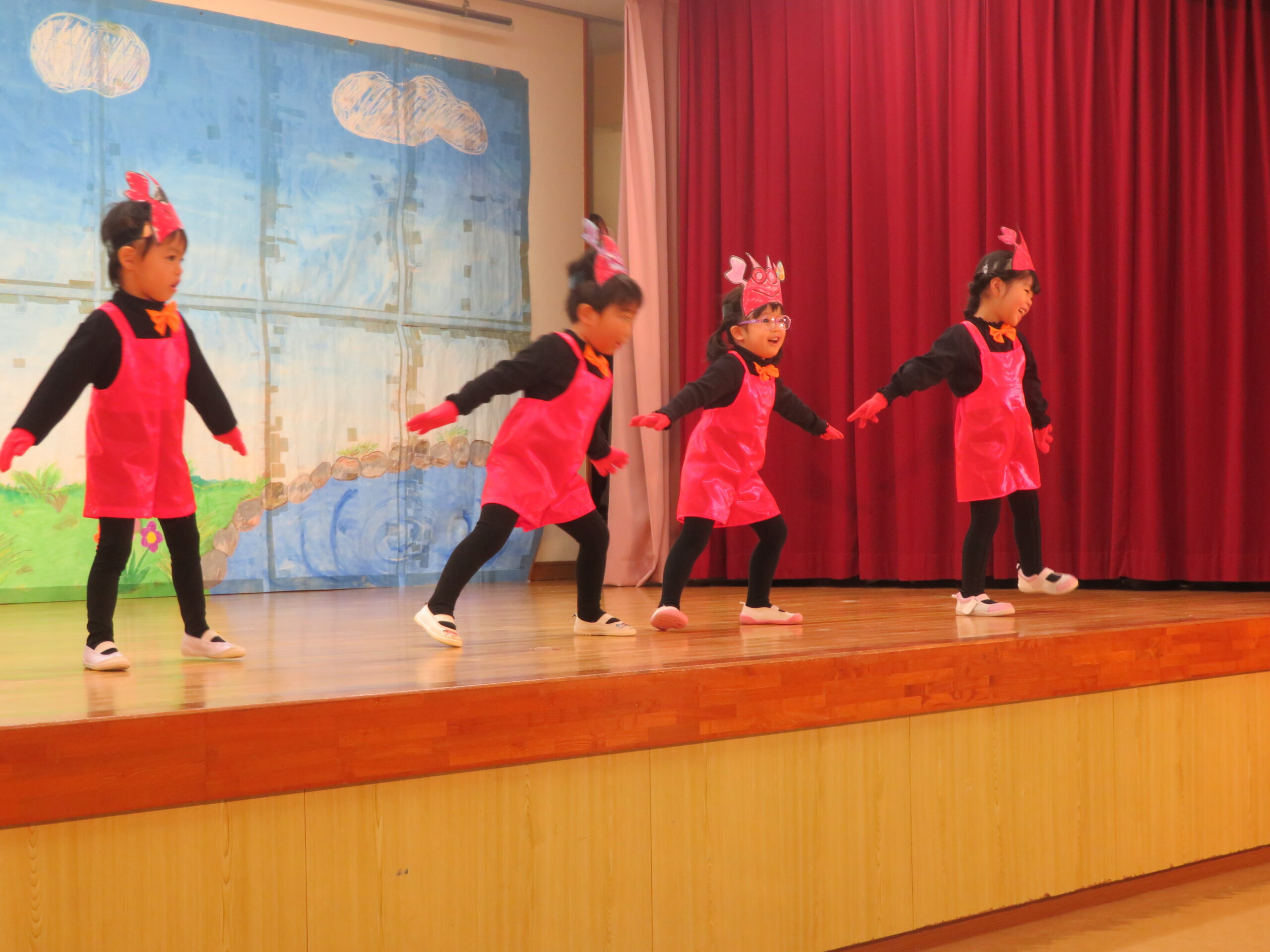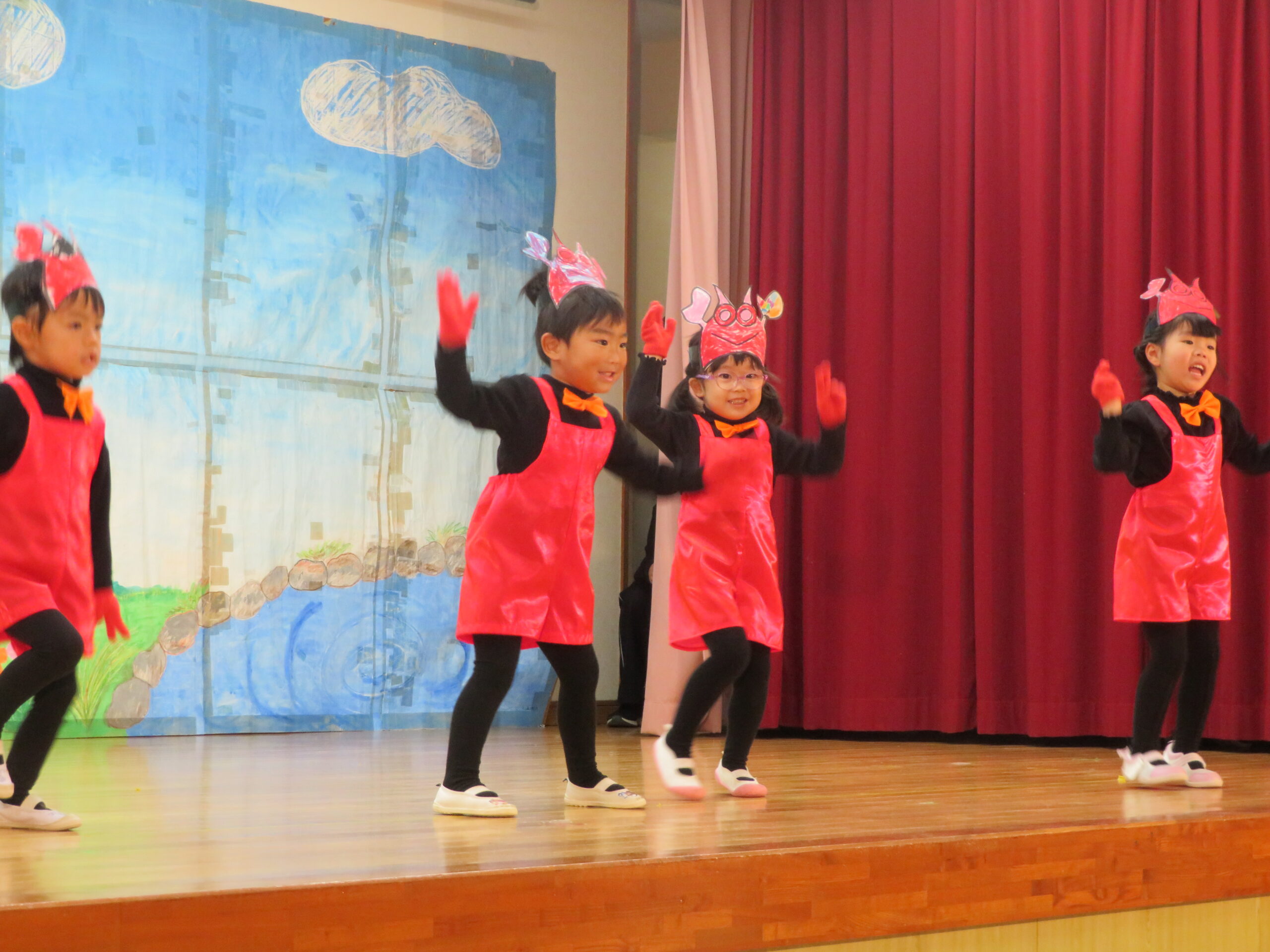 11月30日(日)、年少・すみれ組の発表会がありました。遊戯「アンダー・ザ・シー」、リズム劇「10ぴきのかえる」合唱「どんな色が好き」などを発表しました。観客の皆様からたくさんの温かい拍手をいただきました。