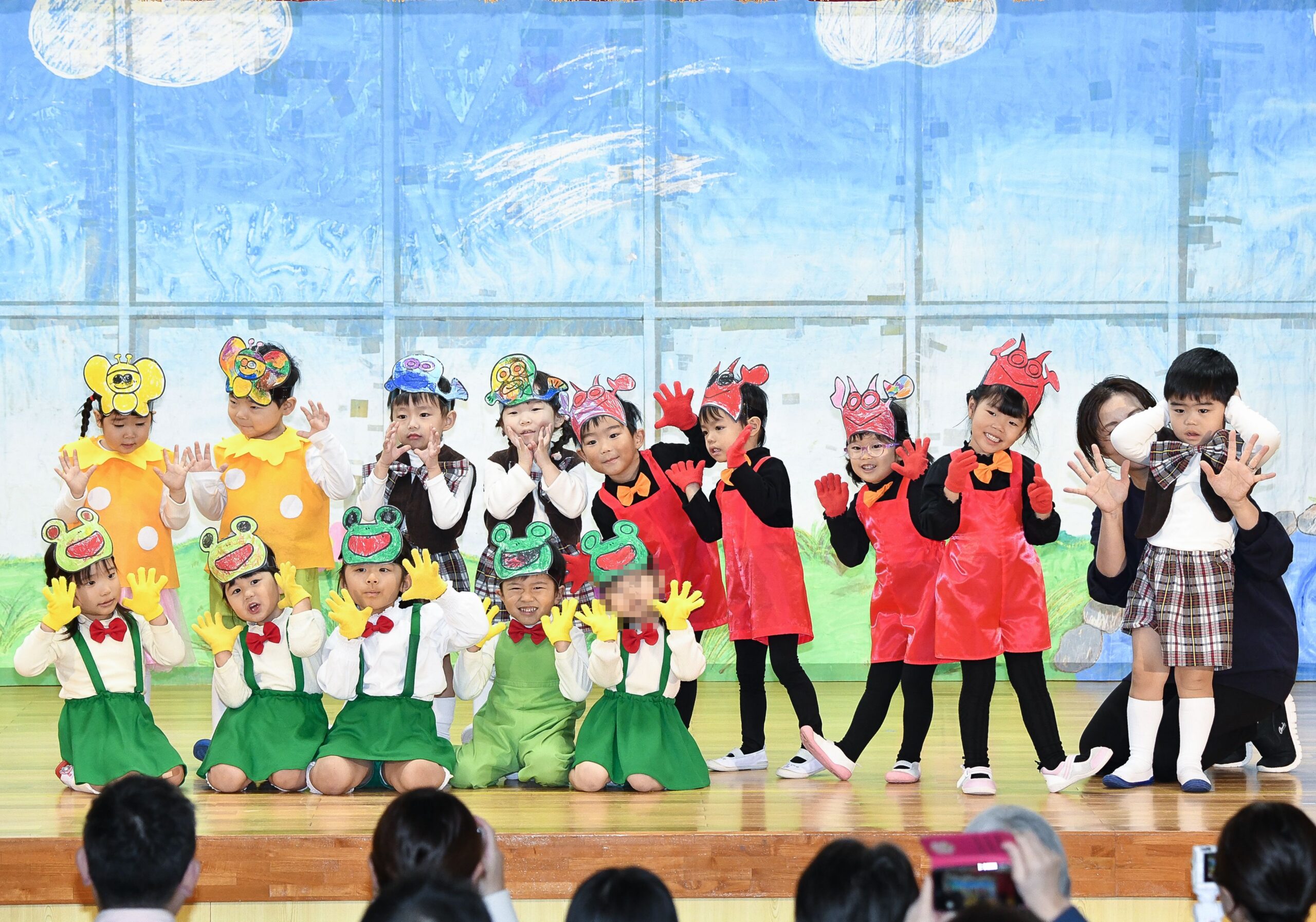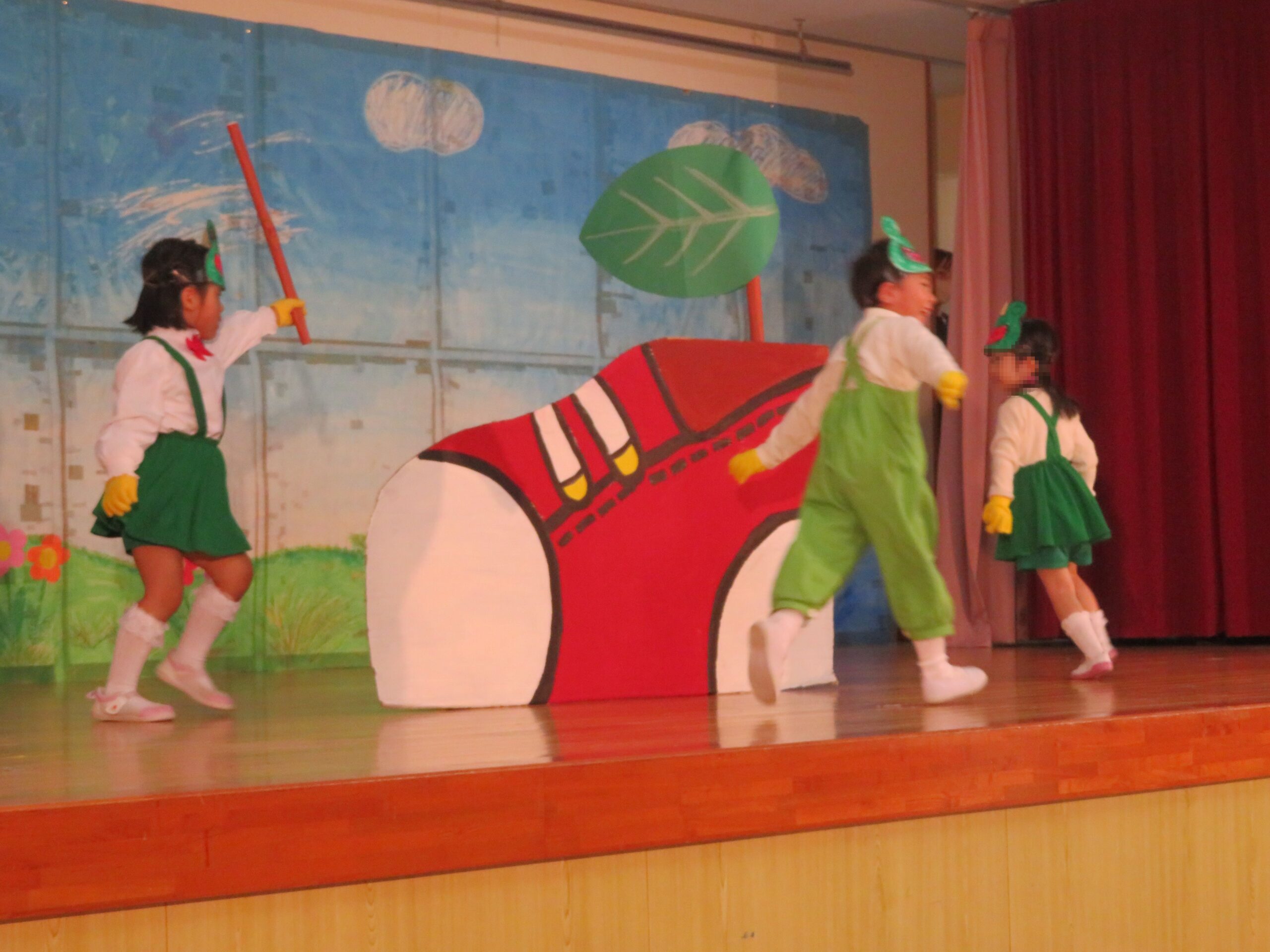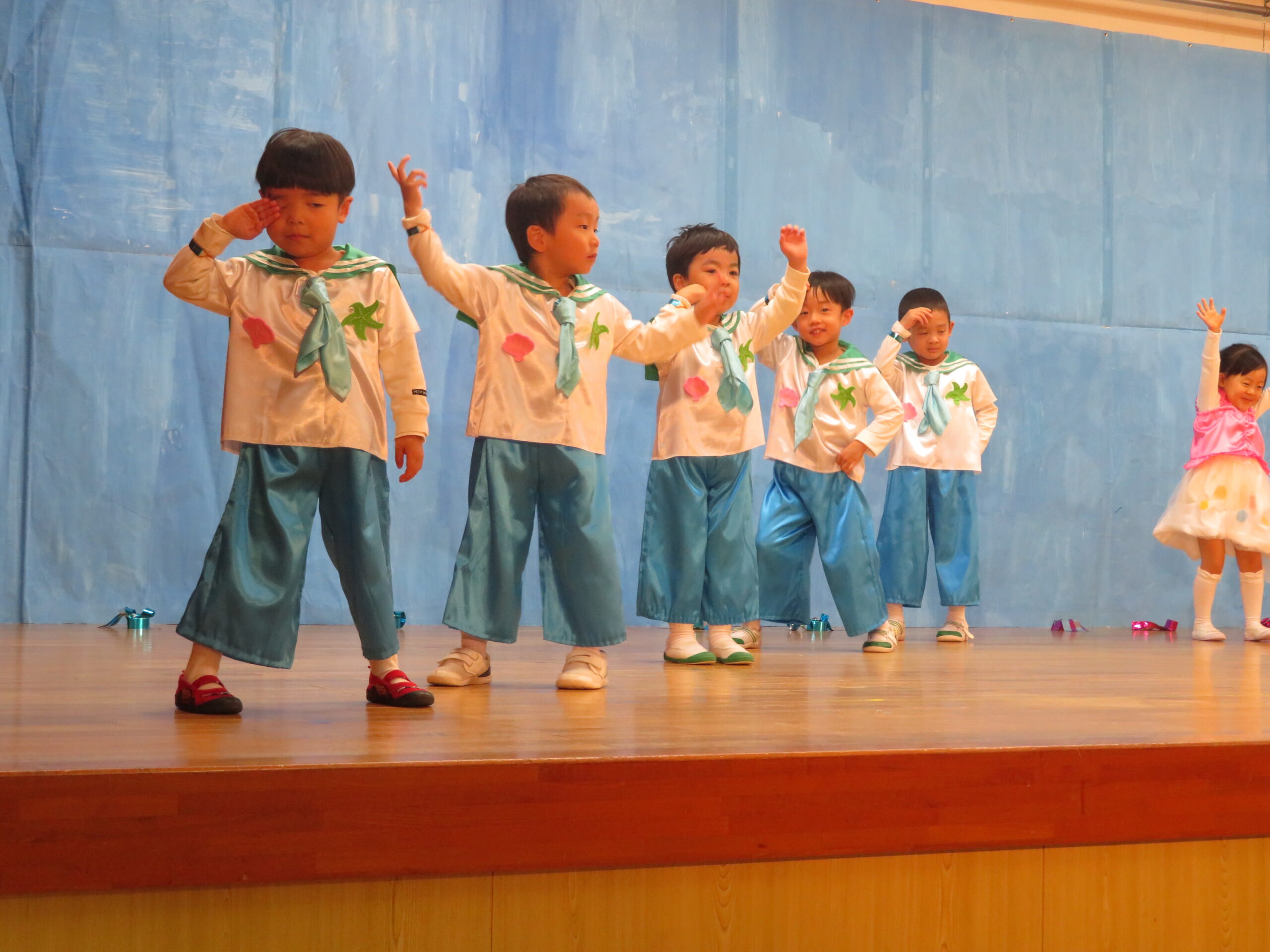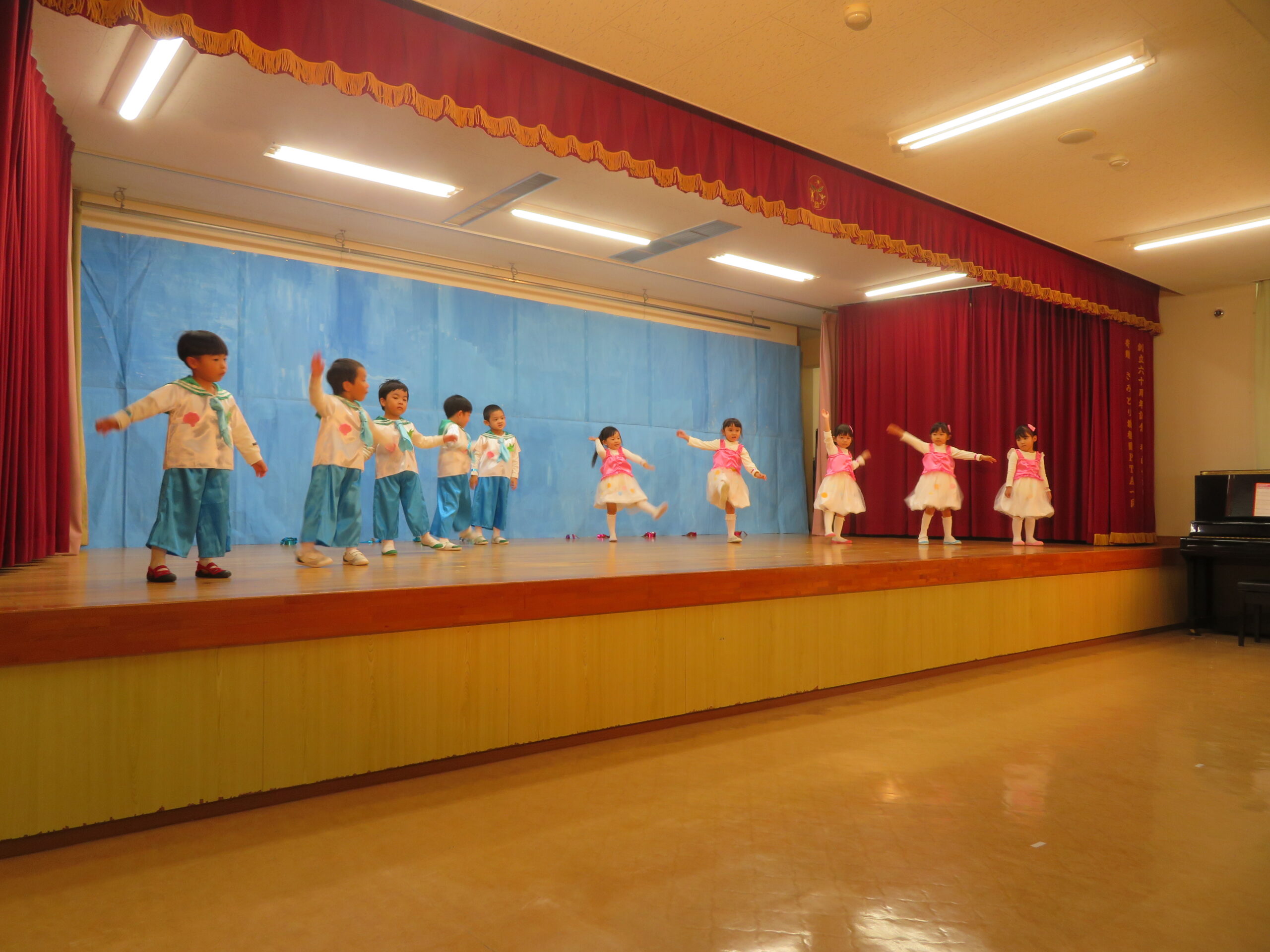 11月30日(日)、年少・すみれ組の発表会がありました。遊戯「アンダー・ザ・シー」、リズム劇「10ぴきのかえる」合唱「どんな色が好き」などを発表しました。観客の皆様からたくさんの温かい拍手をいただきました。