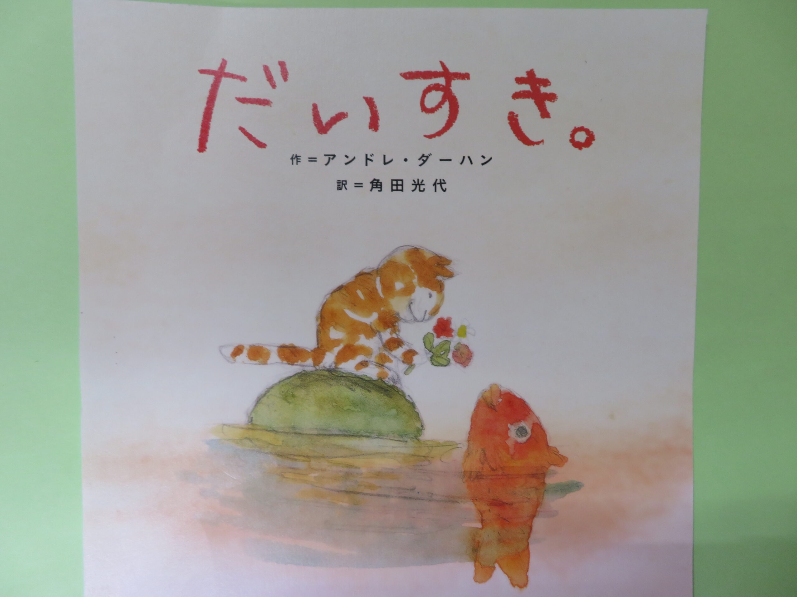 幼稚園の近くにお住まいの村田様から素敵な絵本を頂きました。猫についての絵本や「だいすき」の絵本など。絵本のお部屋に飾り、子どもたちに紹介したいと思います。ありがとうございました。