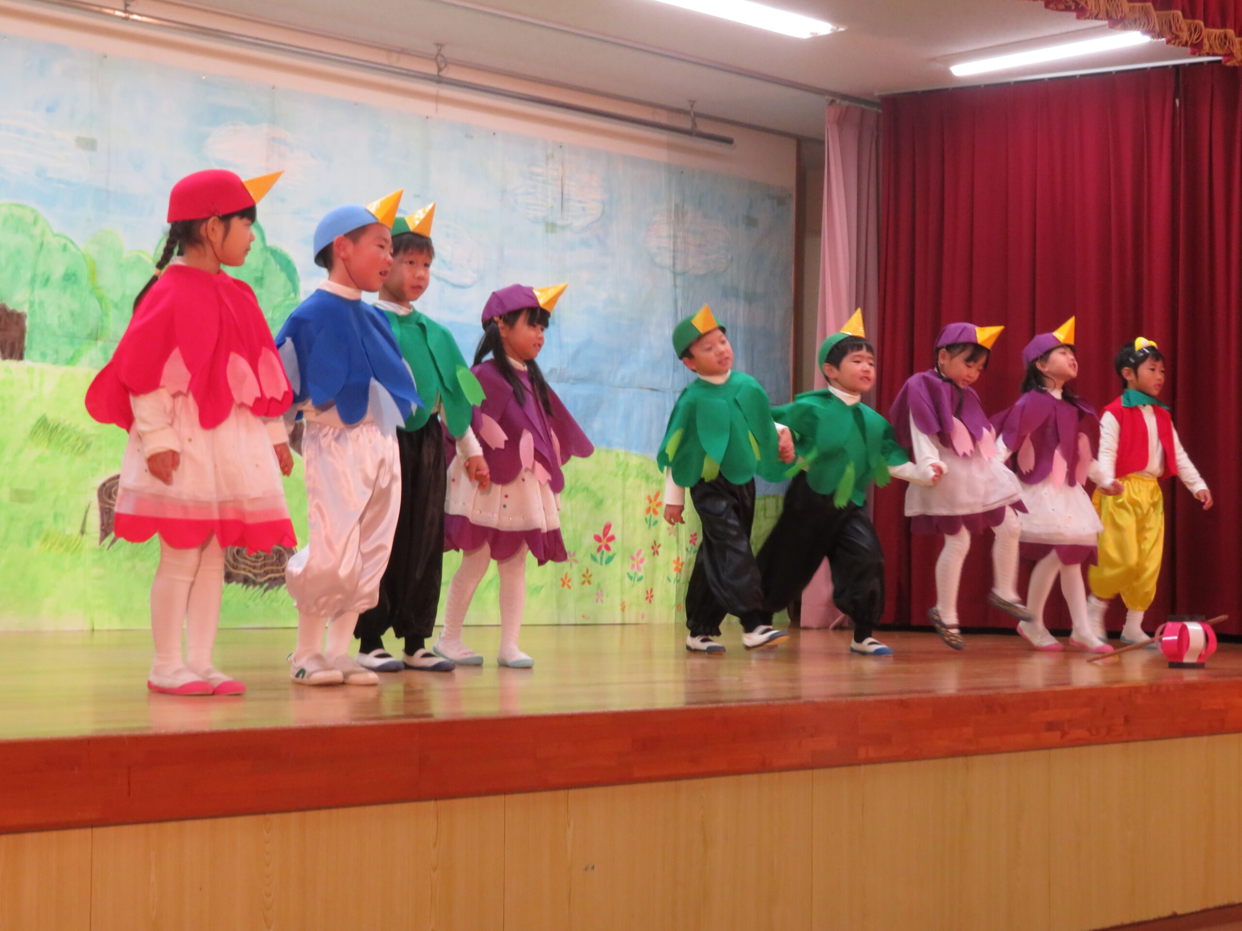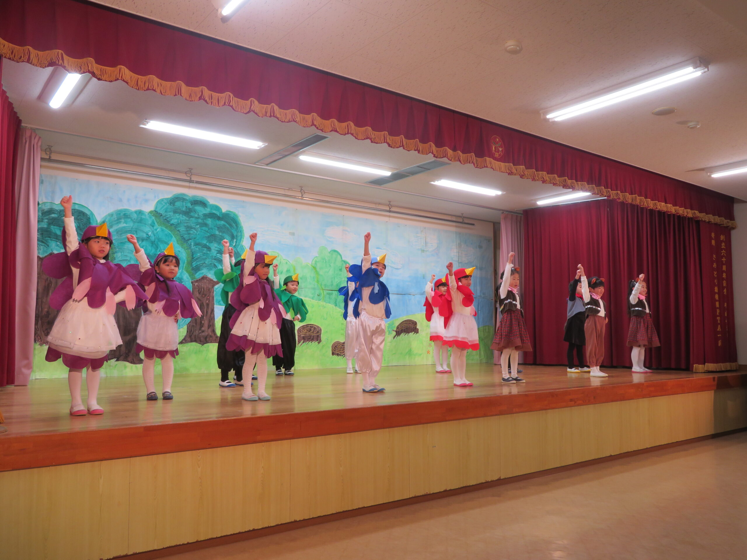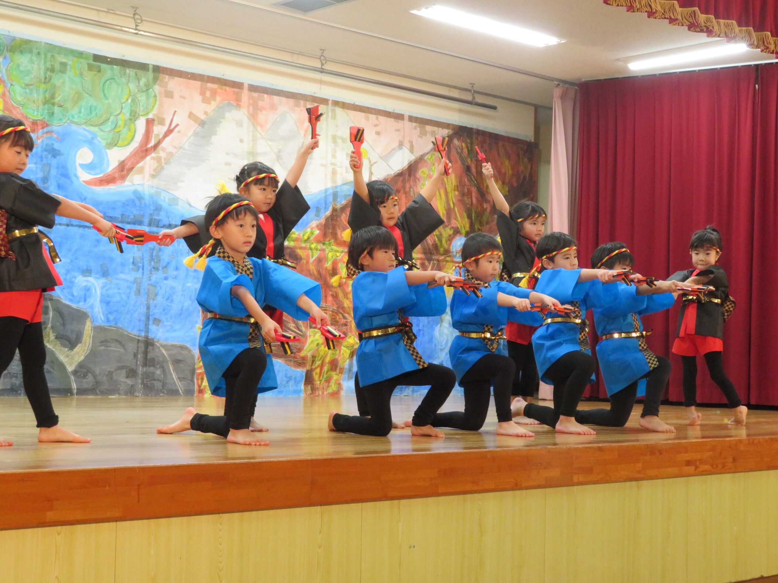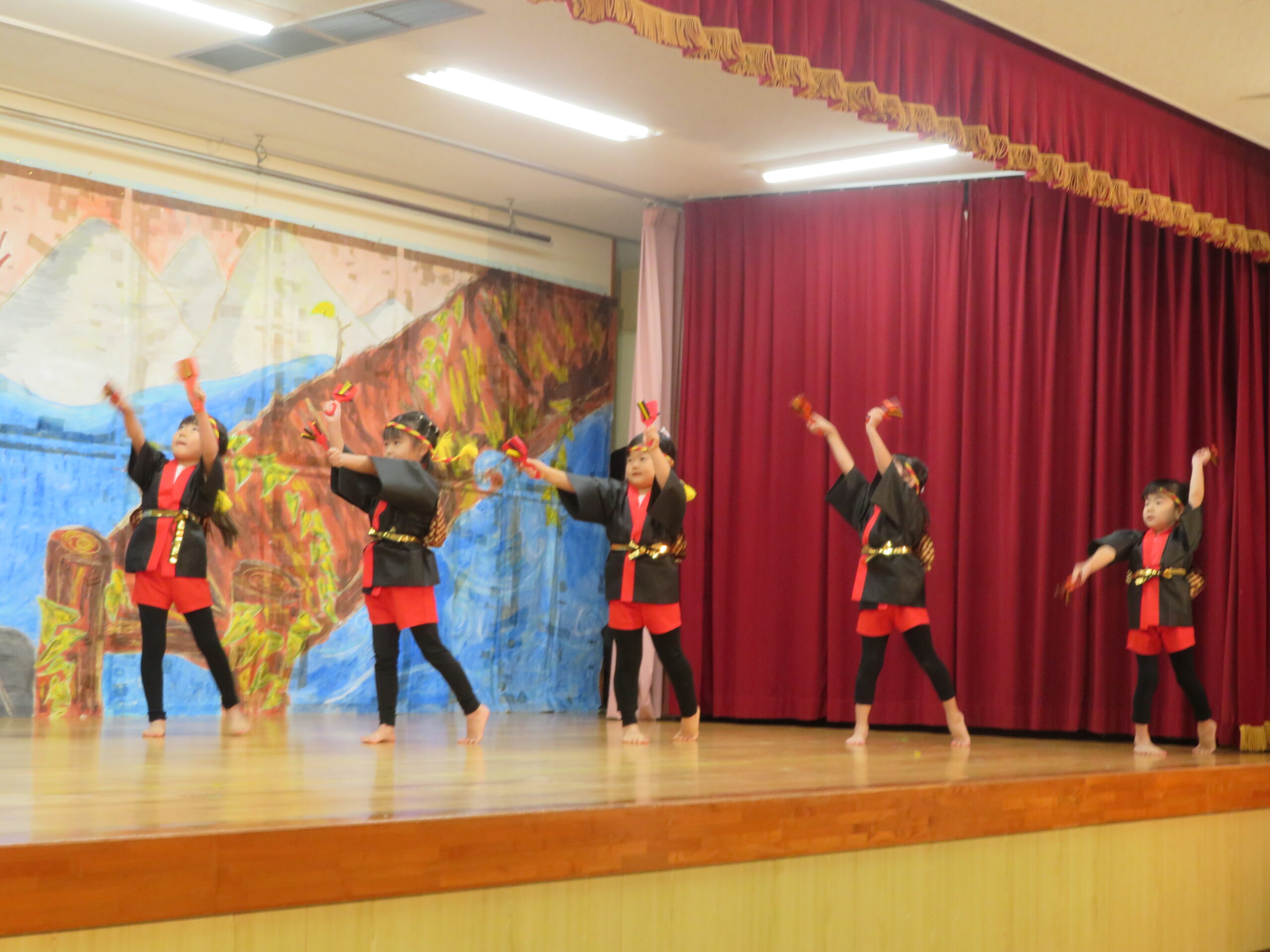 12月7日(日)、年長・たけ組の発表会がありました。遊戯[獅子の舞」劇「ともだちや」と合唱「ぼくらのスマイル」などを発表しました。観客の皆様からたくさんの温かい拍手をいただきました。