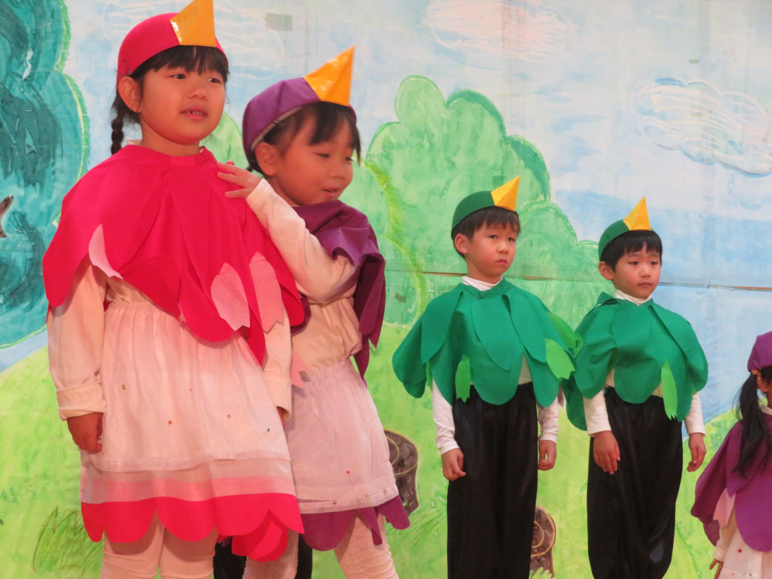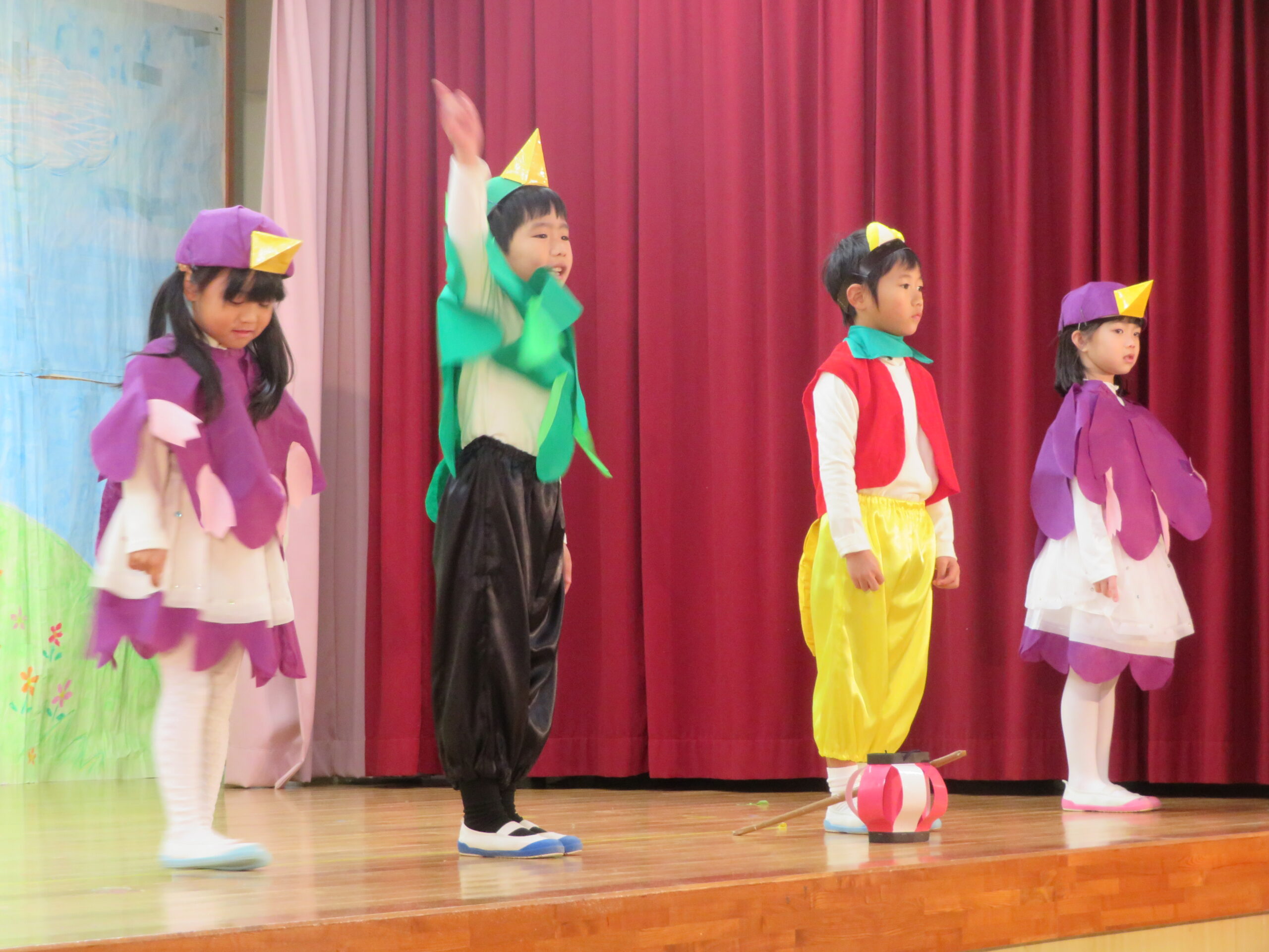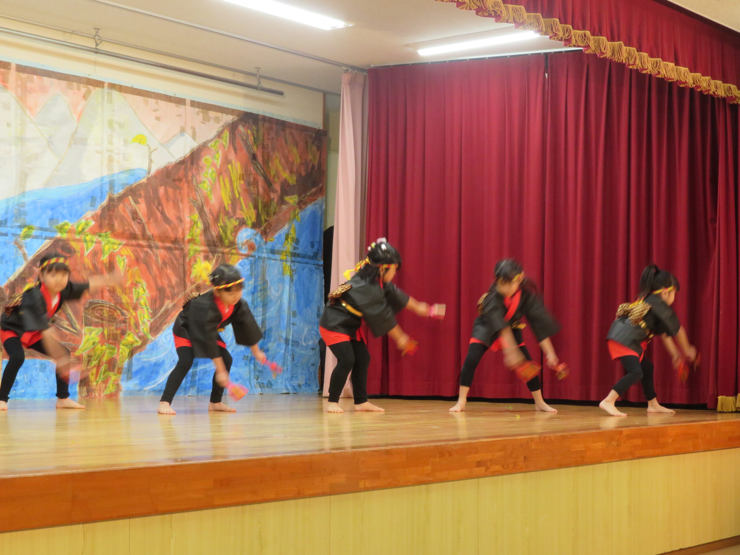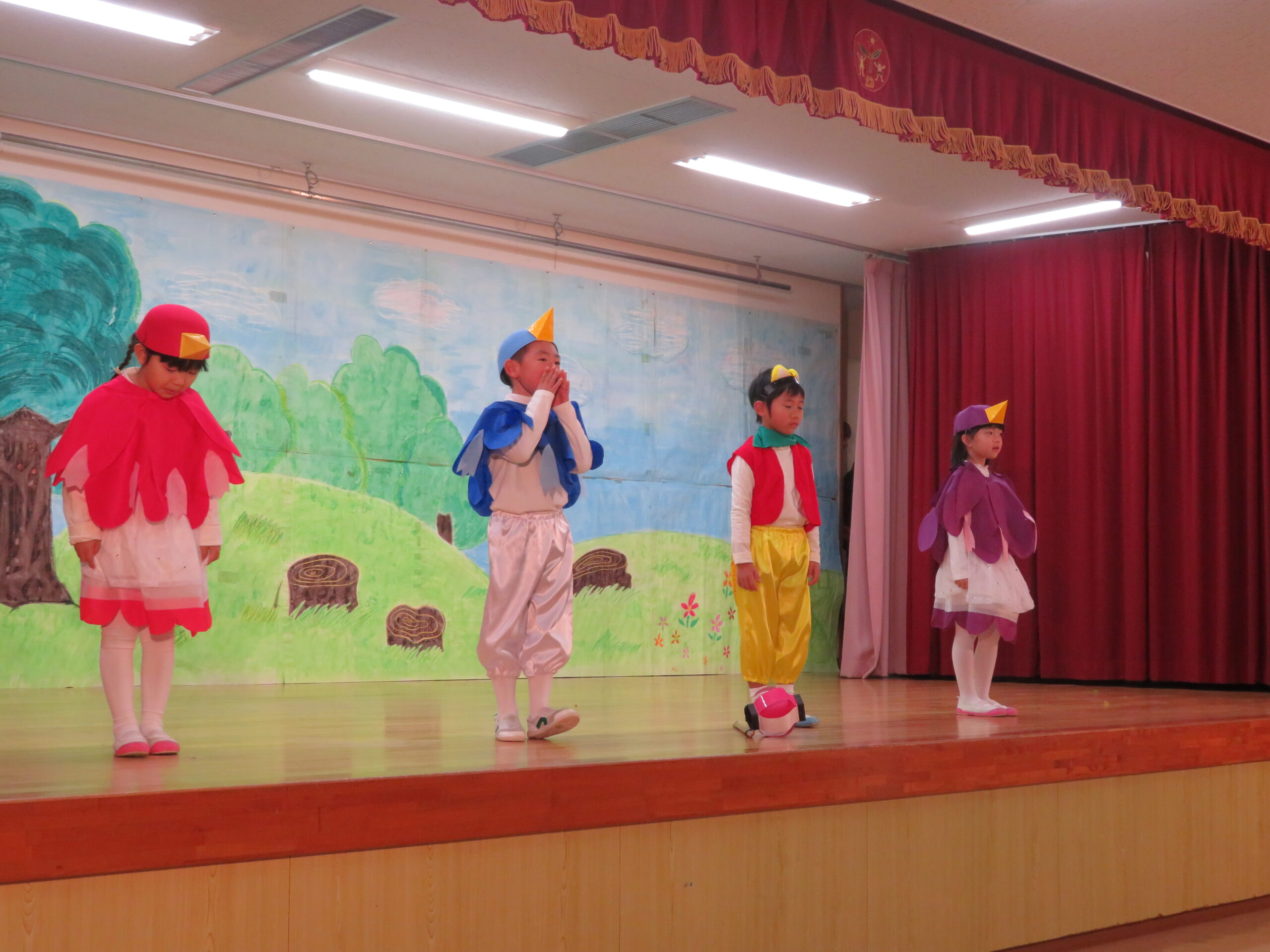 12月7日(日)、年長・たけ組の発表会がありました。遊戯[獅子の舞」劇「ともだちや」と合唱「ぼくらのスマイル」などを発表しました。観客の皆様からたくさんの温かい拍手をいただきました。