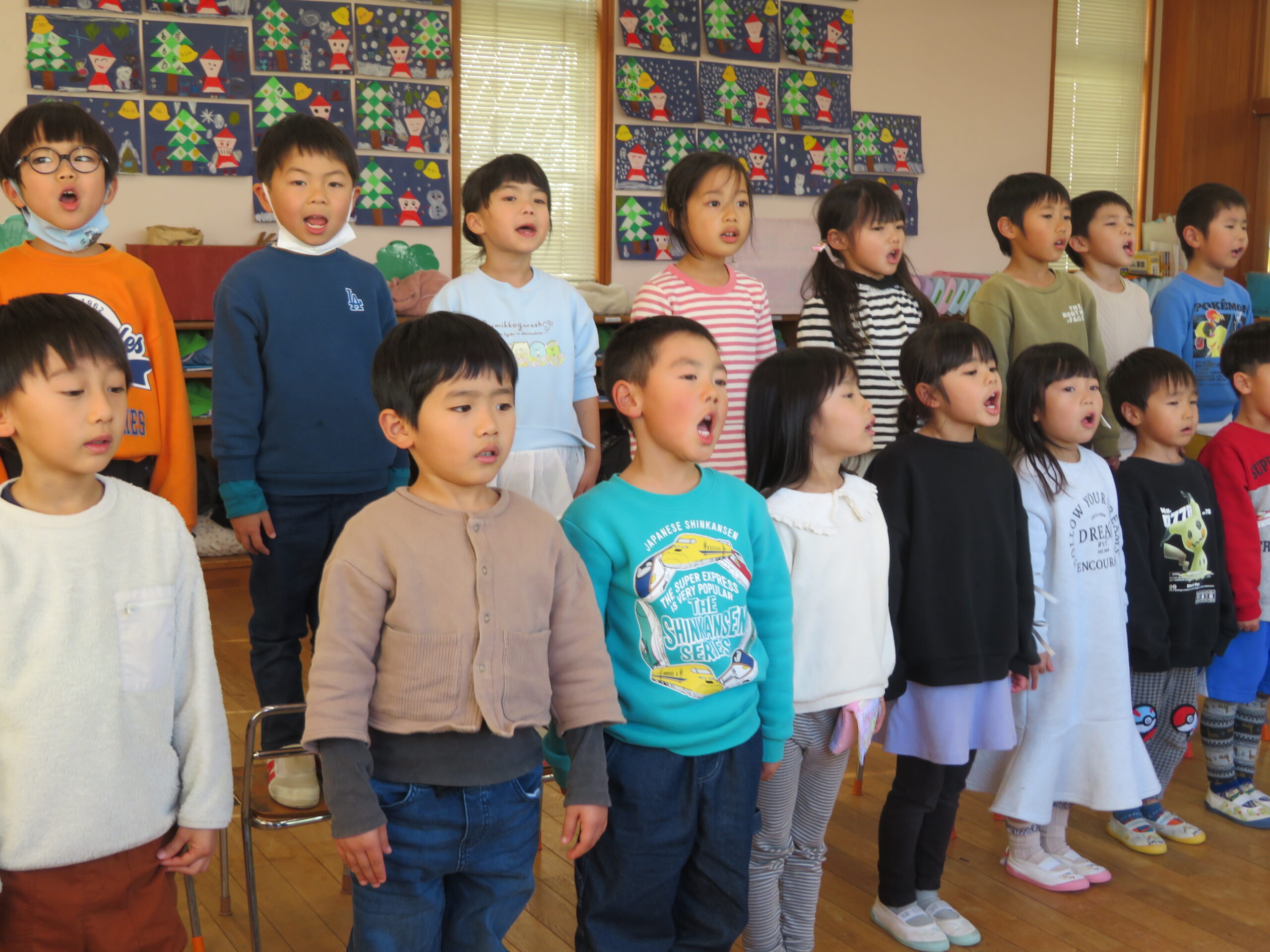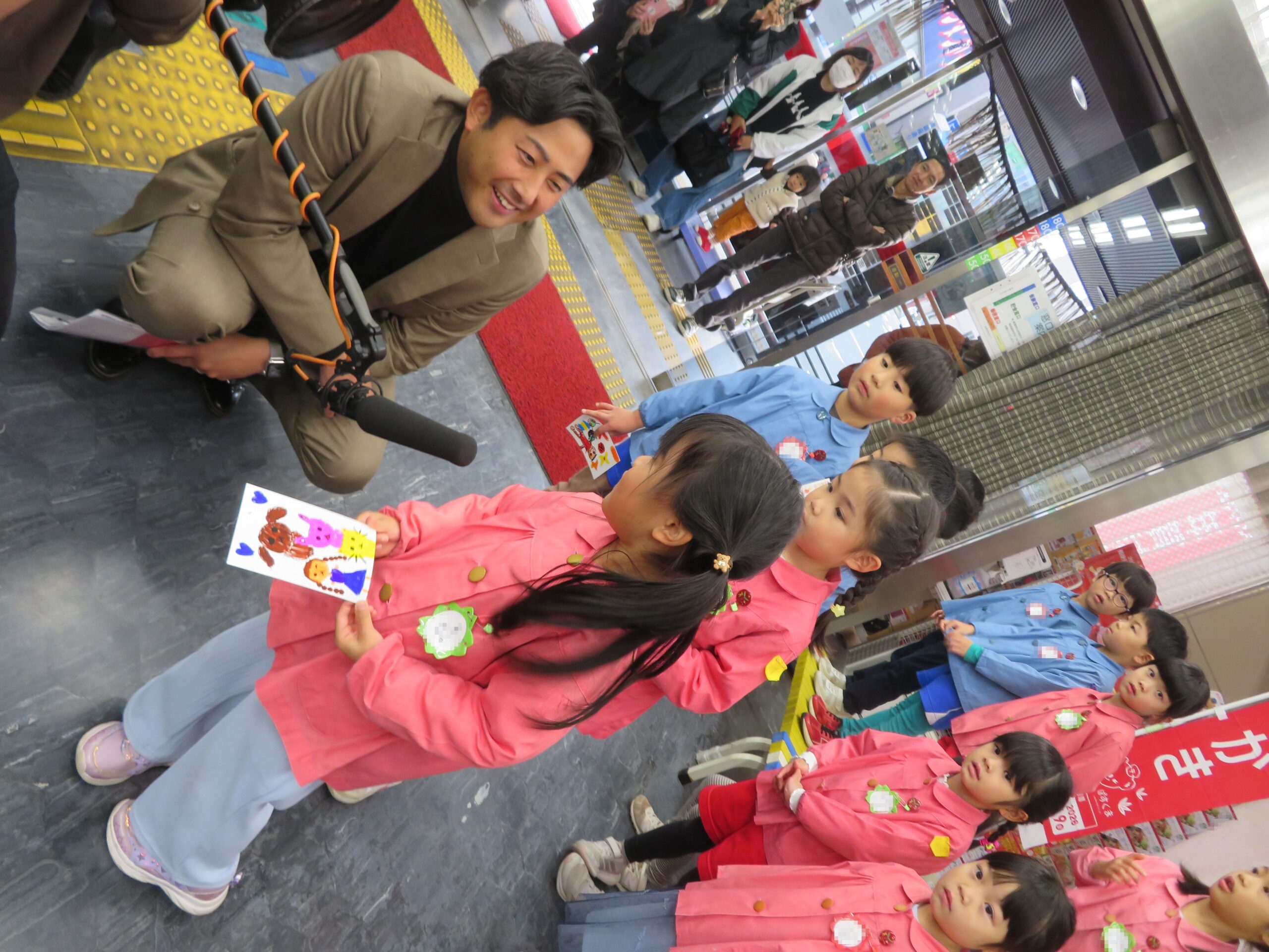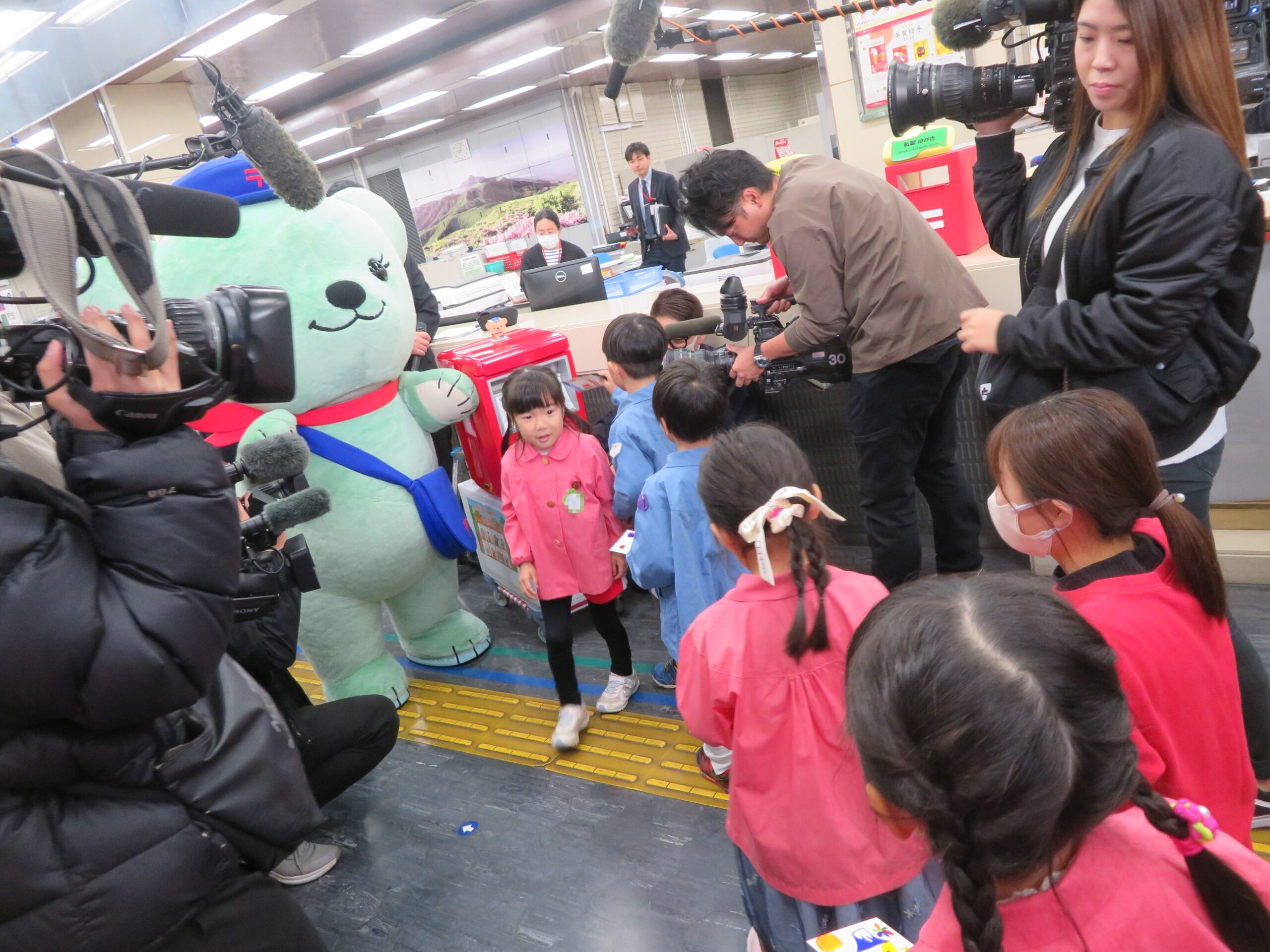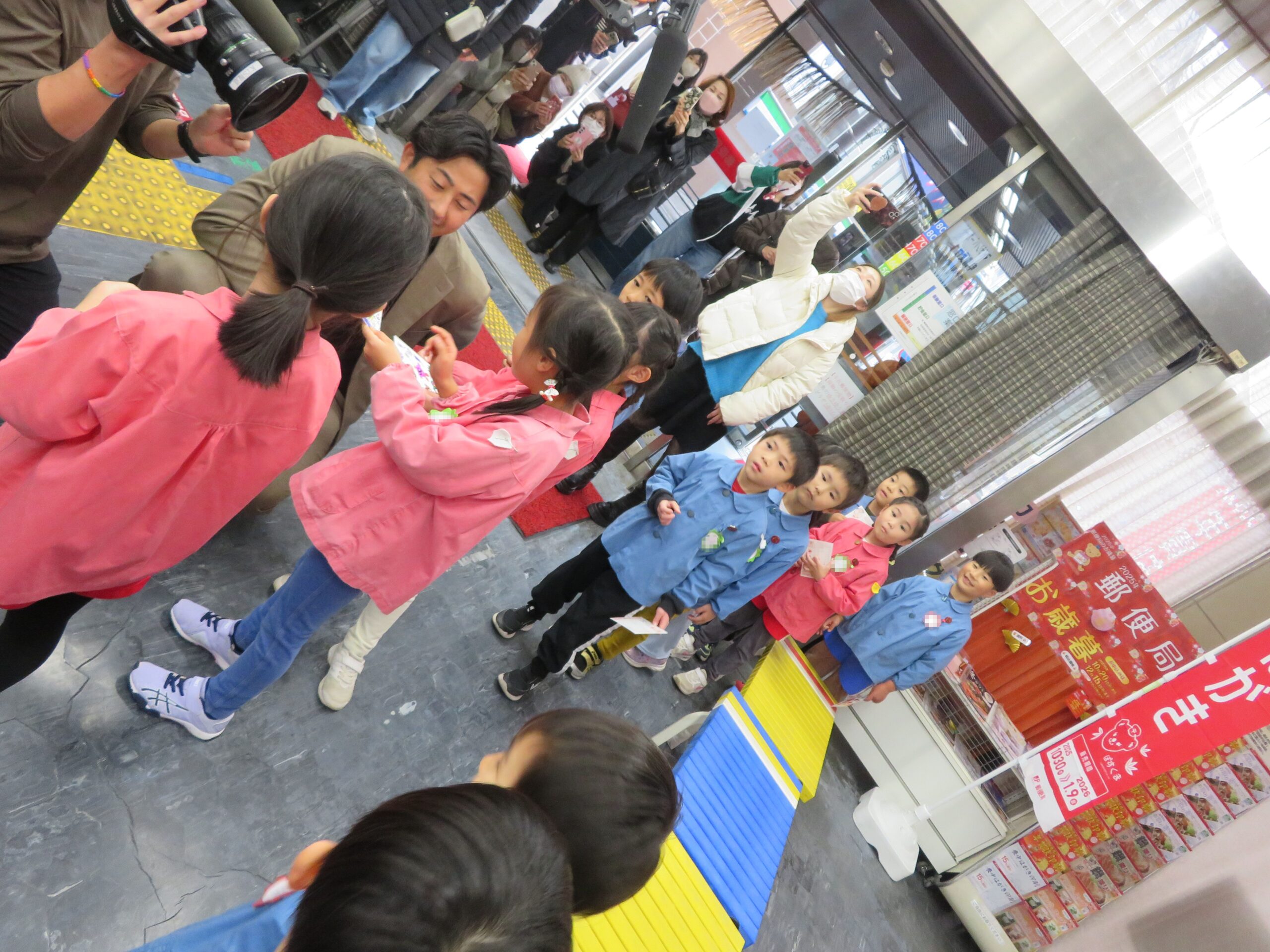12月15日(月)、中央郵便局の「2026年用年賀葉書引き受けイベント」に園児が参加しました。子どもたちは、「やぎさんゆうびん」「おしょうがつ」の歌を発表しました。その後、園児は自分で作成した年賀状をポストに投函しました。