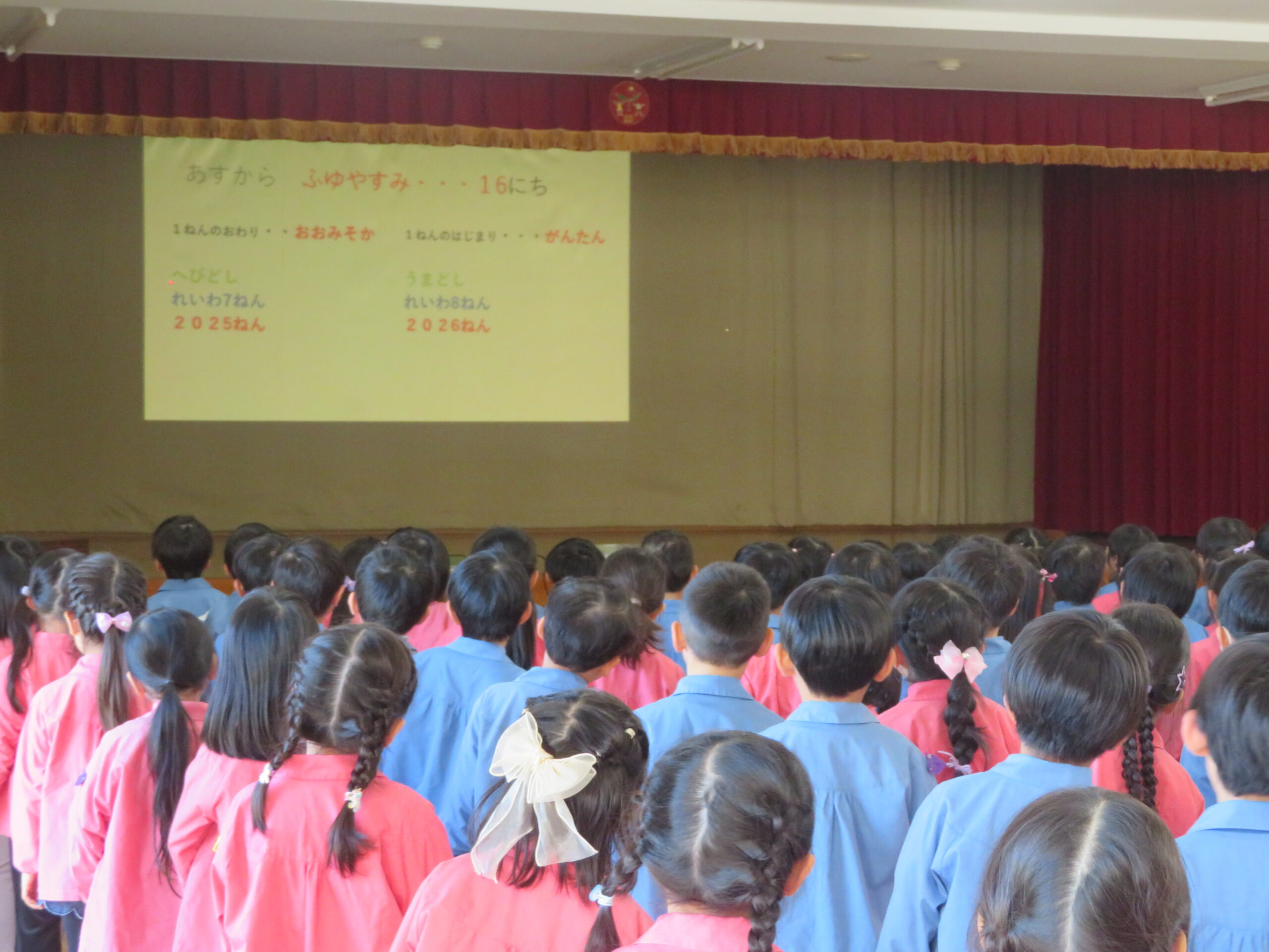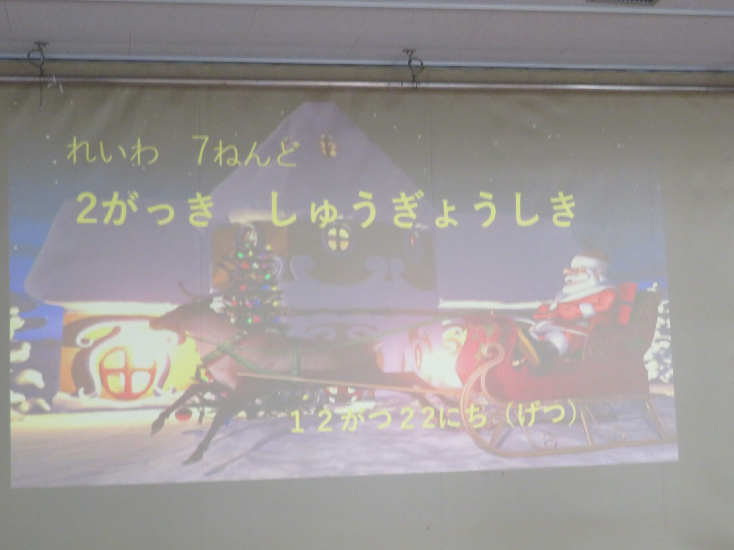 12月22日(月)に2学期の終業式がありました。学期末はインフルエンザが流行し、学級閉鎖を考えなければならない厳しい時期もありましたが、子どもたちの頑張りでなんとか乗り切ることができました。明日からは楽しい冬休みです。安全に気をつけて楽しい冬休みにしましょう。