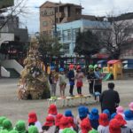 今年も幼稚園の園庭で「鬼火焚きの集会」を行いました。