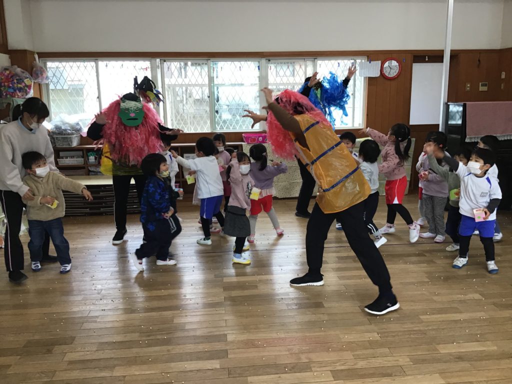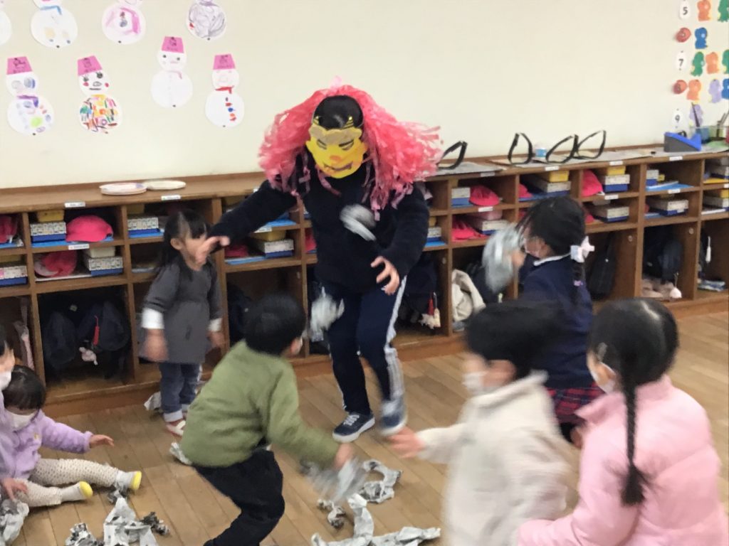 各教室から「鬼は外、福は内」という子供たちの元気な声が園内に響いていました。