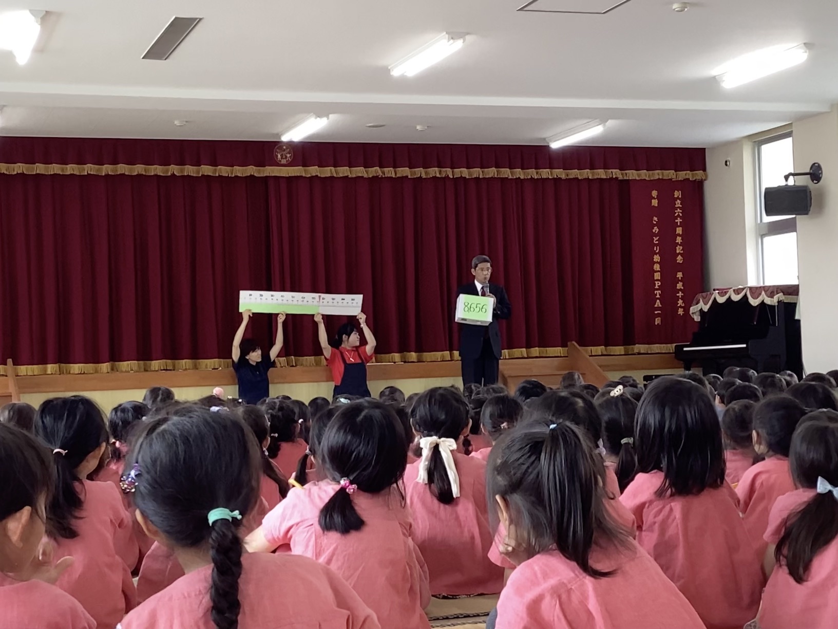 3年ぶりに、全園児が集合して、第77回の創立記念の集会が開かれました。