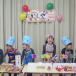 2月16日(金)は「さみどりストアー」開店の「おみせやごっこ」でした。1月から「おみせやさんごっこ」に向けて野菜やくだもの、パンにケーキ、お弁当、たこやさしみ、おしゃれせっとにぶれすれっとなど本物そっくりの商品を年長を中心に全園児で製作してきました。すばらしい商品のできばえでした。