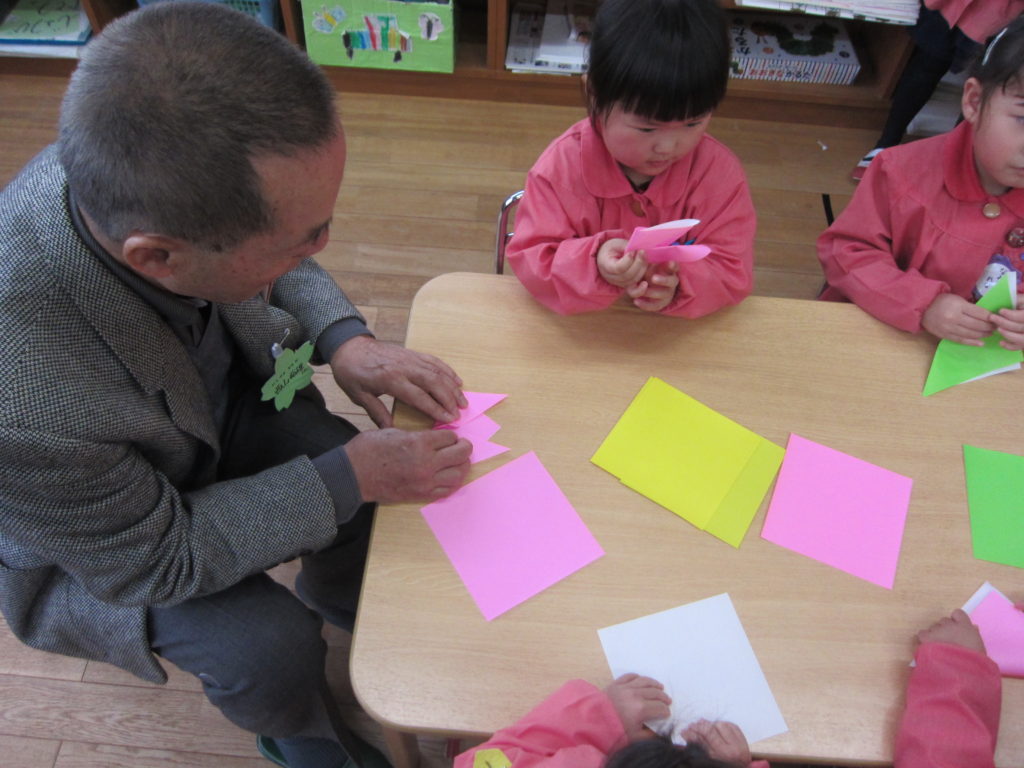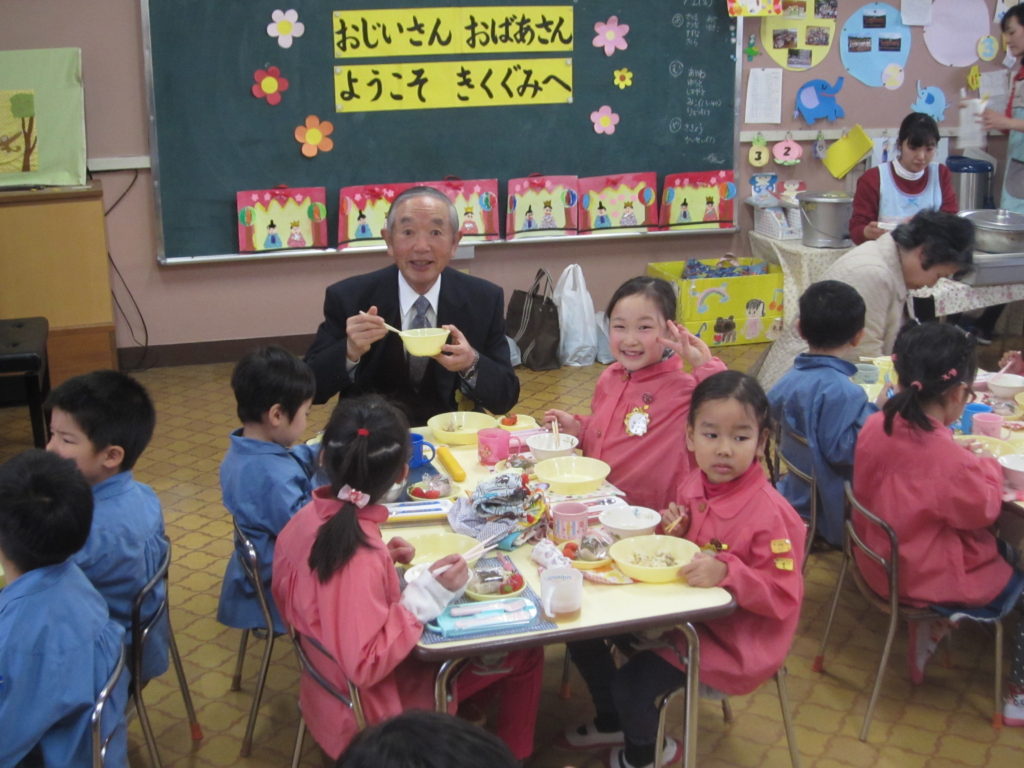 さみどり幼稚園では、毎年ひな祭りの時期に地域の高齢者の方々を幼稚園に招待して、「ひな祭り交流会」を実施しています。