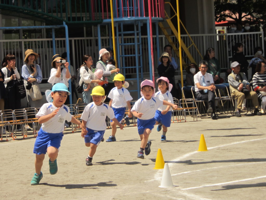 新年度がスタートして1ヶ月しか経っていない中での、今年度最初の発表の場でしたが、290名の園児たちは立派でした。かけっこも最後まで一生懸命走ることができましたし、リズム運動も美しく上手にできました。